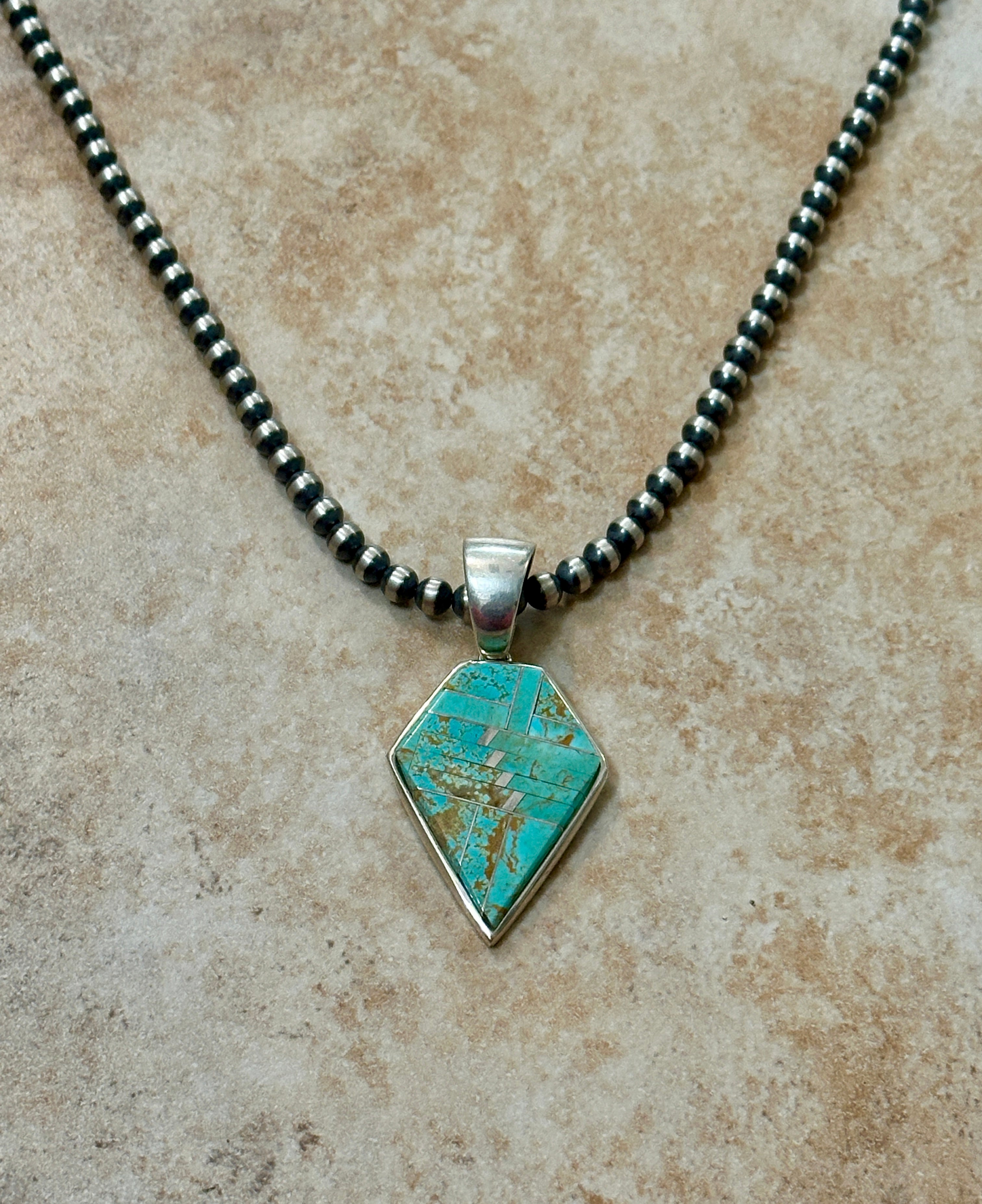 Navajo Sterling Silver Turquoise Pendant Necklace Signed Sheila