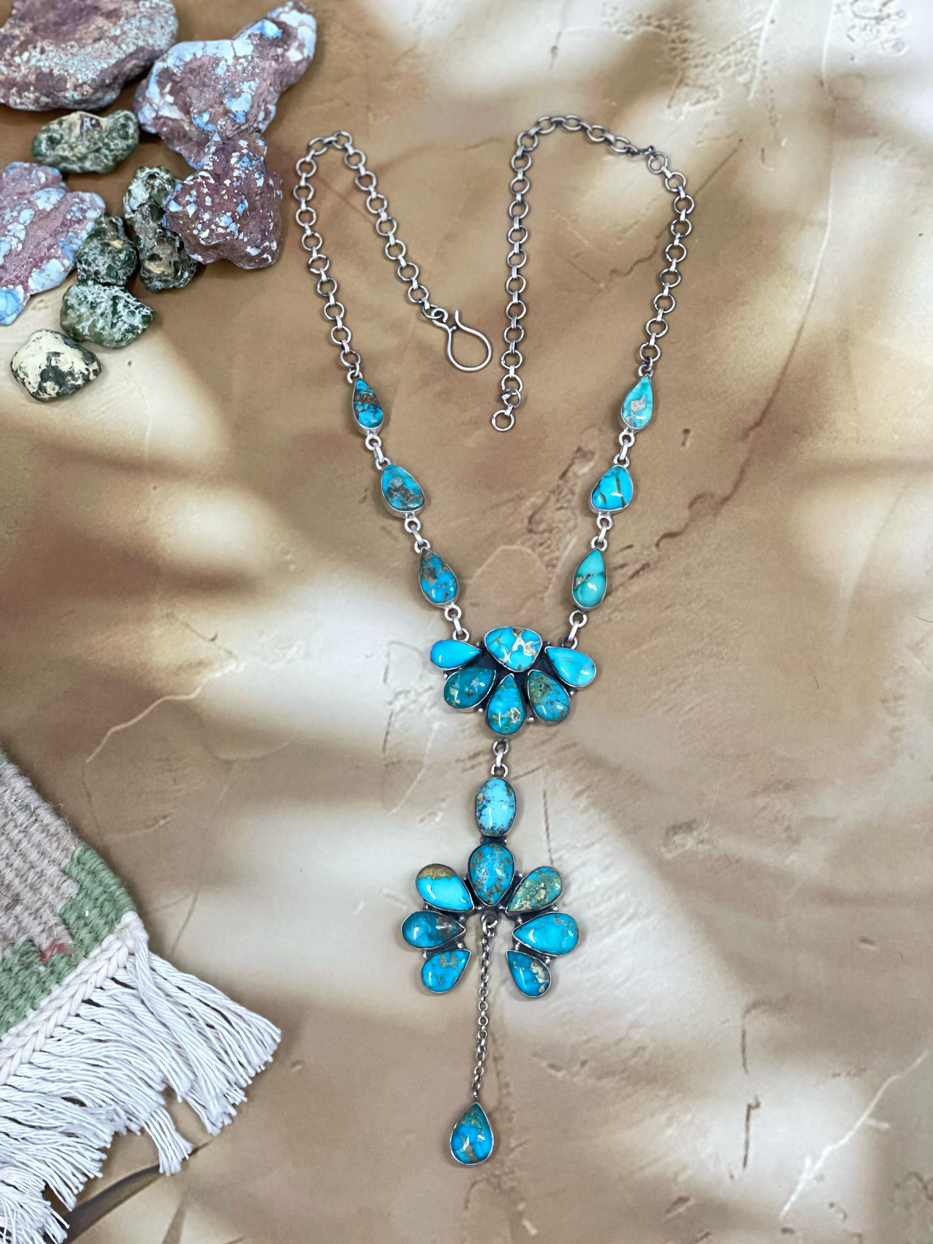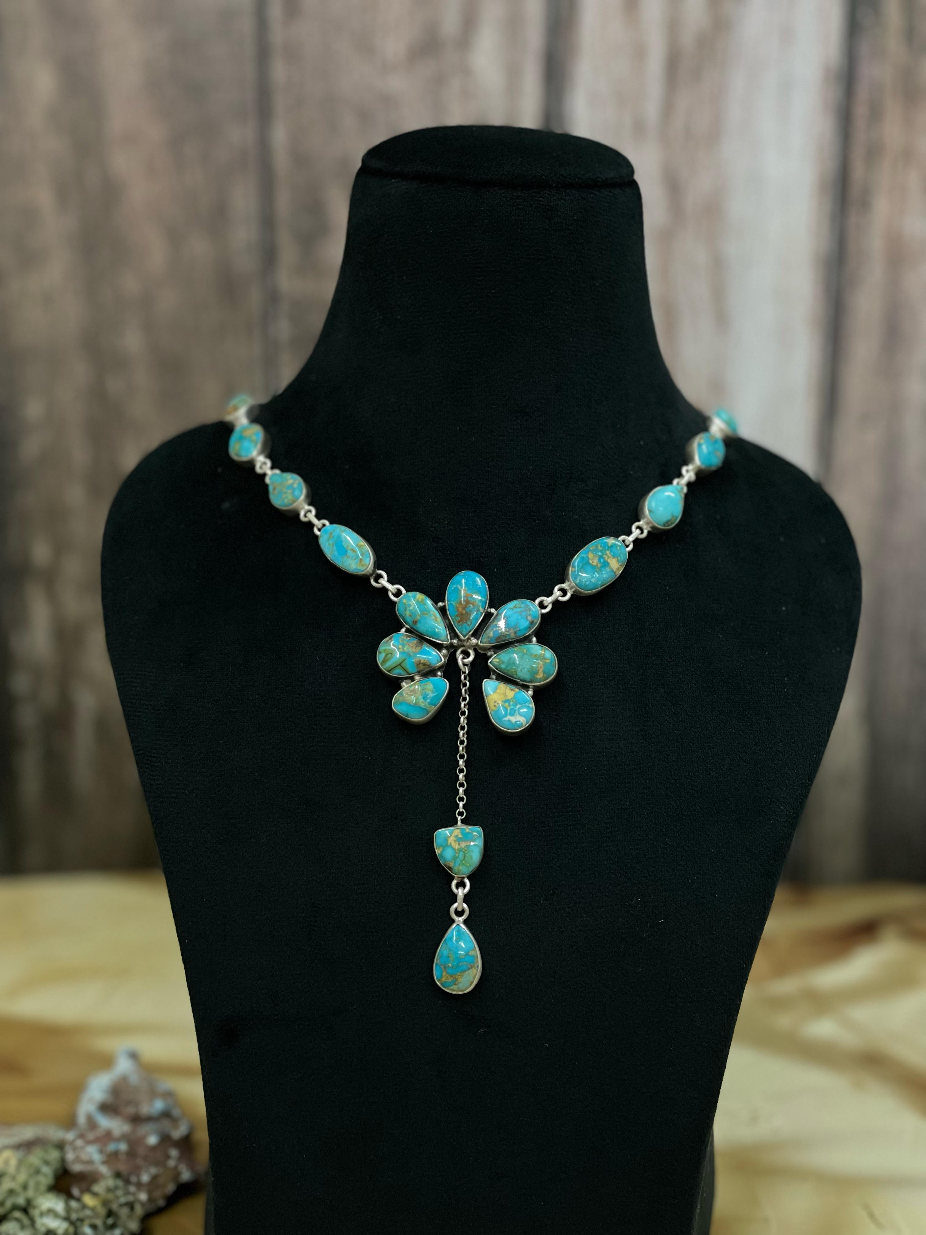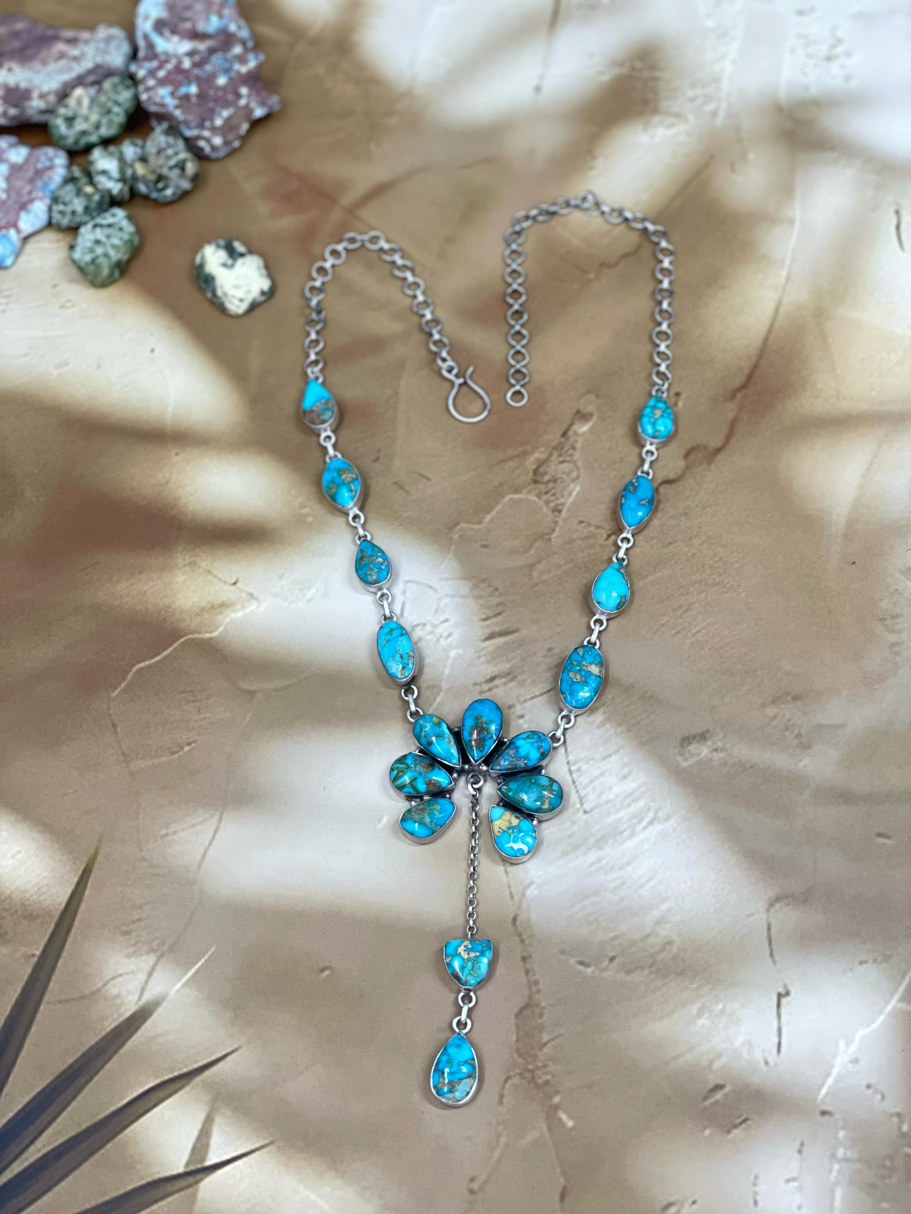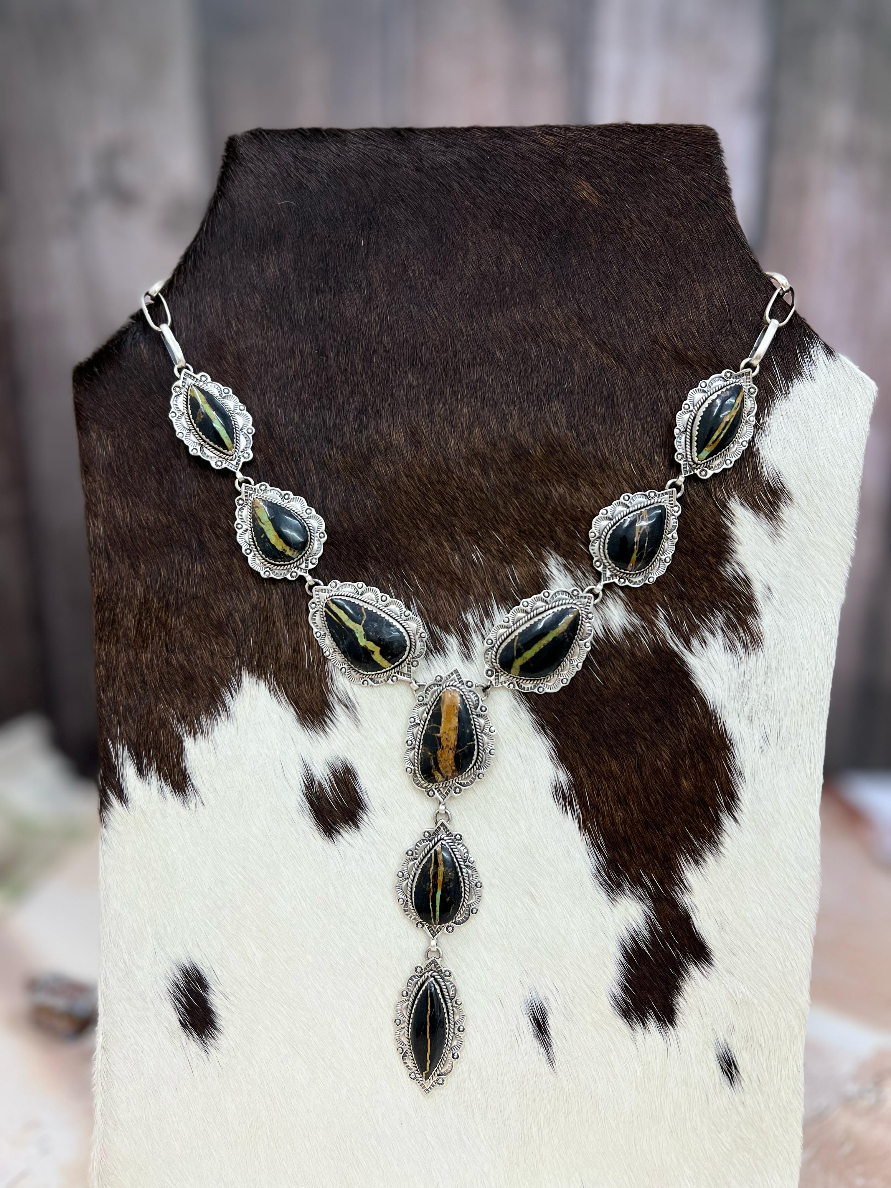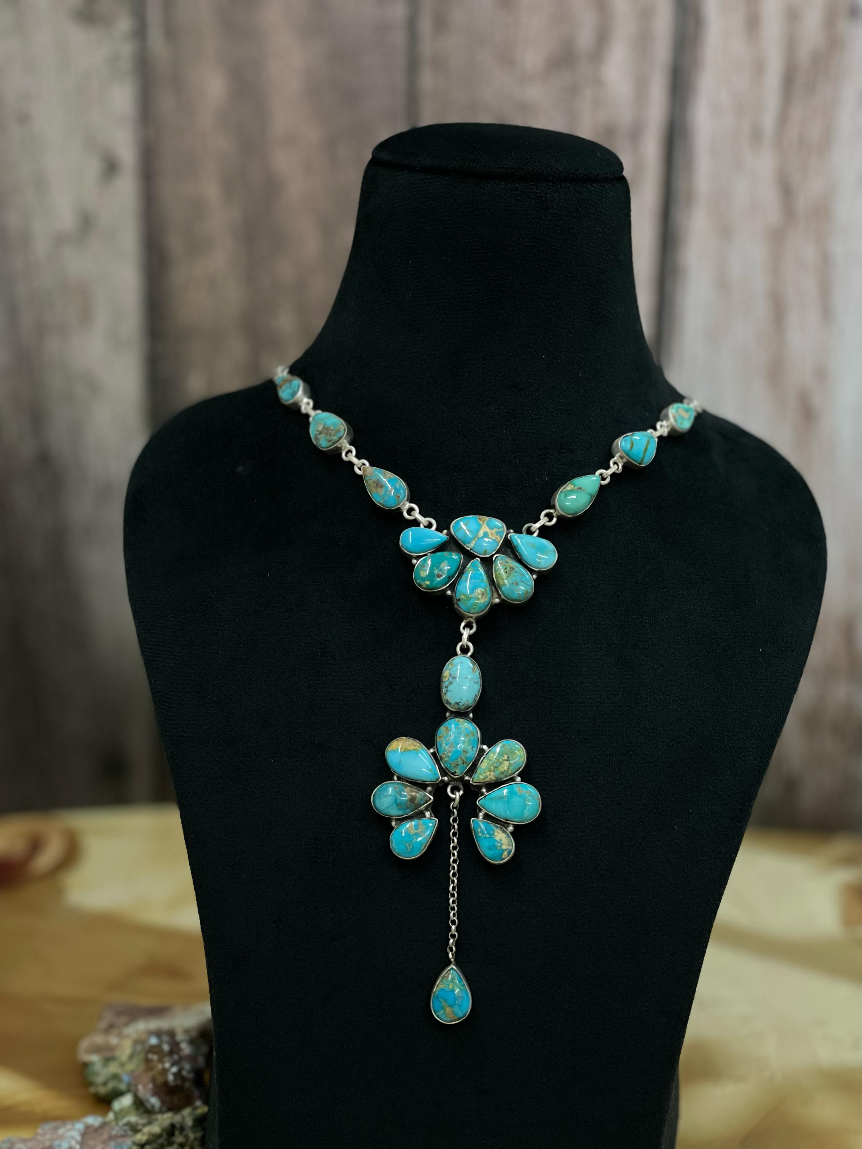 Handmade Sterling Silver Blackjack Turquoise Necklace "Signed Nizhoni"