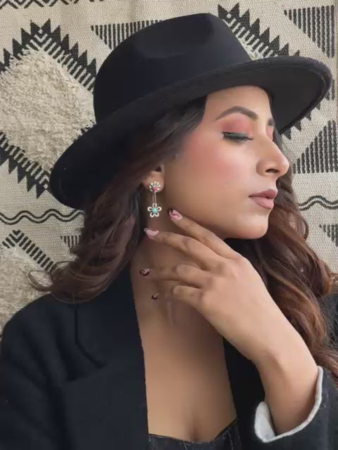 Handmade Sterling Silver Multi Stone Post Dangle Earrings "Signed Nizhoni"