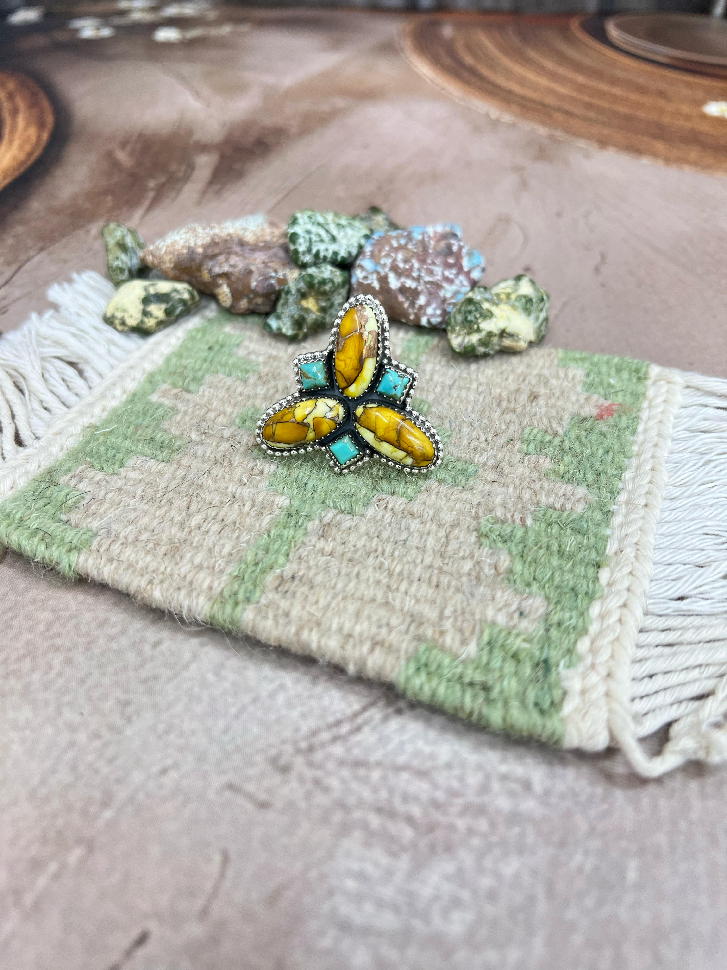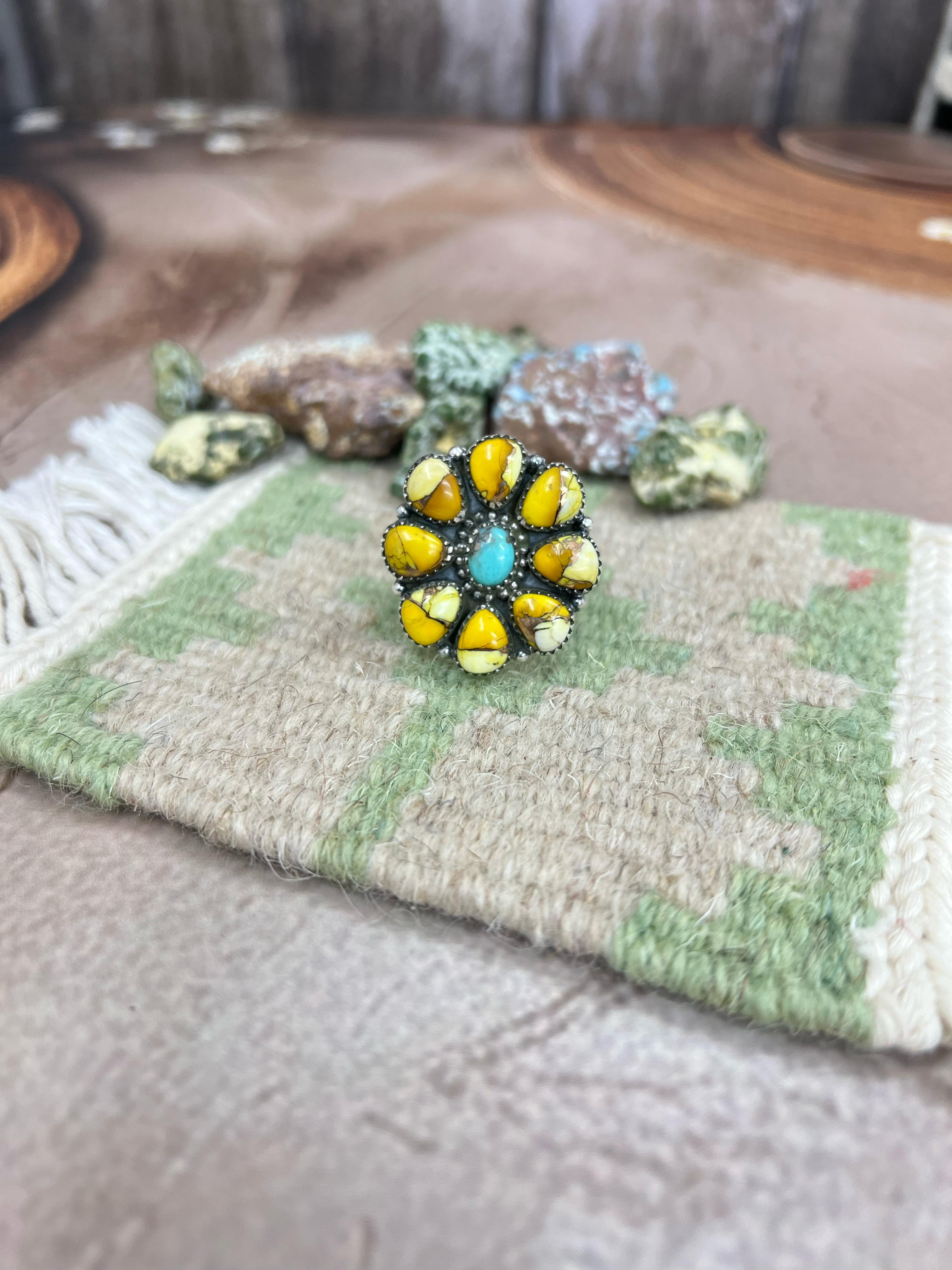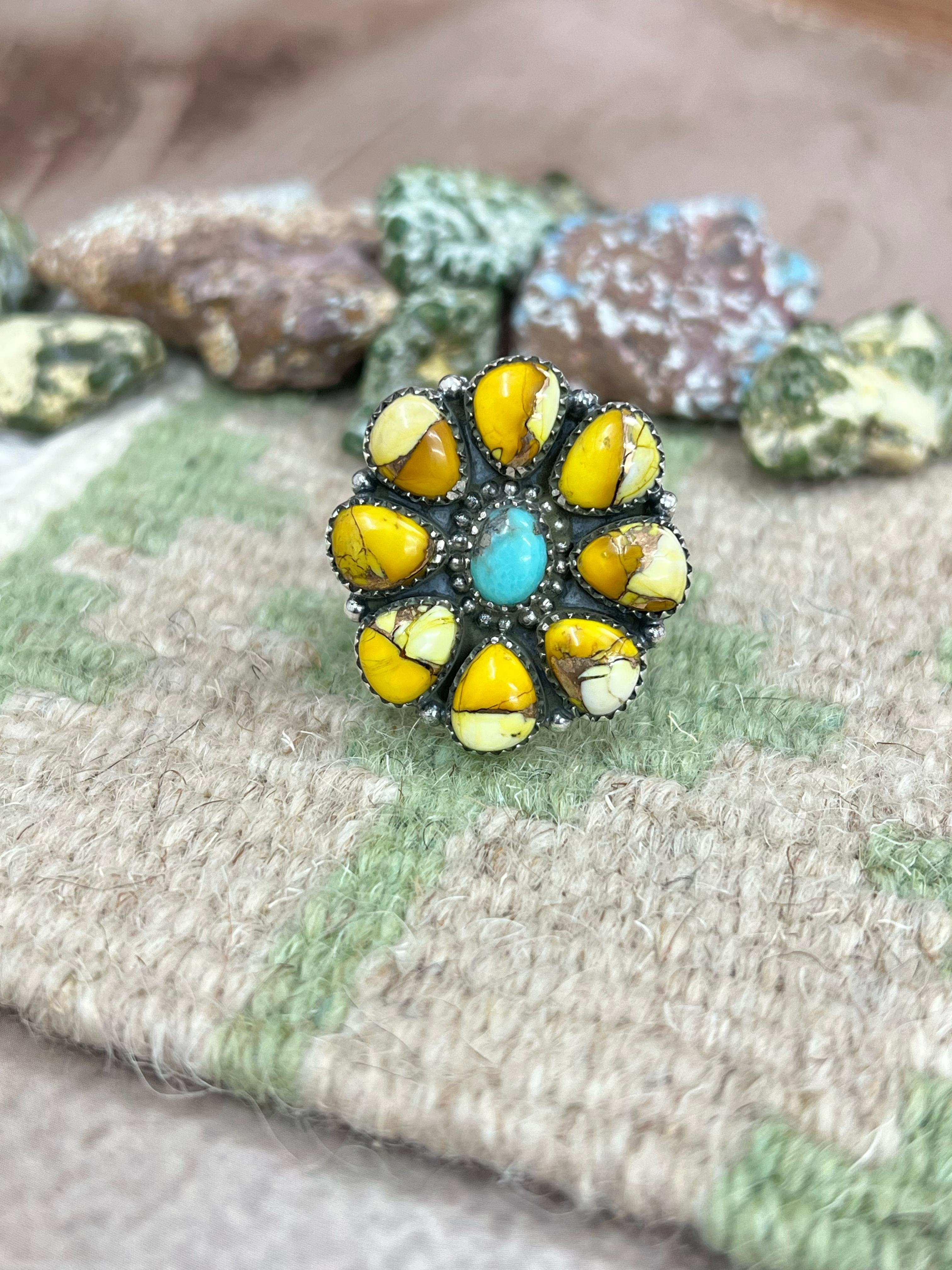 Handmade Sterling Silver Kingman Turquoise Adjustable Ring "Signed Nizhoni"