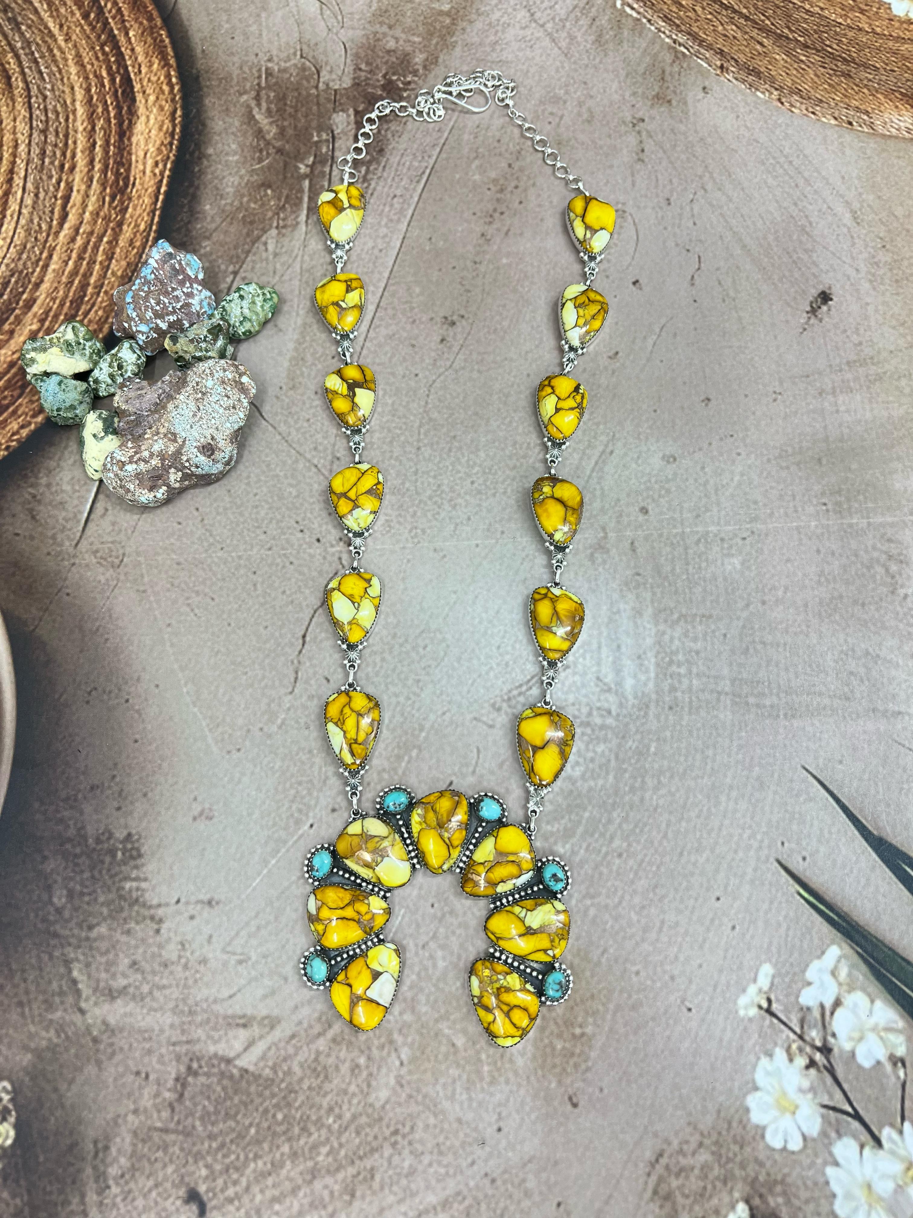 Handmade Sterling Silver Kingman Turquoise Naja Necklace "Signed Nizhoni"