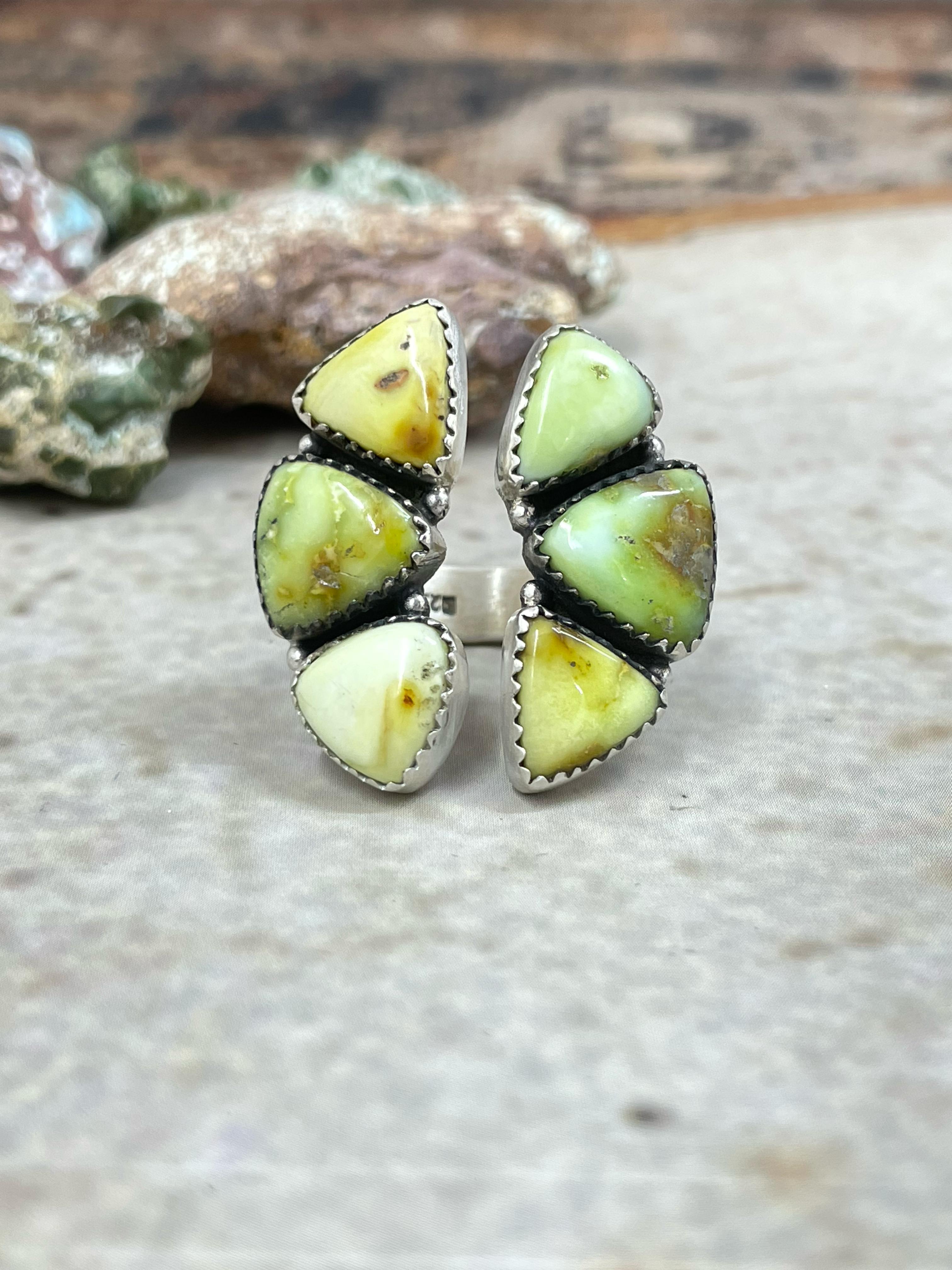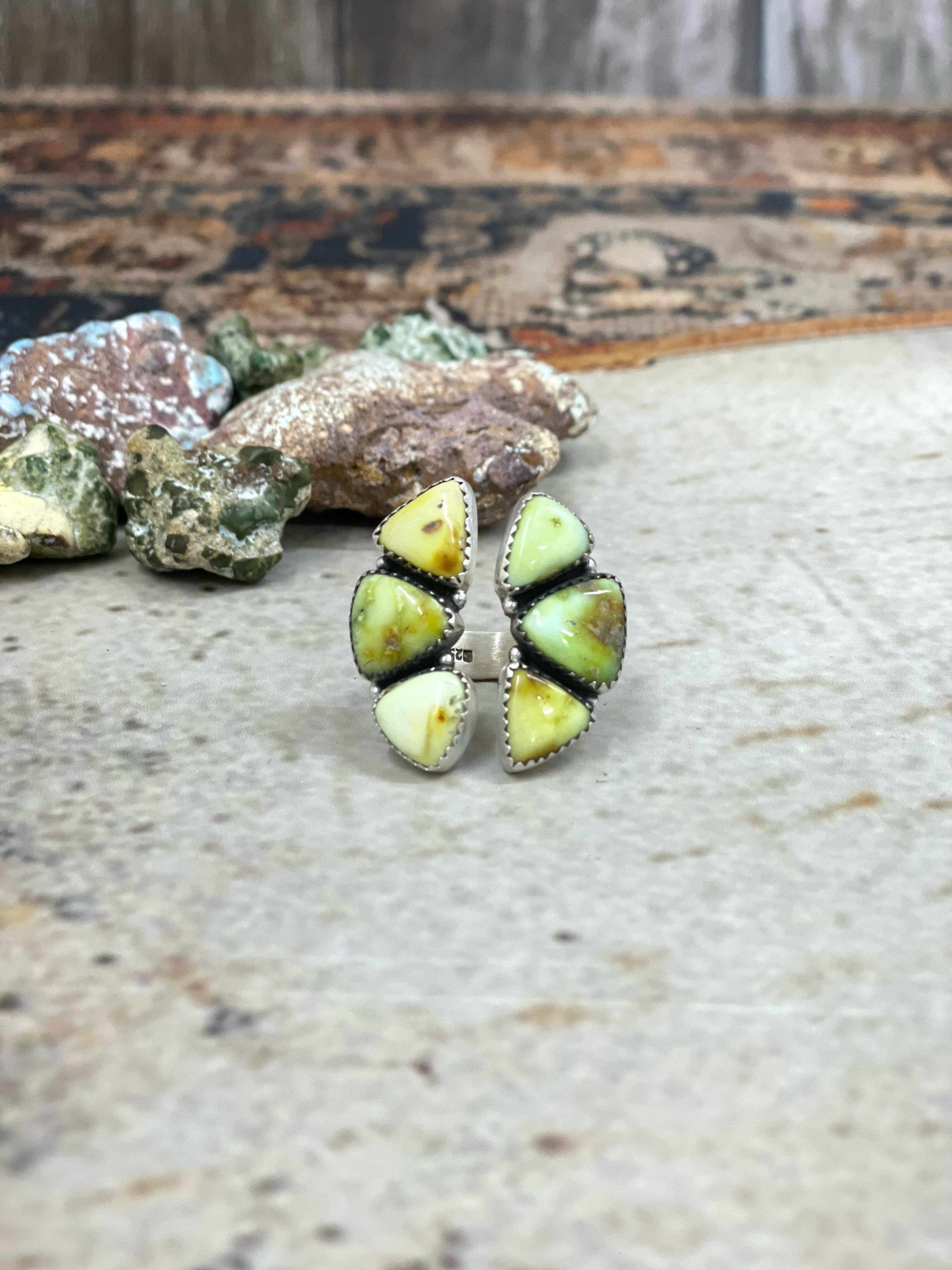 Nizhoni Handmade Palomino Turquoise Sterling Silver Flower Cluster Ring