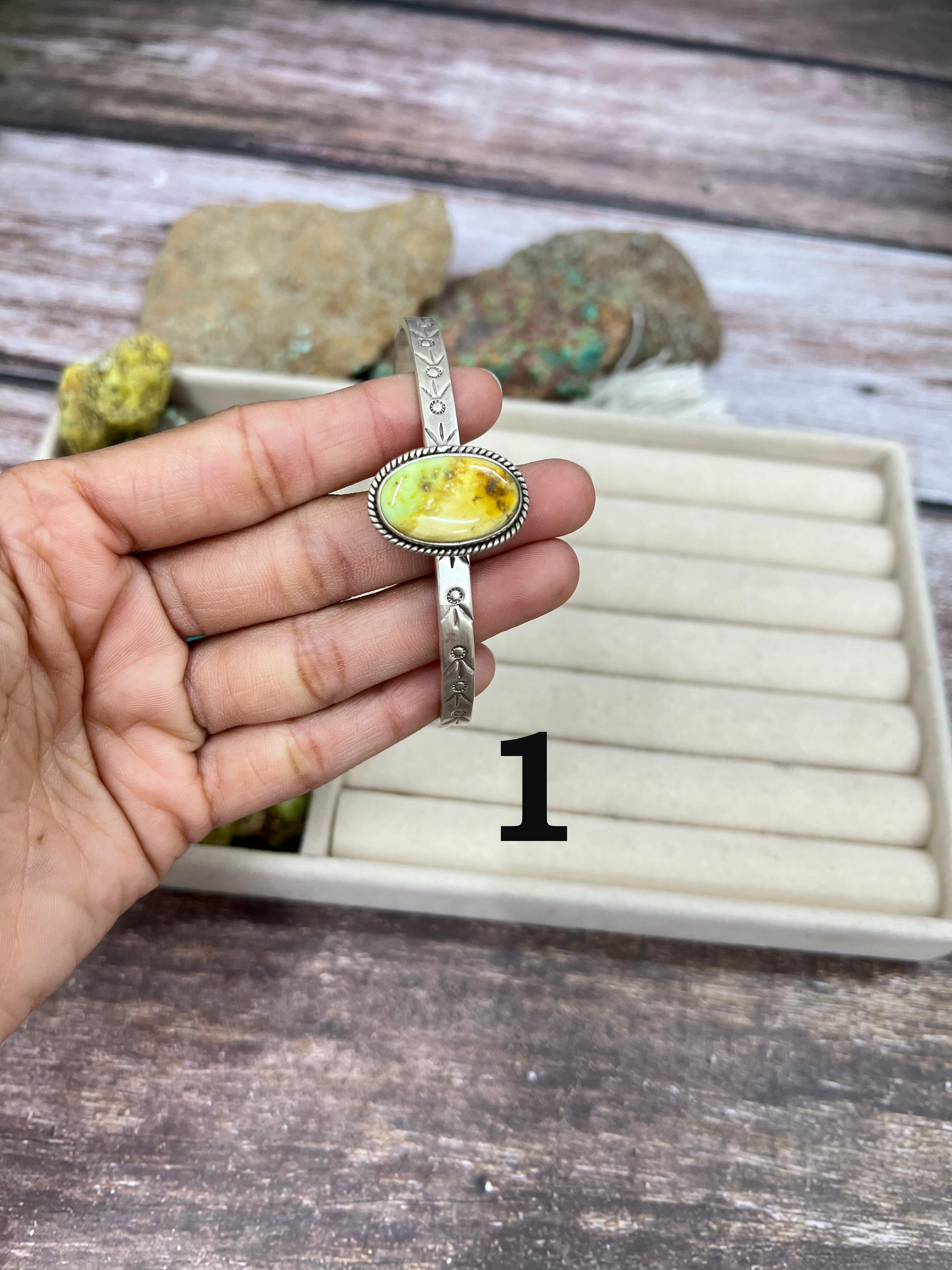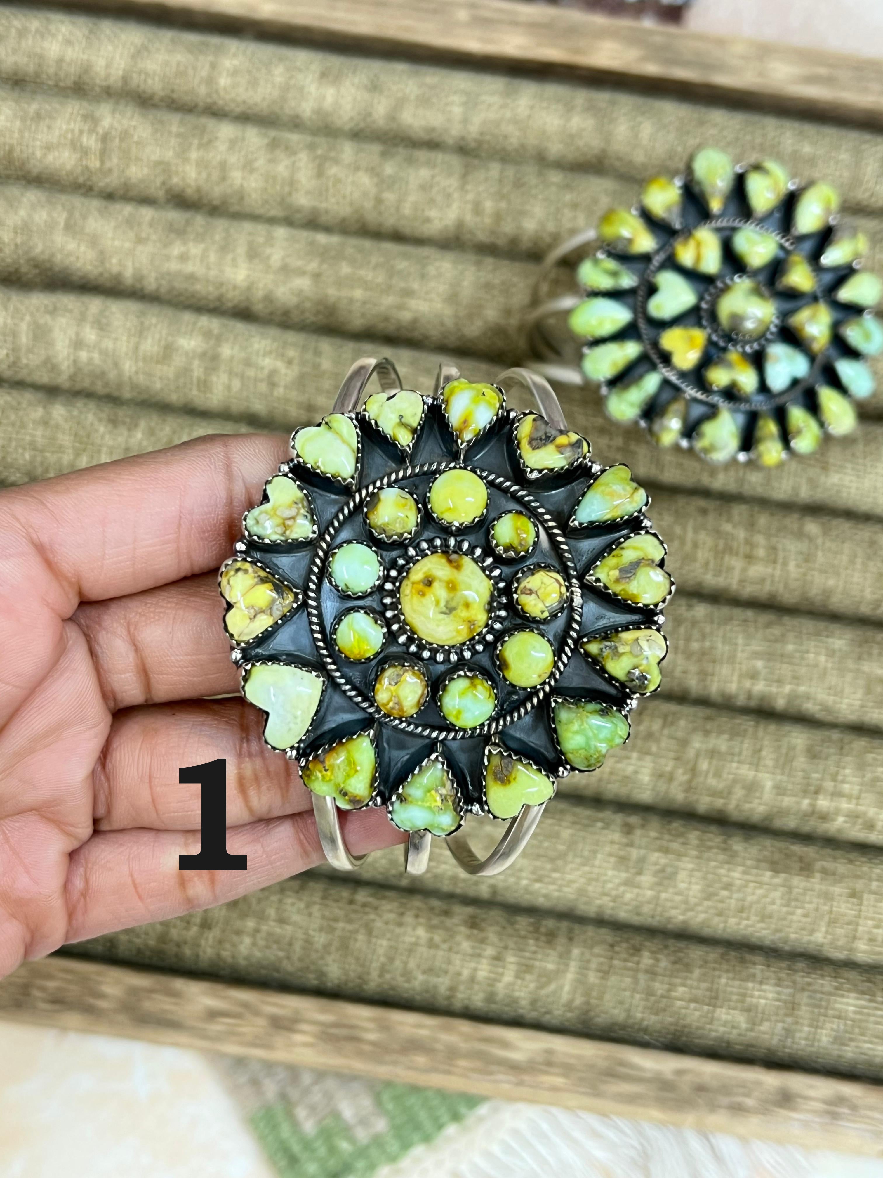 Larry James Palomino Turquoise & Sterling Silver Cluster Cuff Bracelet /