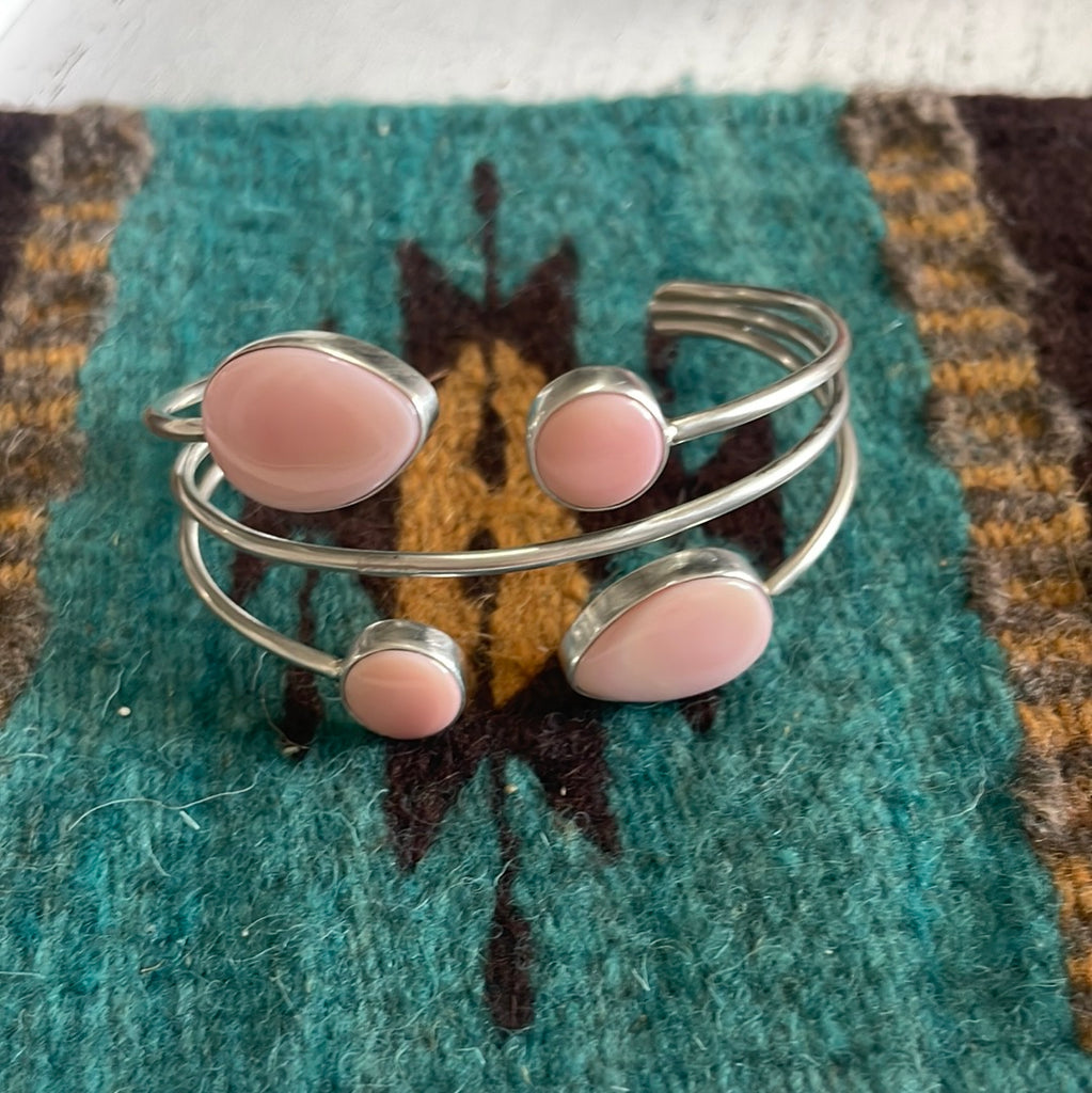 Navajo Queen Pink Conch Shell & Sterling Silver Cluster Cuff Bracelet