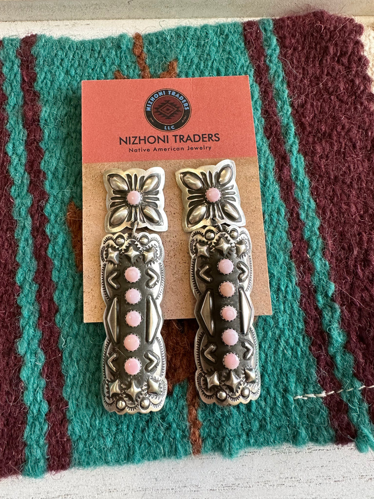 Navajo Sterling Silver & Queen Pink Conch Dangle Earrings