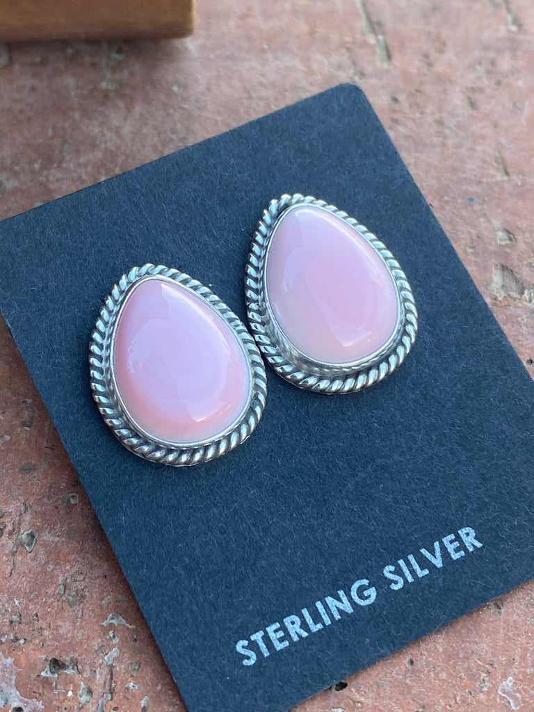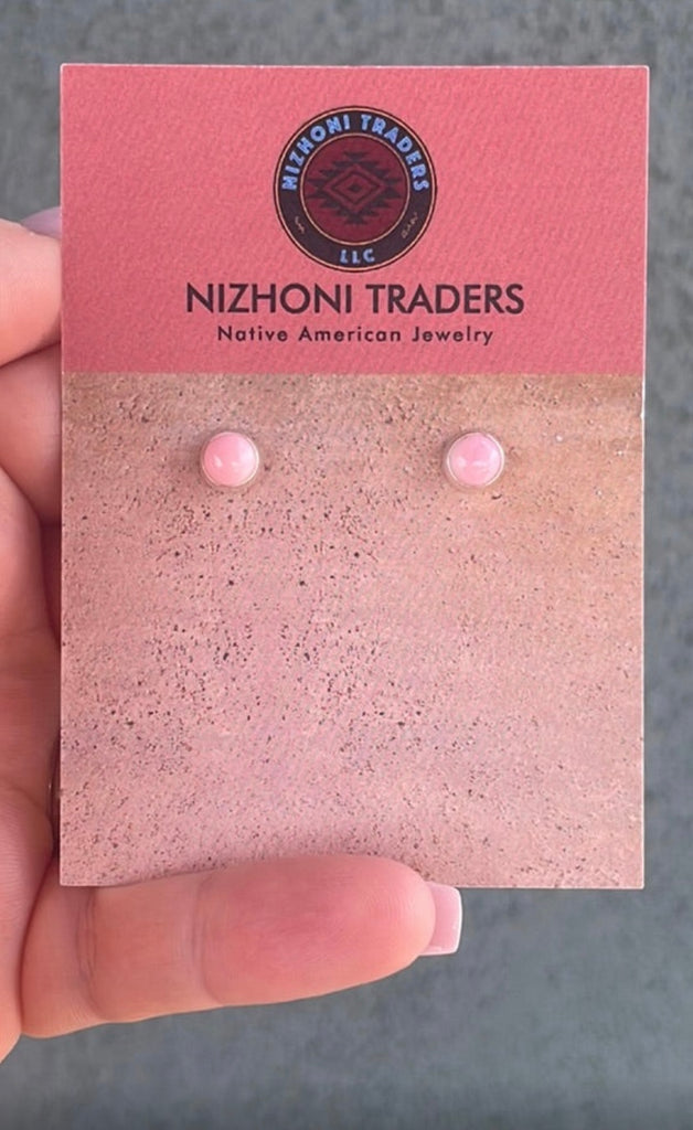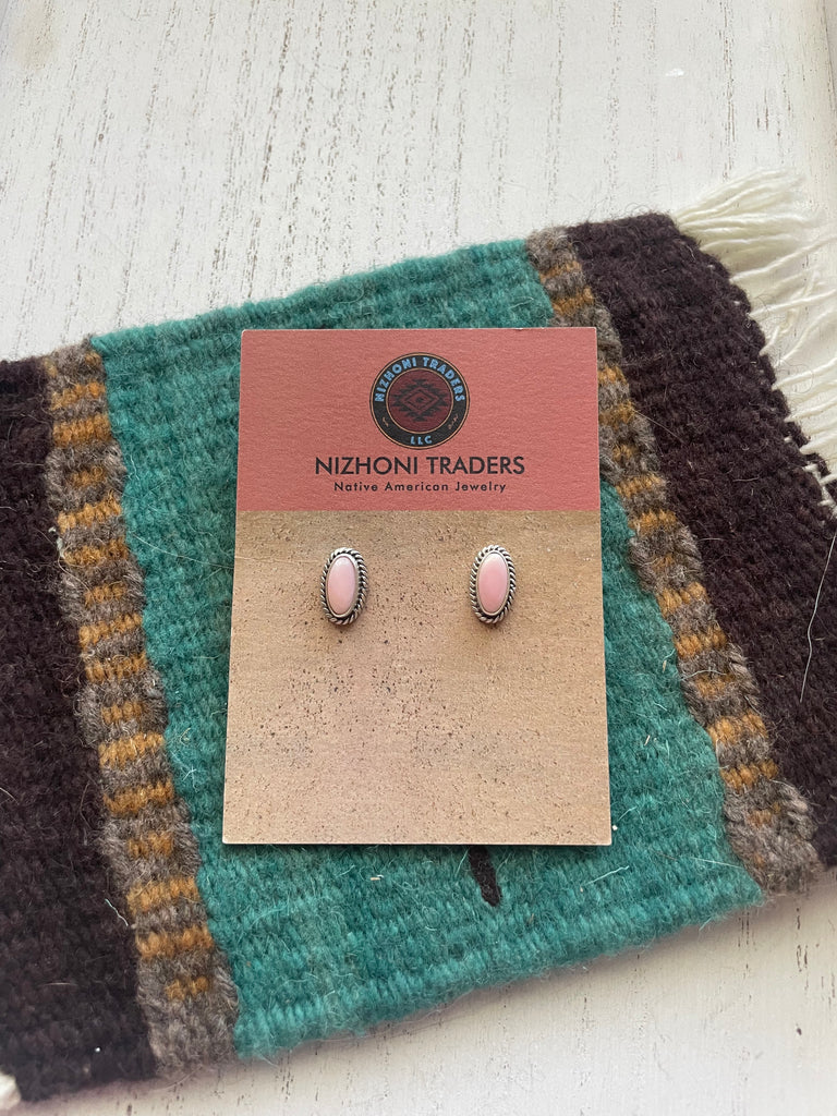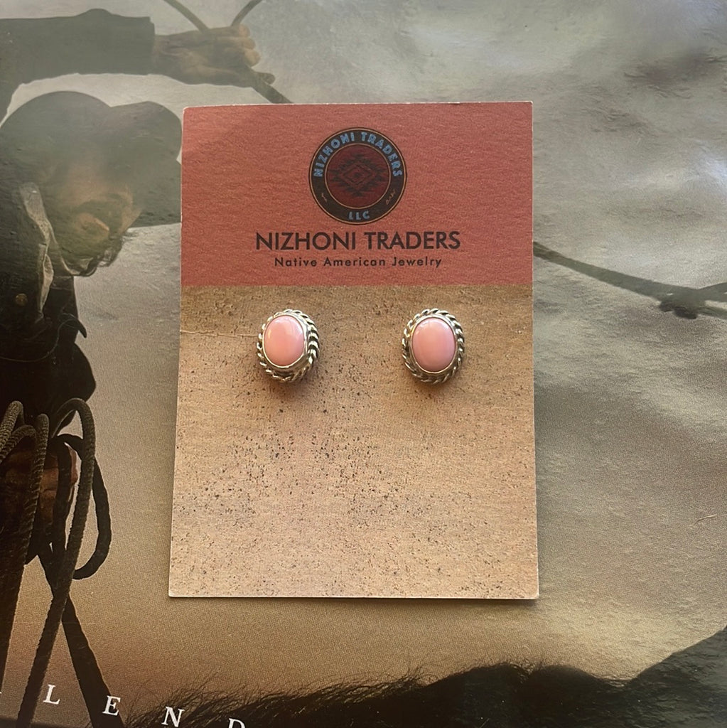 Navajo Sterling Silver Pink Conch Oval Stud Earrings