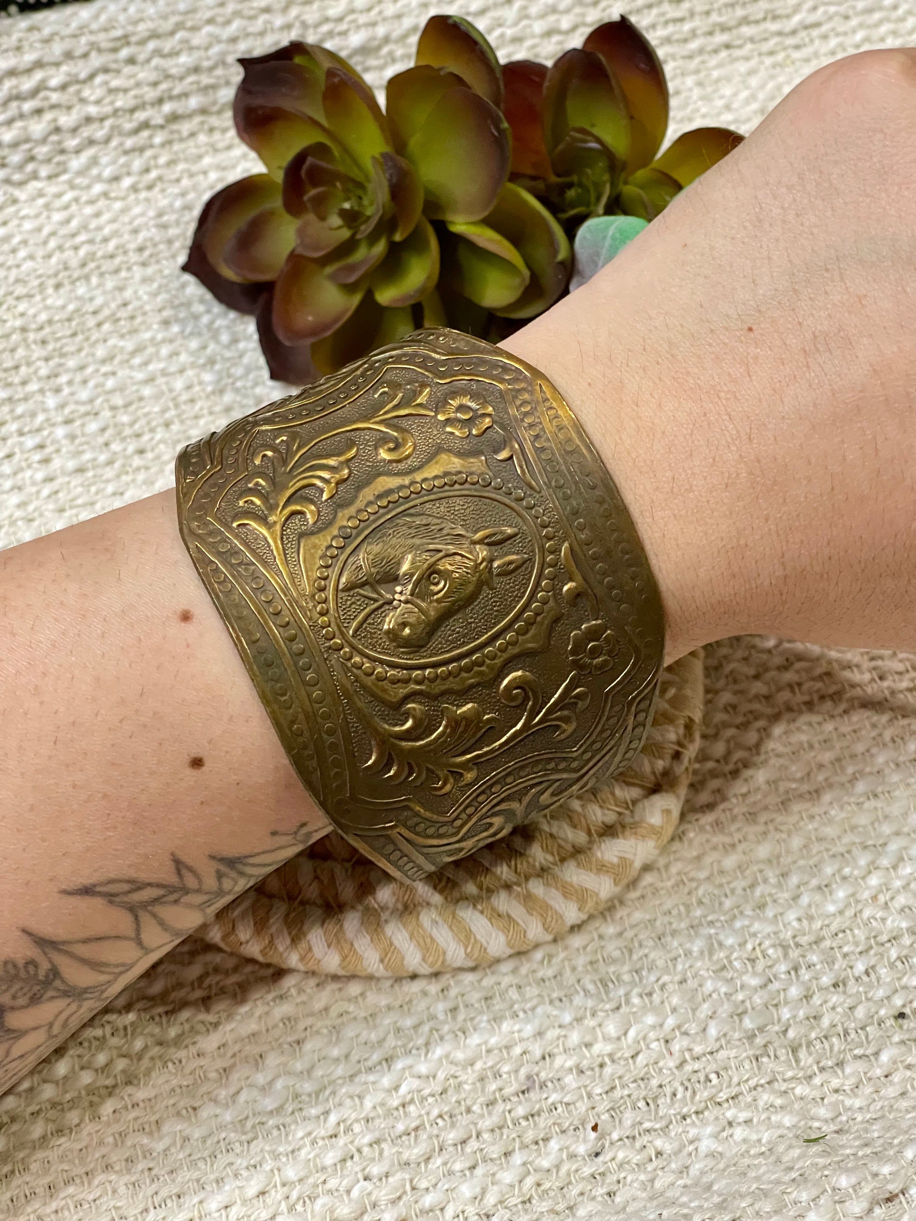 Vintage Style Cuff Bracelet W/Center Bead Cross