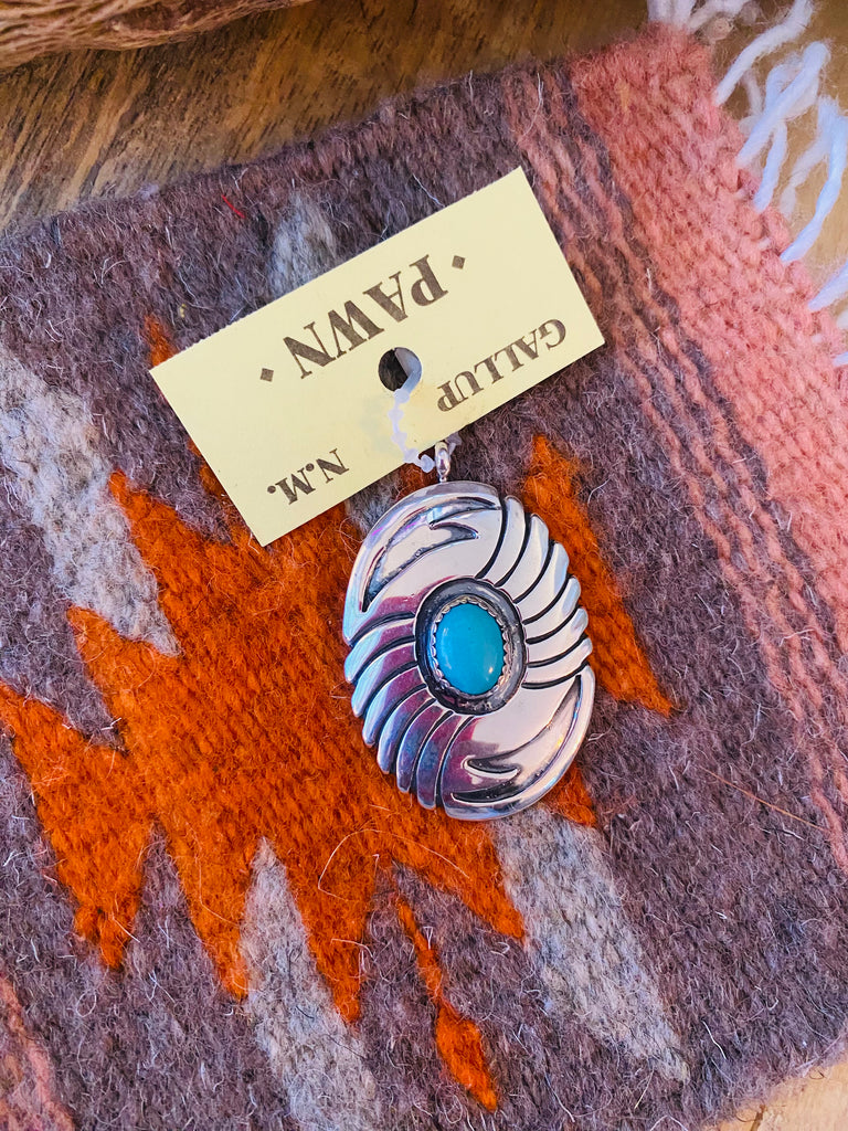 Handcrafted Vintage Old Pawn Turquoise, Coral & Sterling Silver Belt Buckle