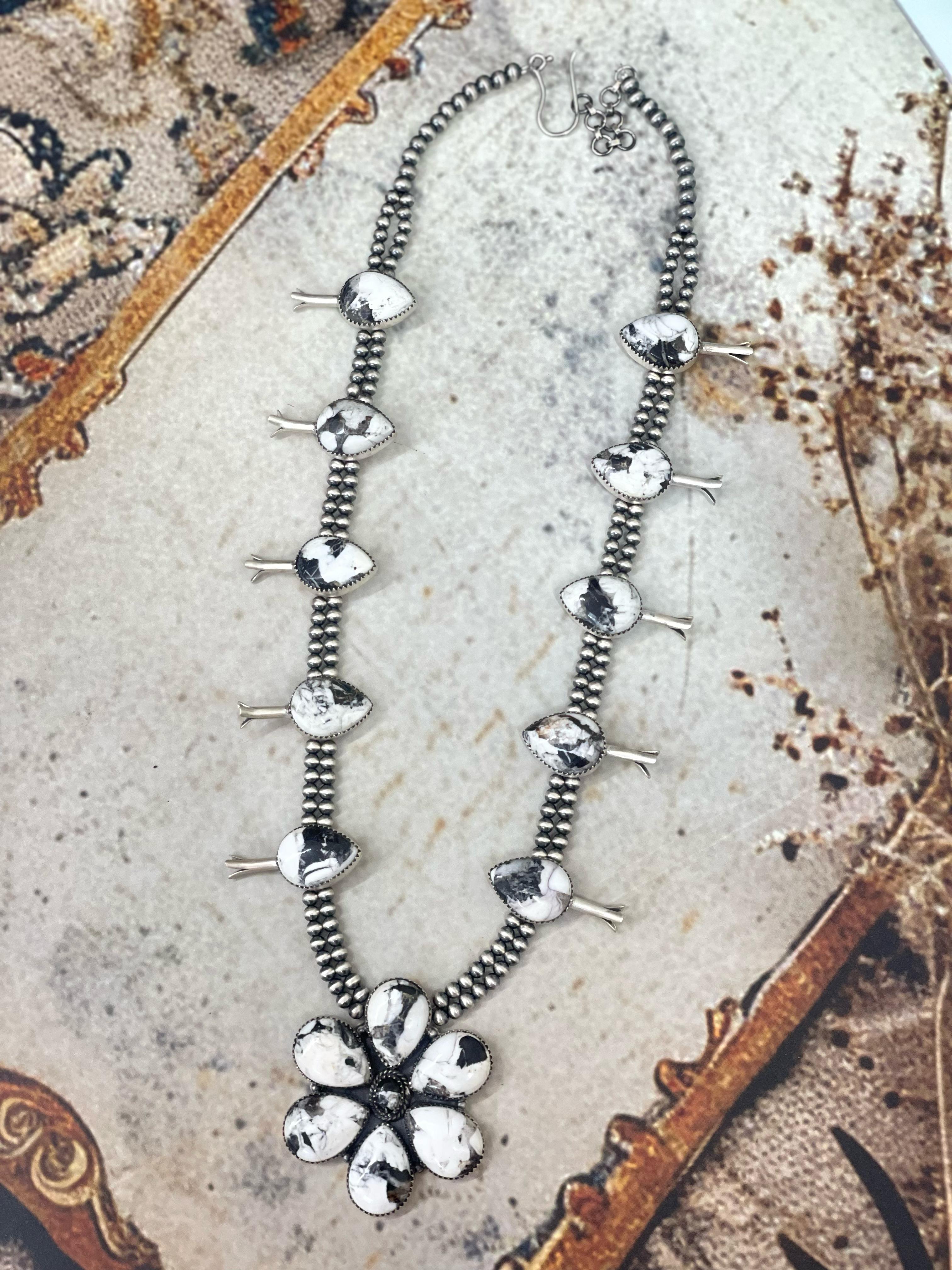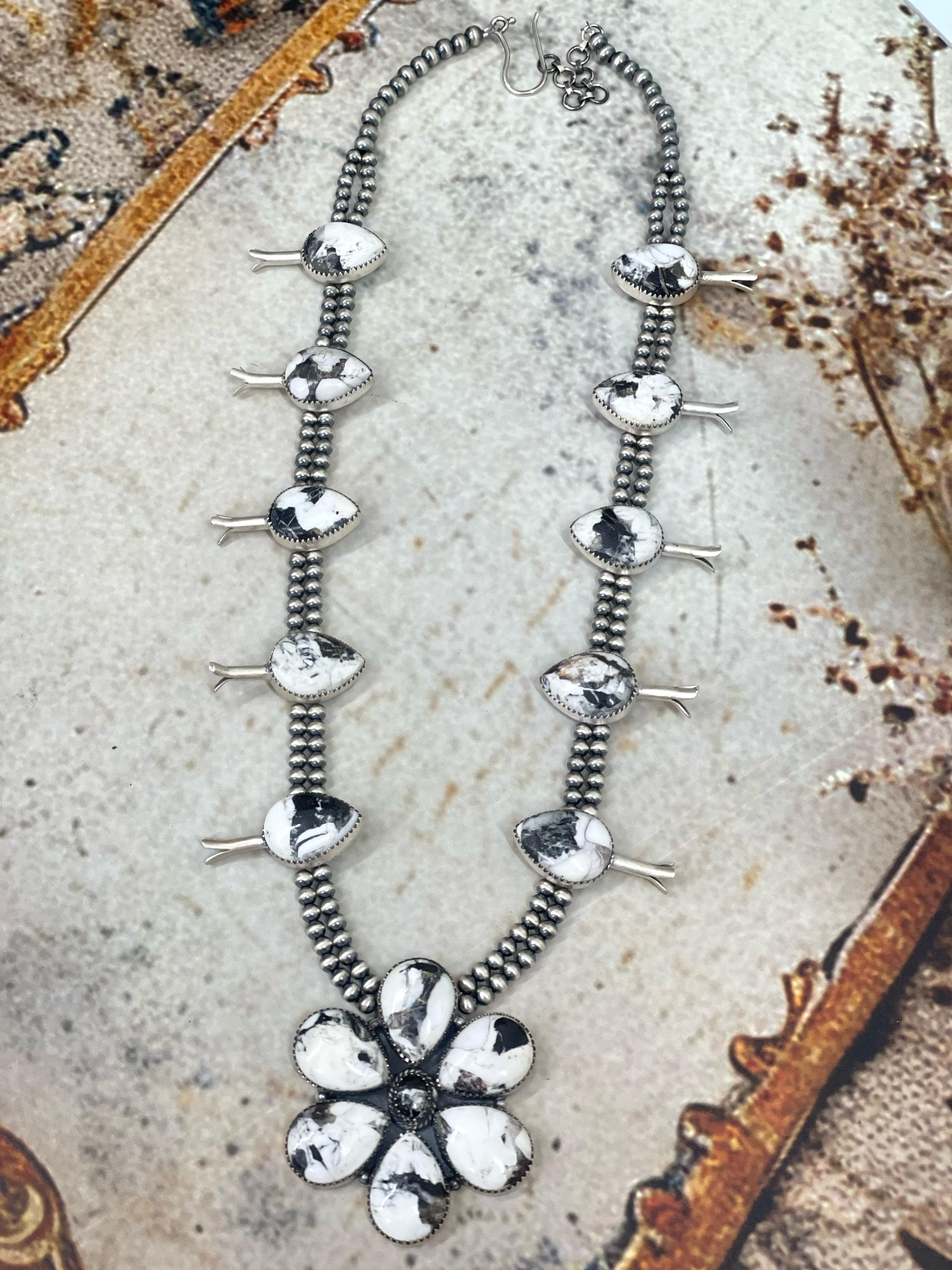 Handmade Sterling Silver White Buffalo Necklace "Signed Nizhoni"