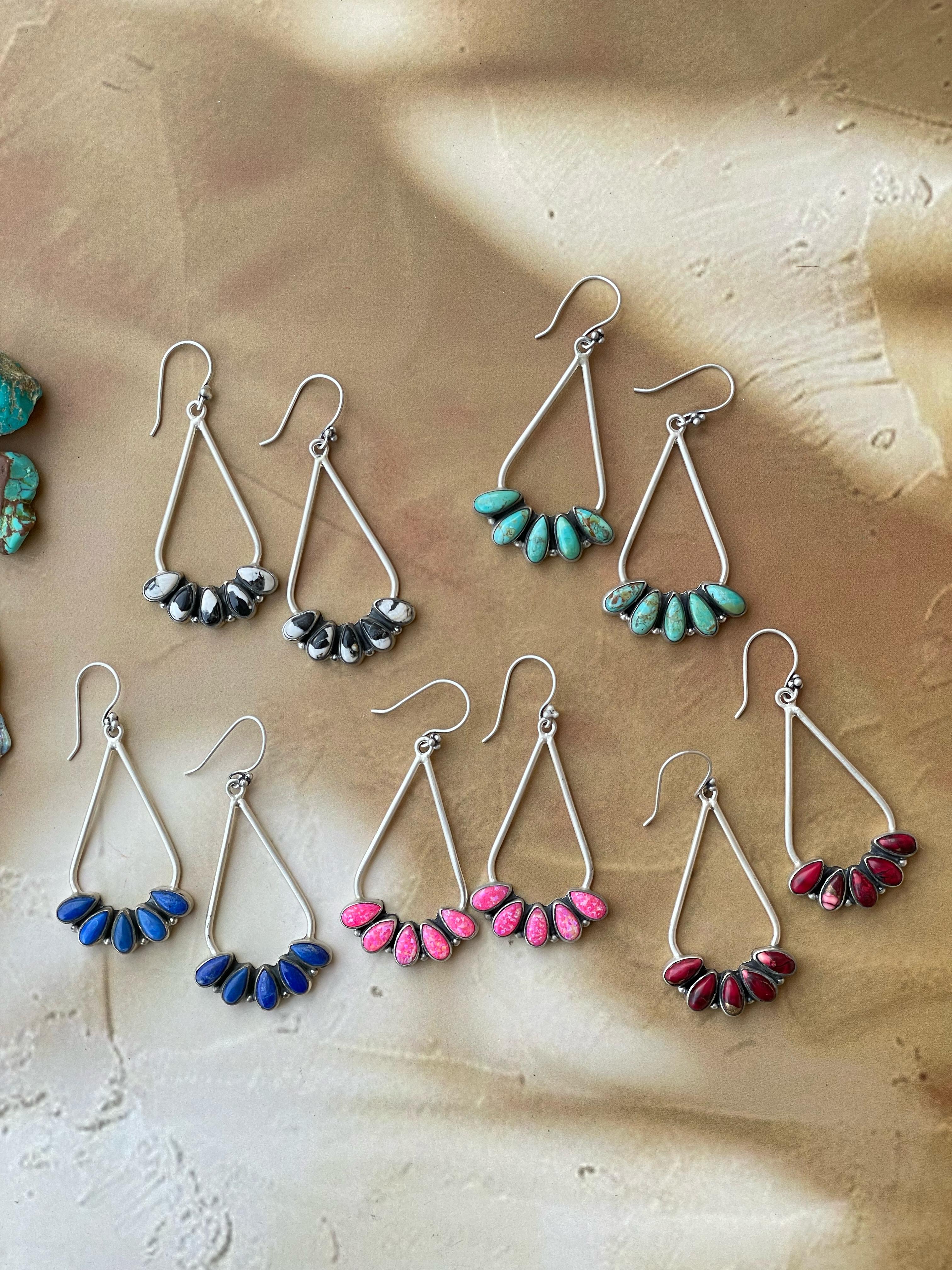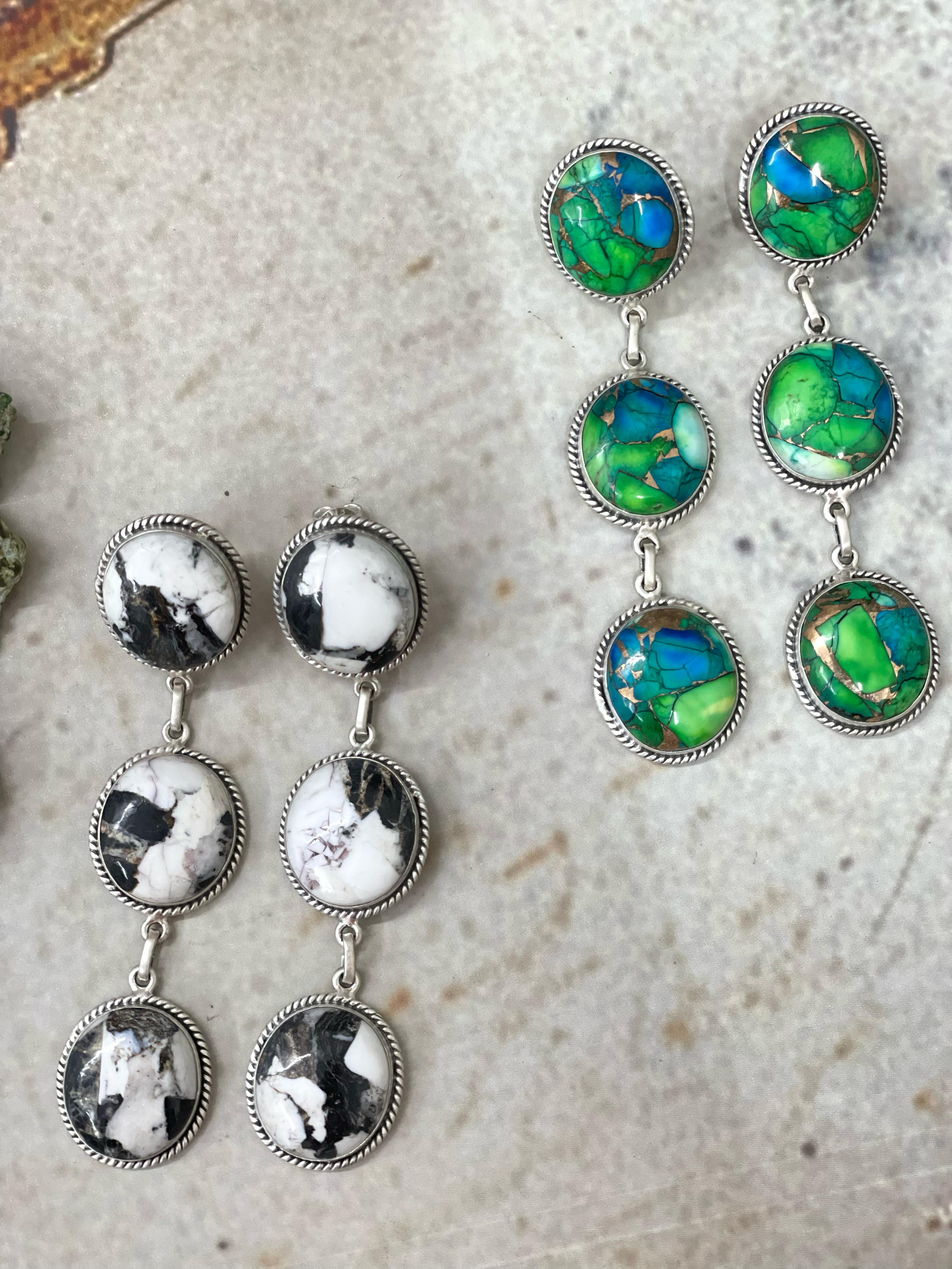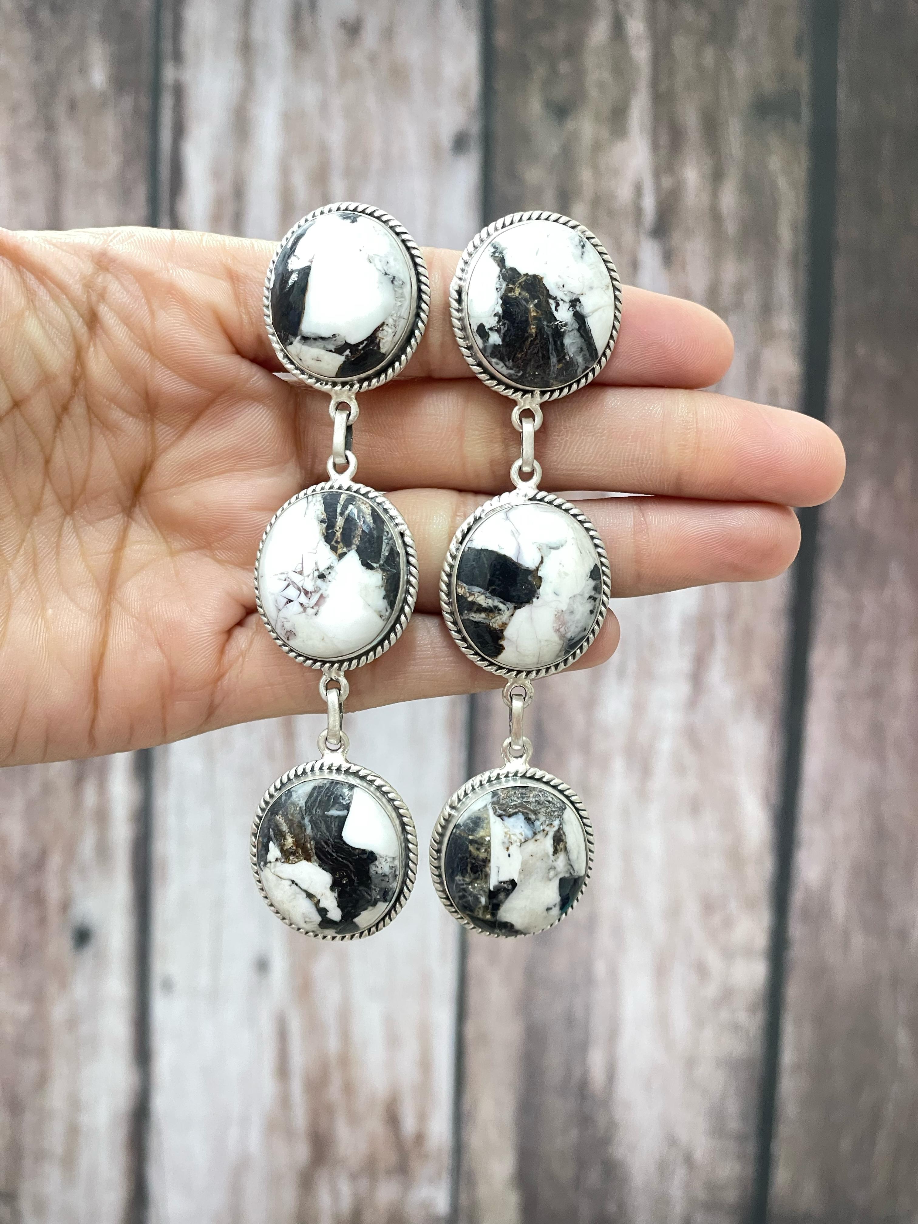 Handmade Sterling Silver White Buffalo Post Dangle Earrings "Signed Nizhoni"