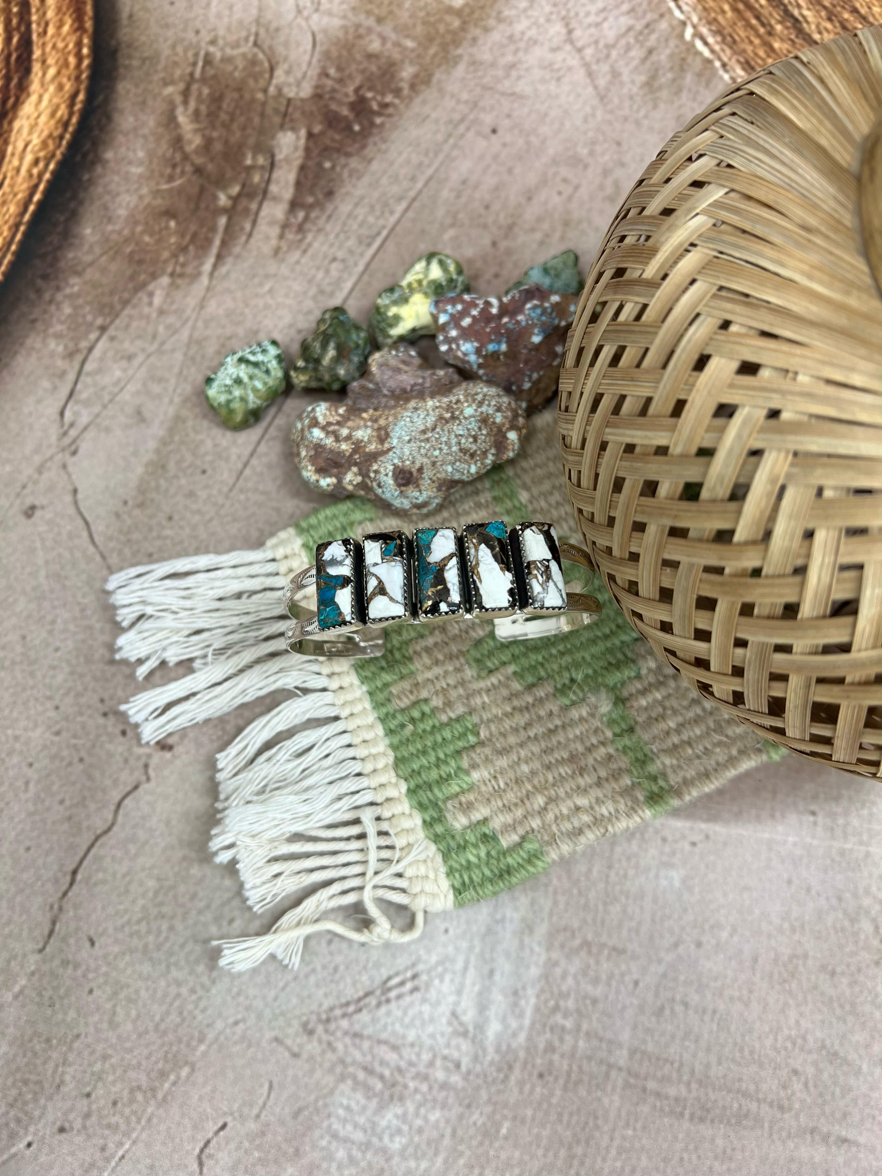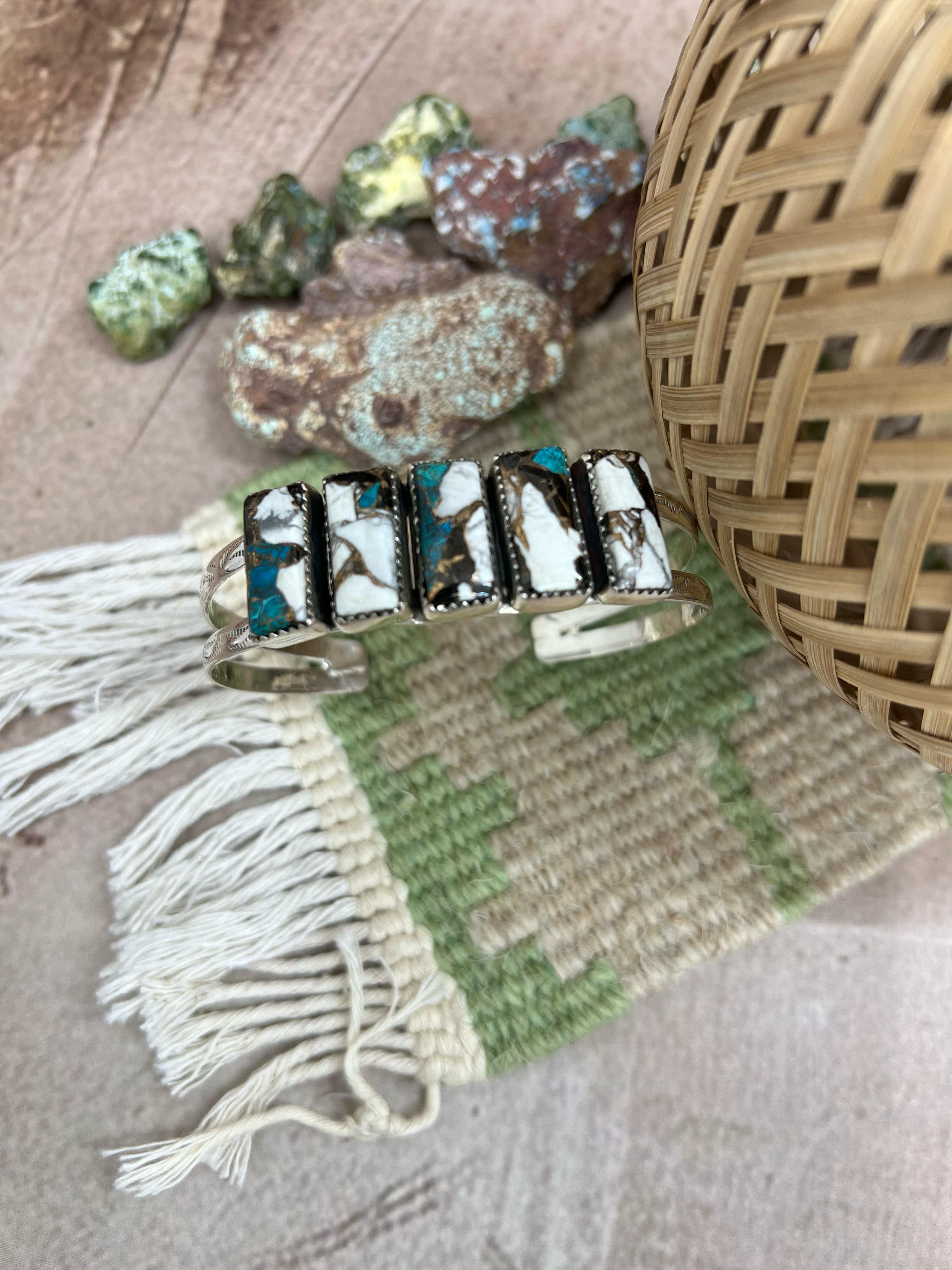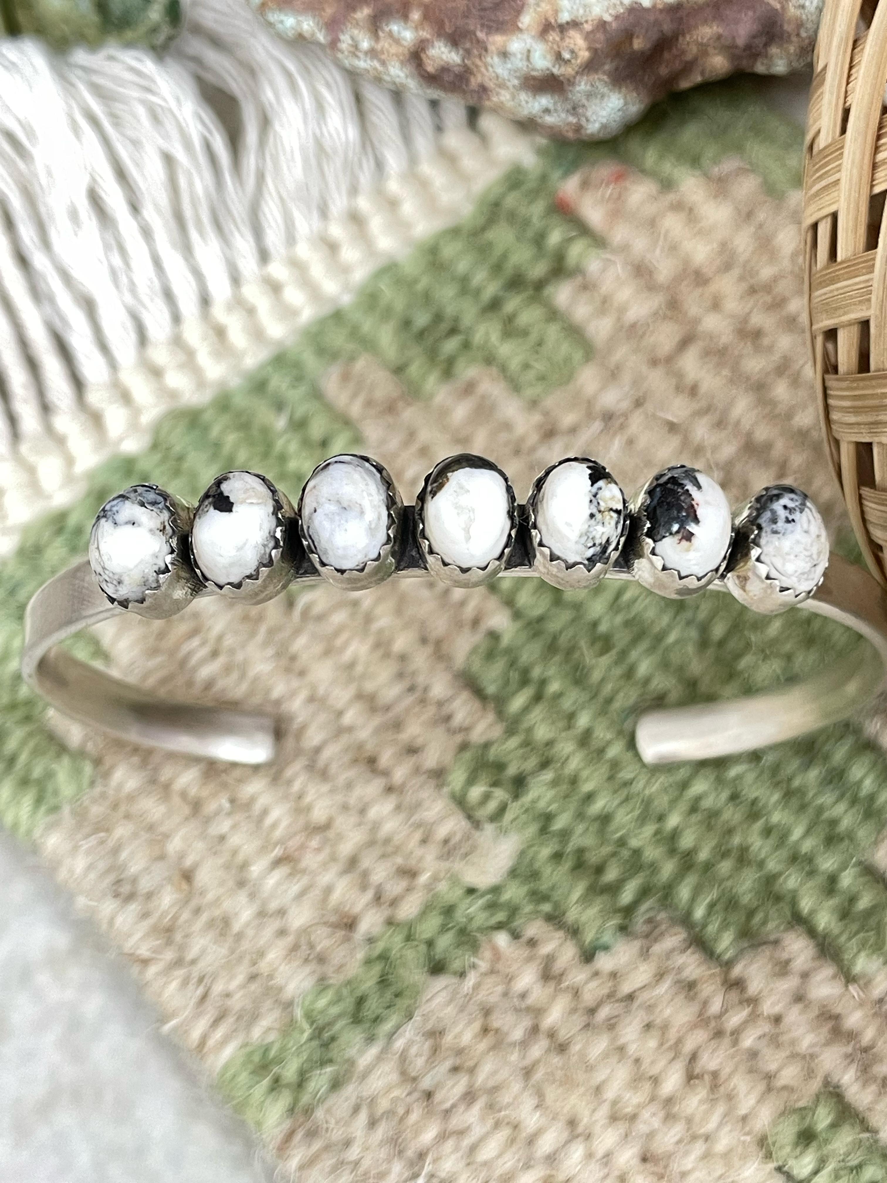 Handmade Sterling Silver White Buffalo Cuff Bracelet "Signed Nizhoni"