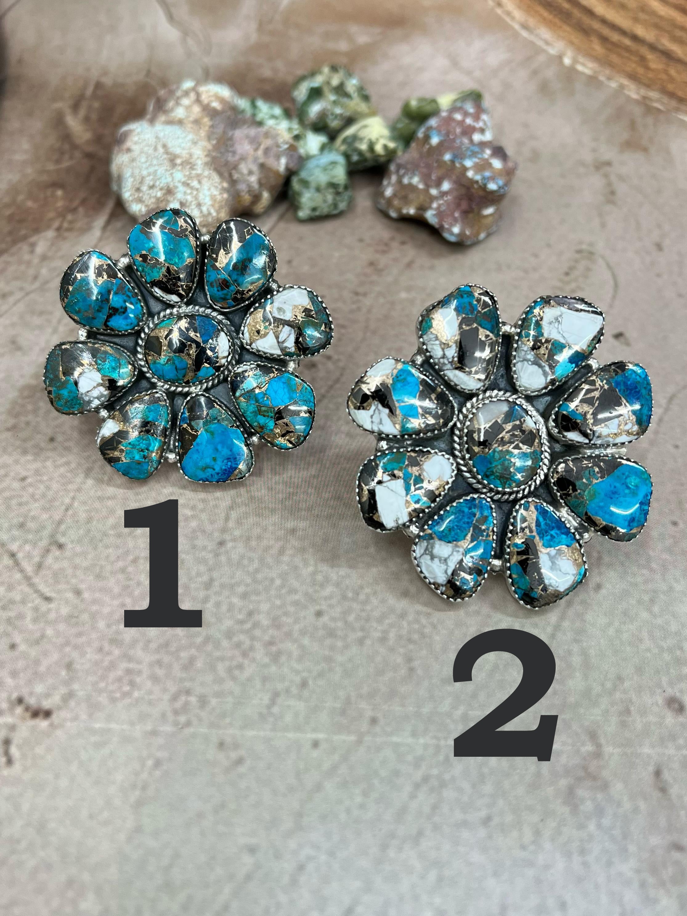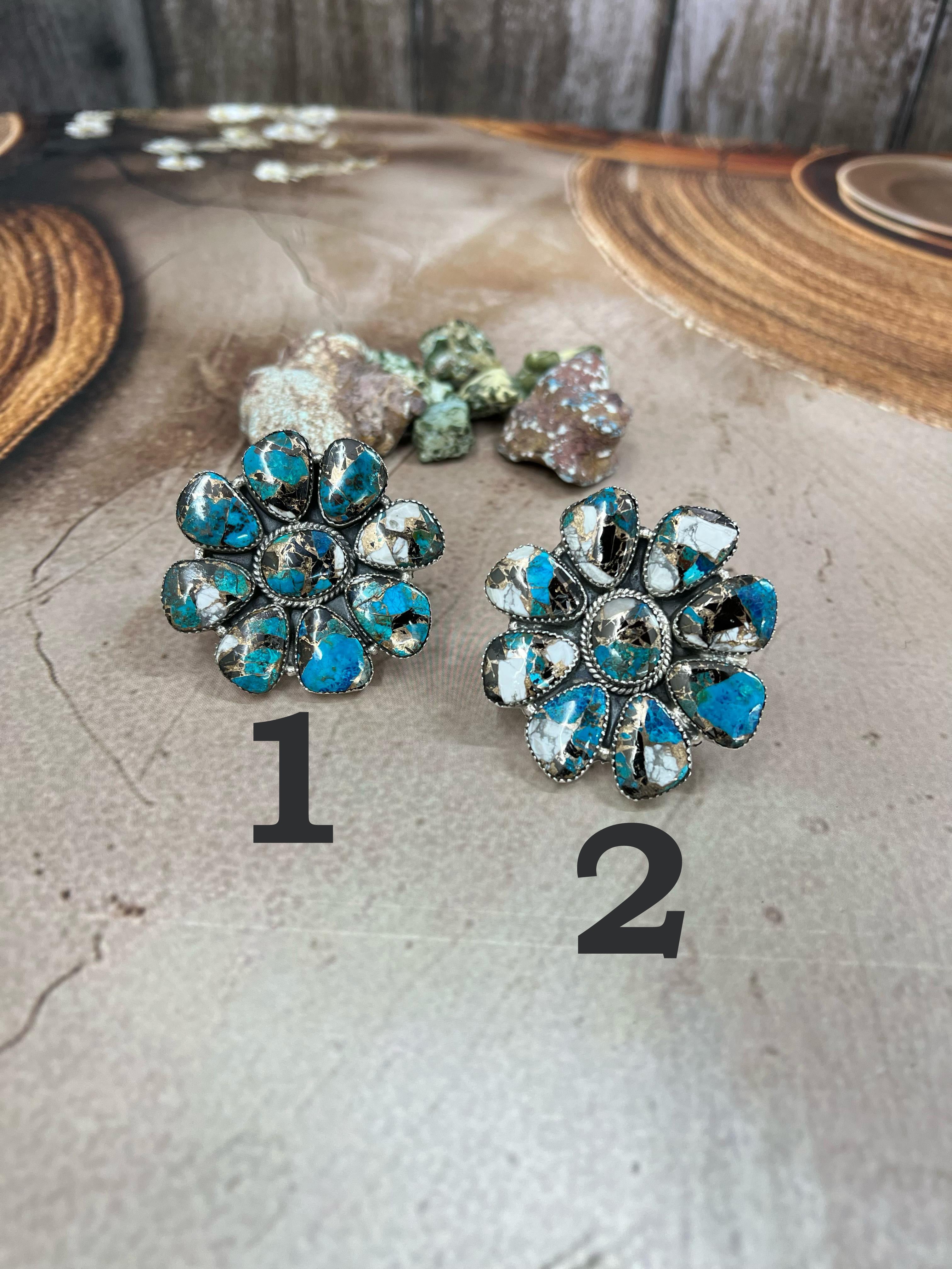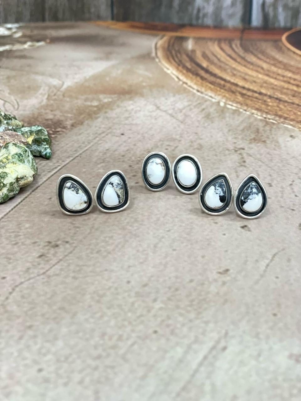 Handmade Sterling Silver White Buffalo Post Earrings "Signed Nizhoni"
