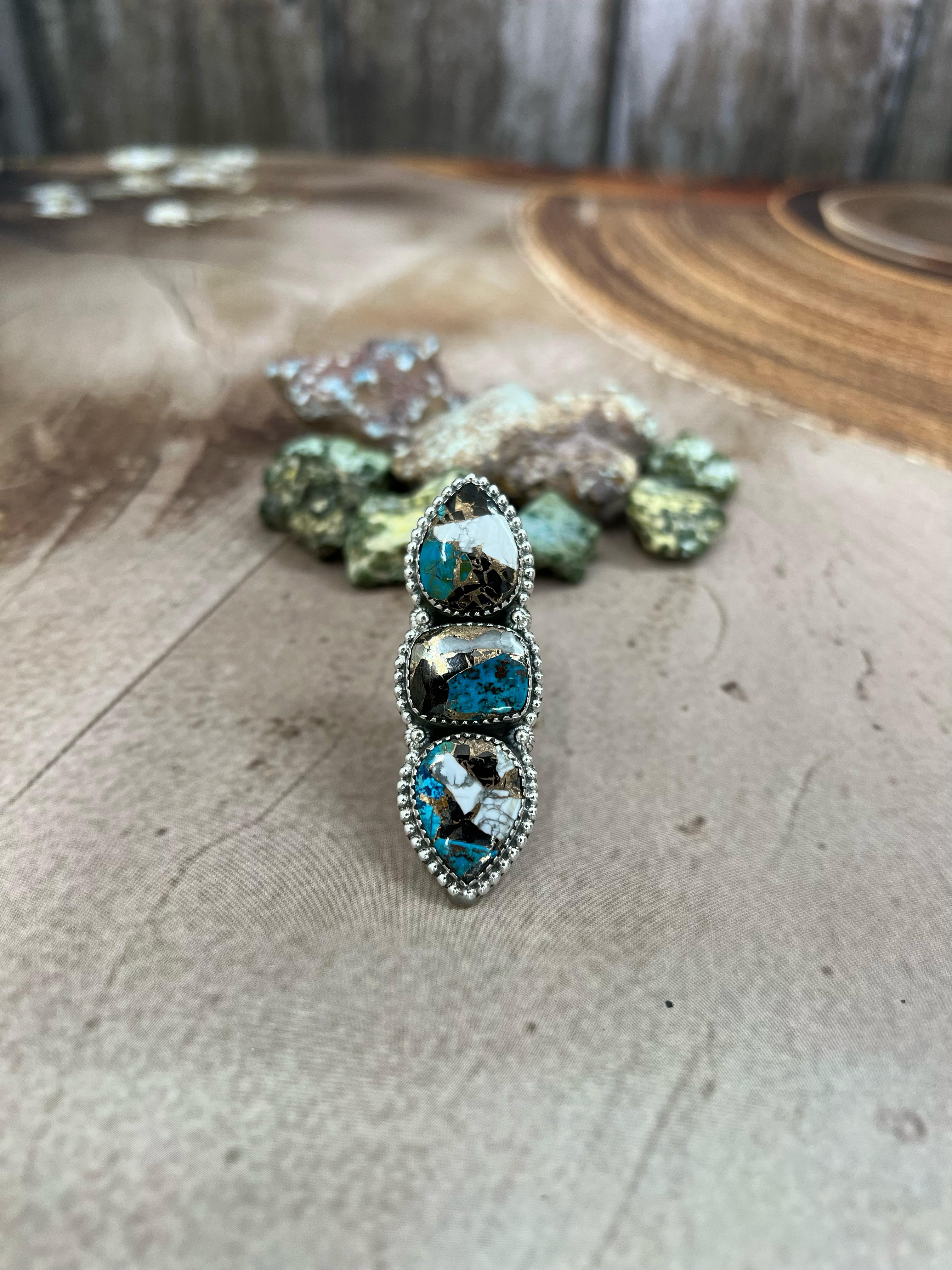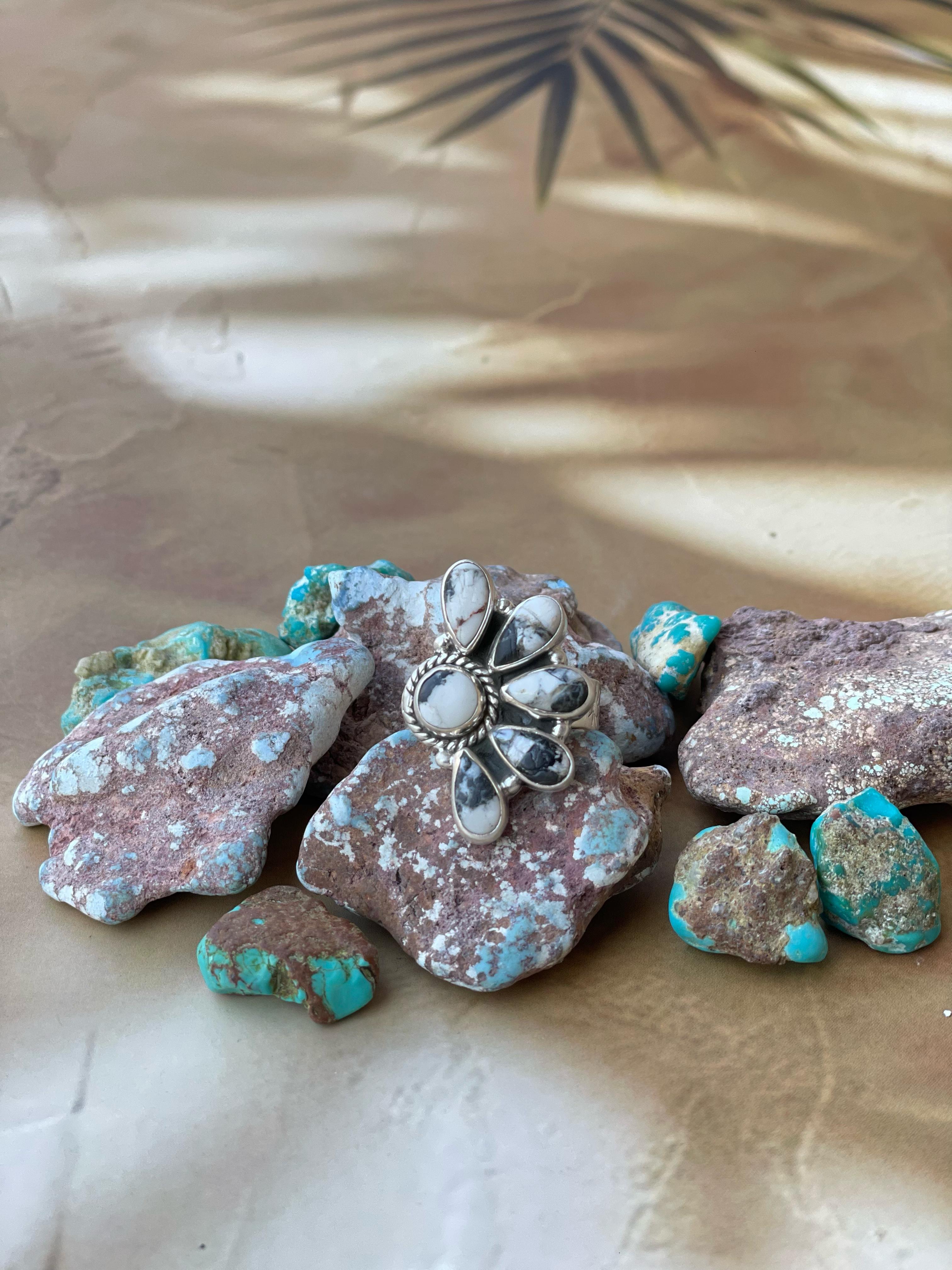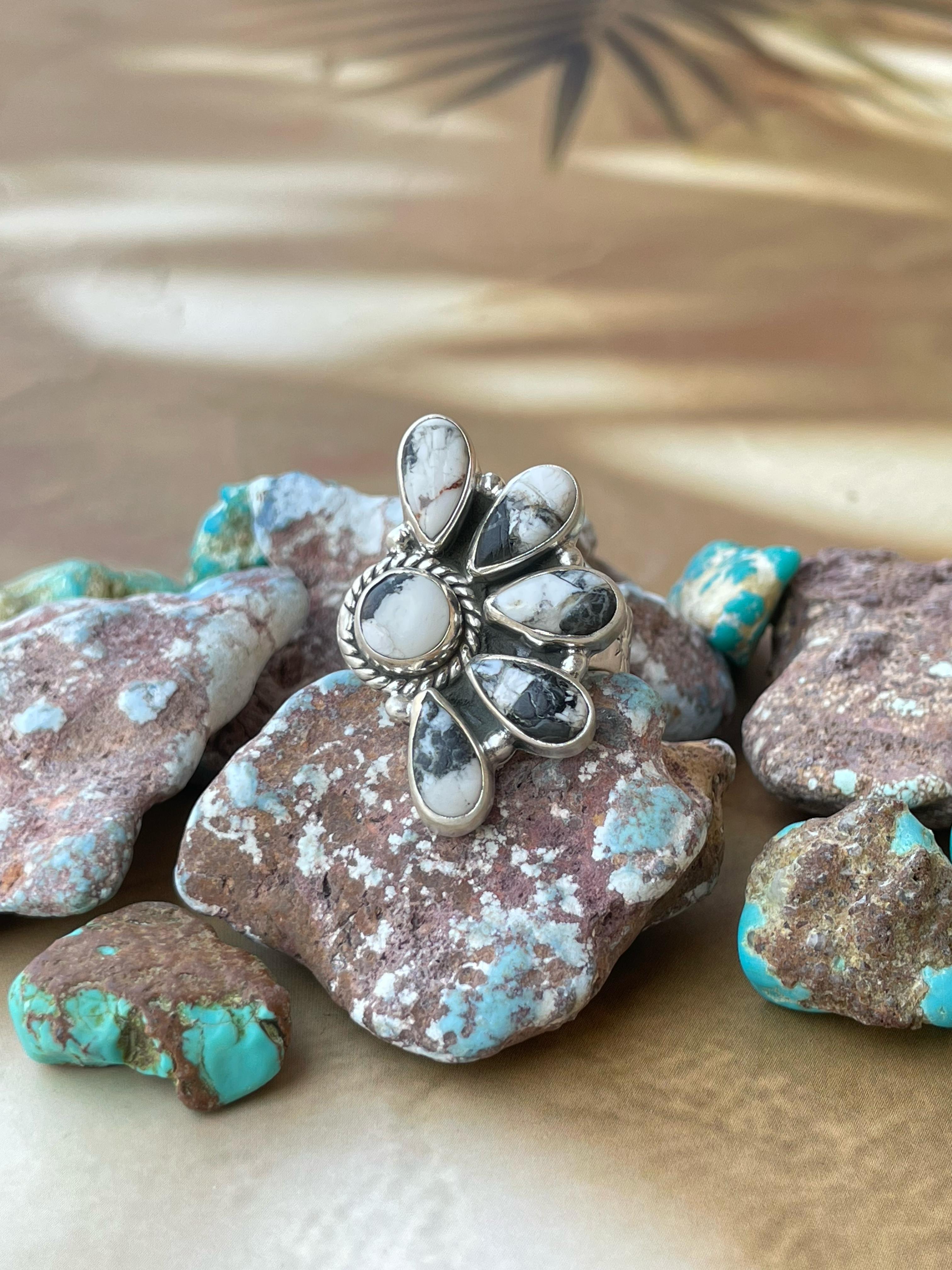 Handmade White Buffalo & CZ Sterling Silver Adjustable Ring
