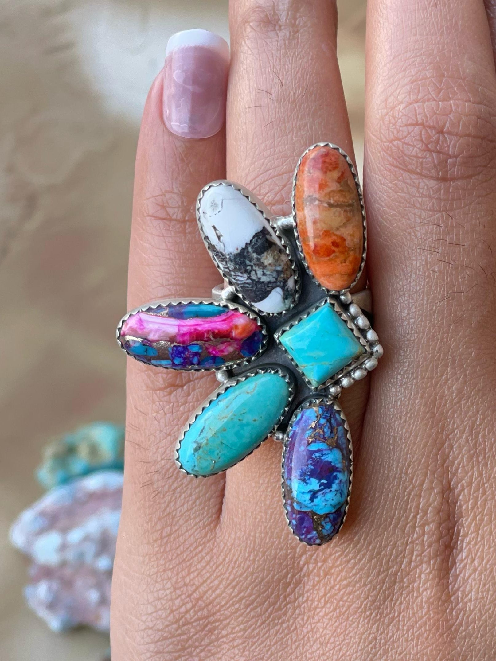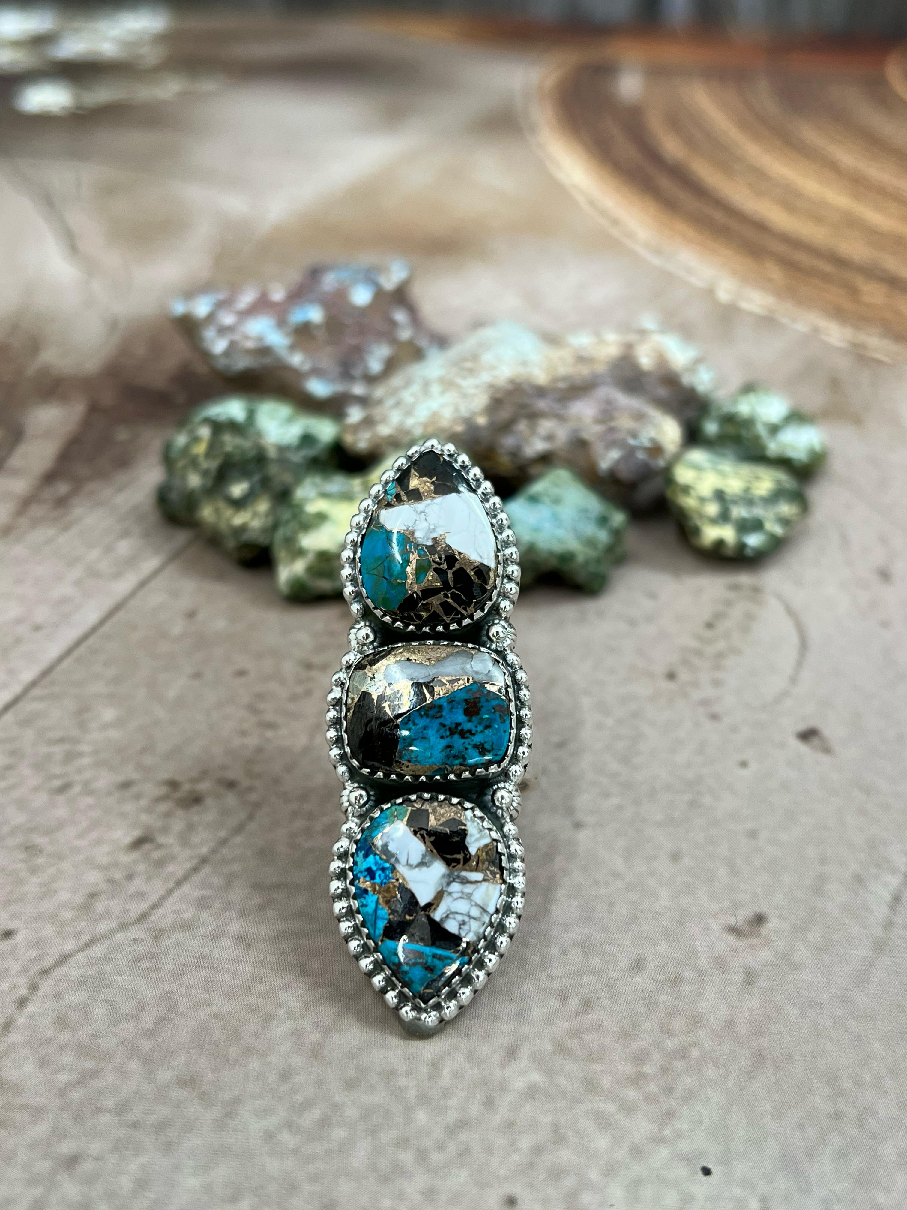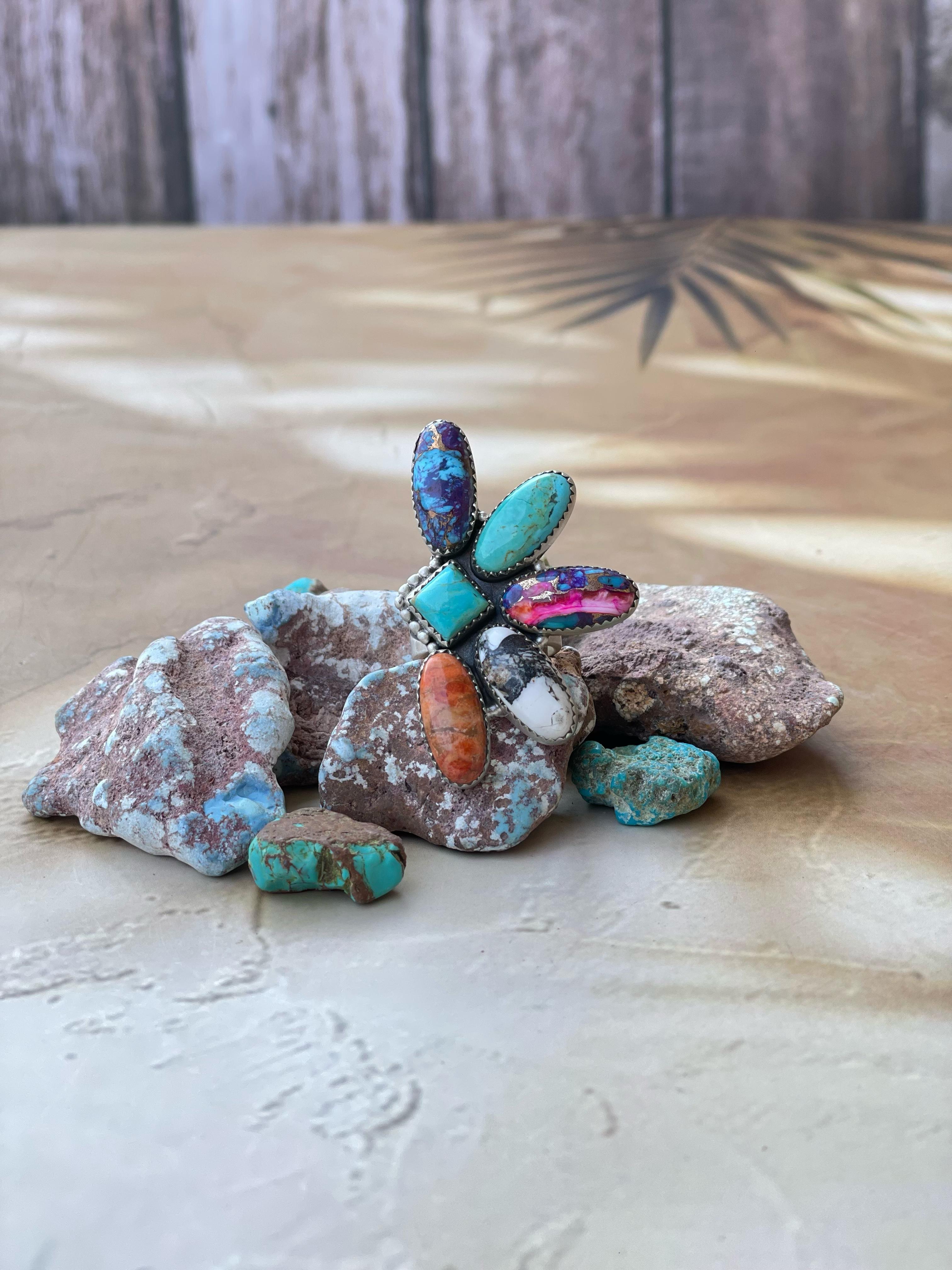 Handmade White Buffalo & CZ Sterling Silver Adjustable Ring