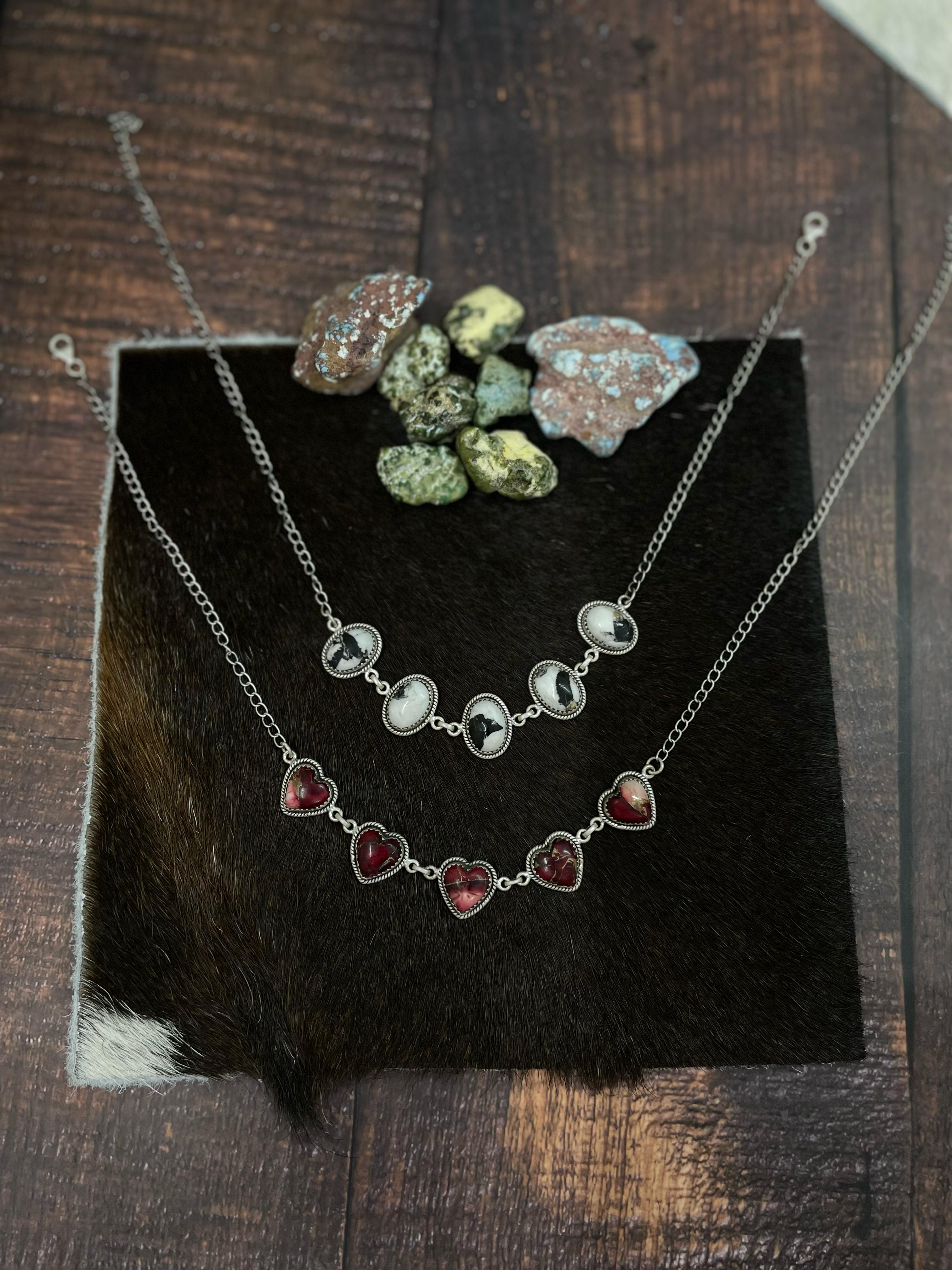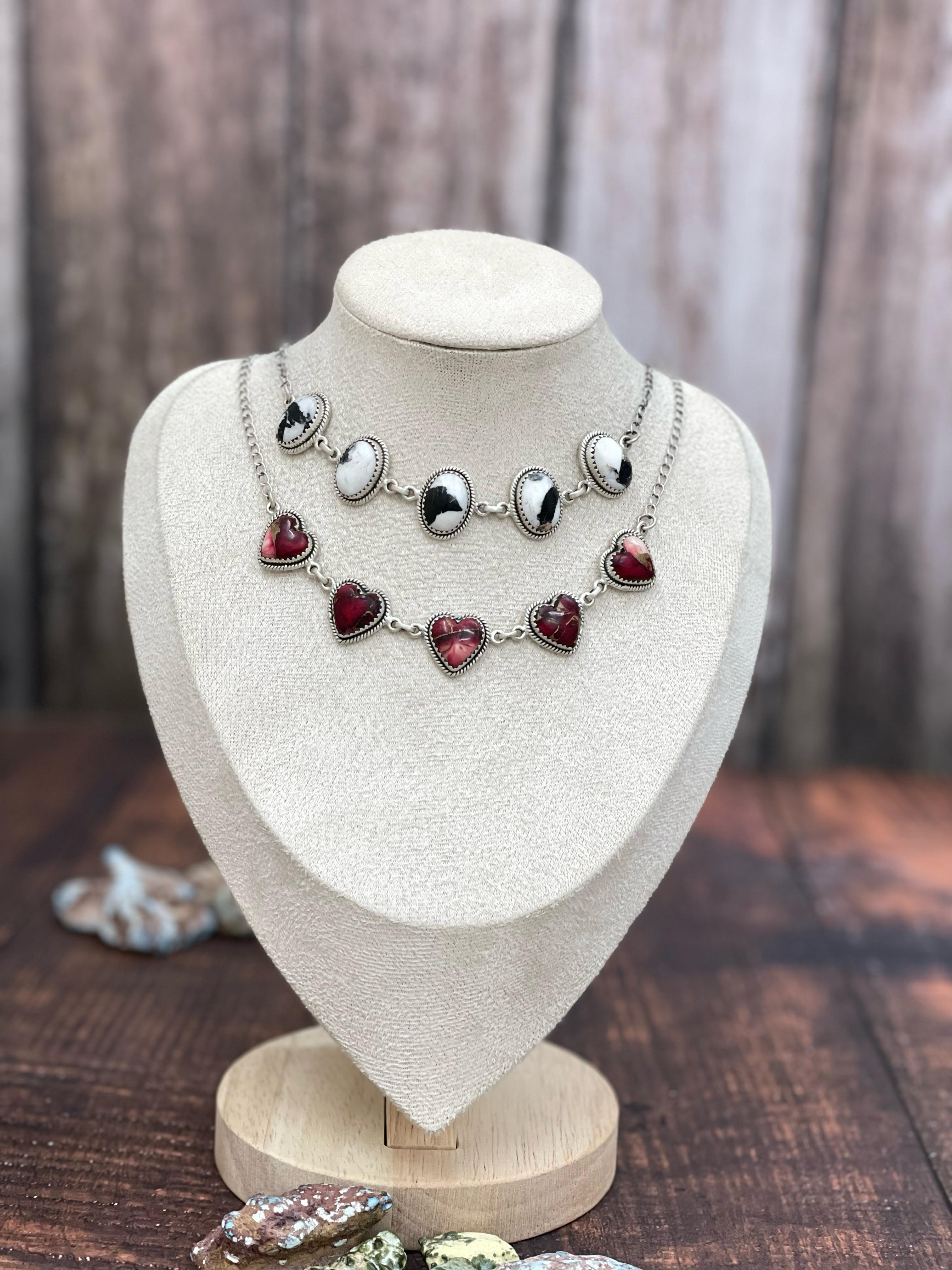 Handmade White Buffalo Red Coral Sterling Silver Necklace