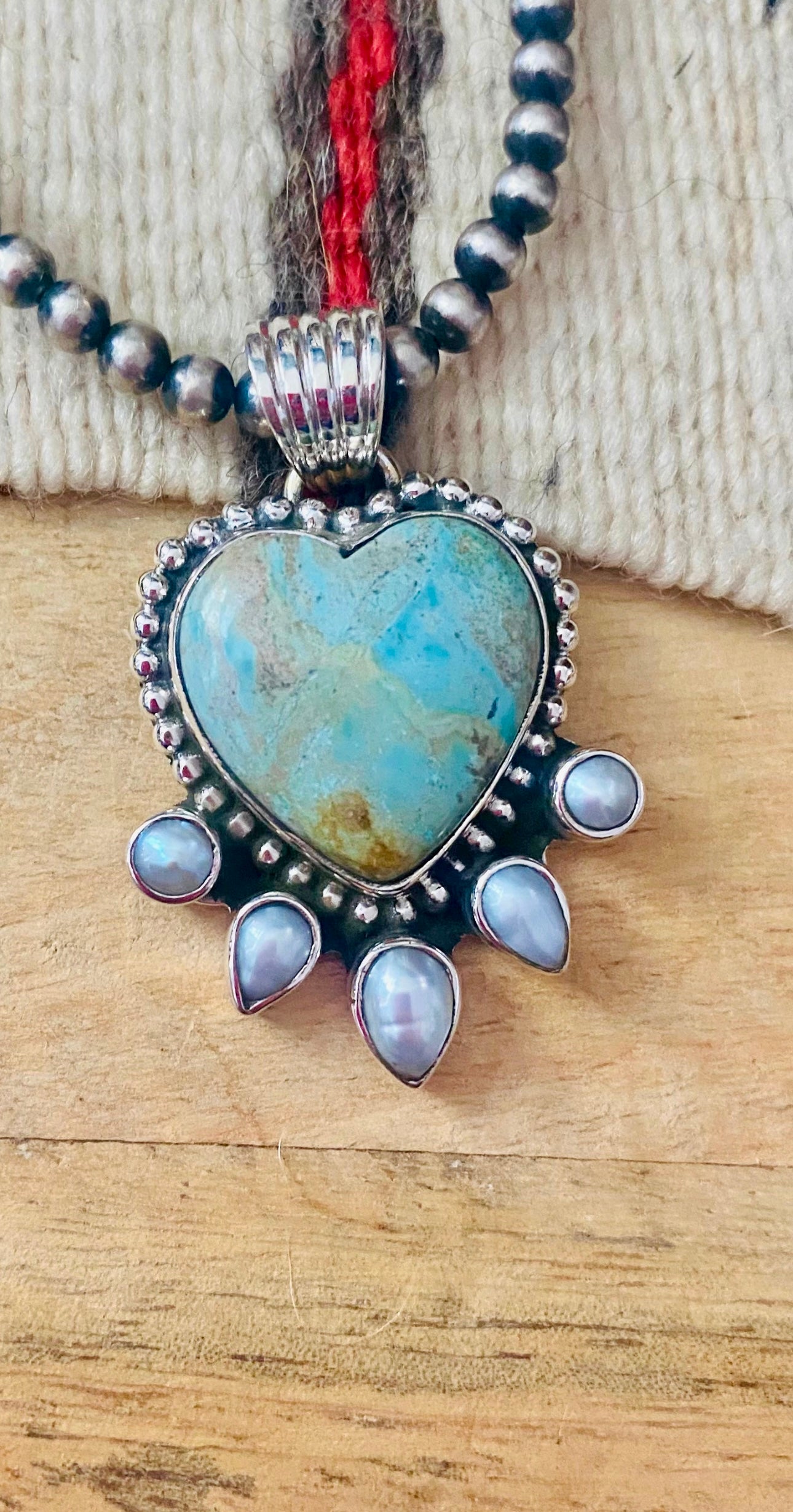 Australian Turquoise & Pearl Heart Pendant