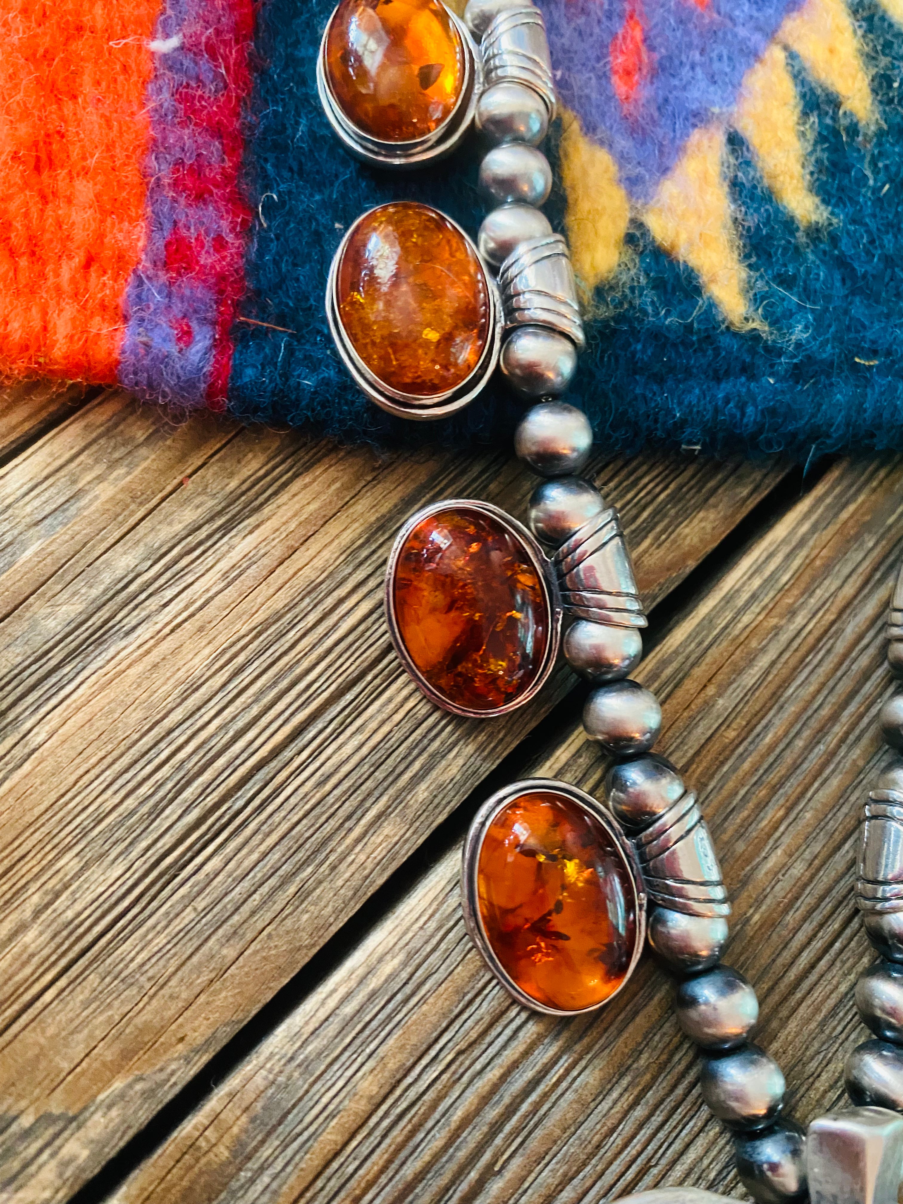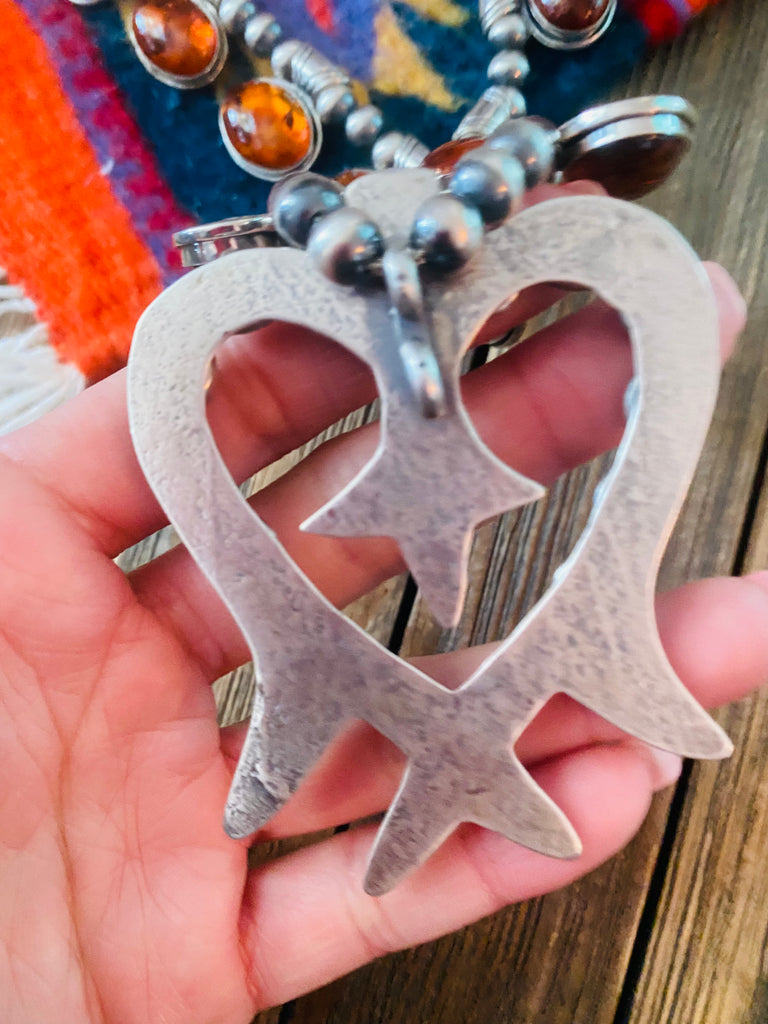 Beautiful Turquoise & Sterling Silver Squash Blossom Style Necklace