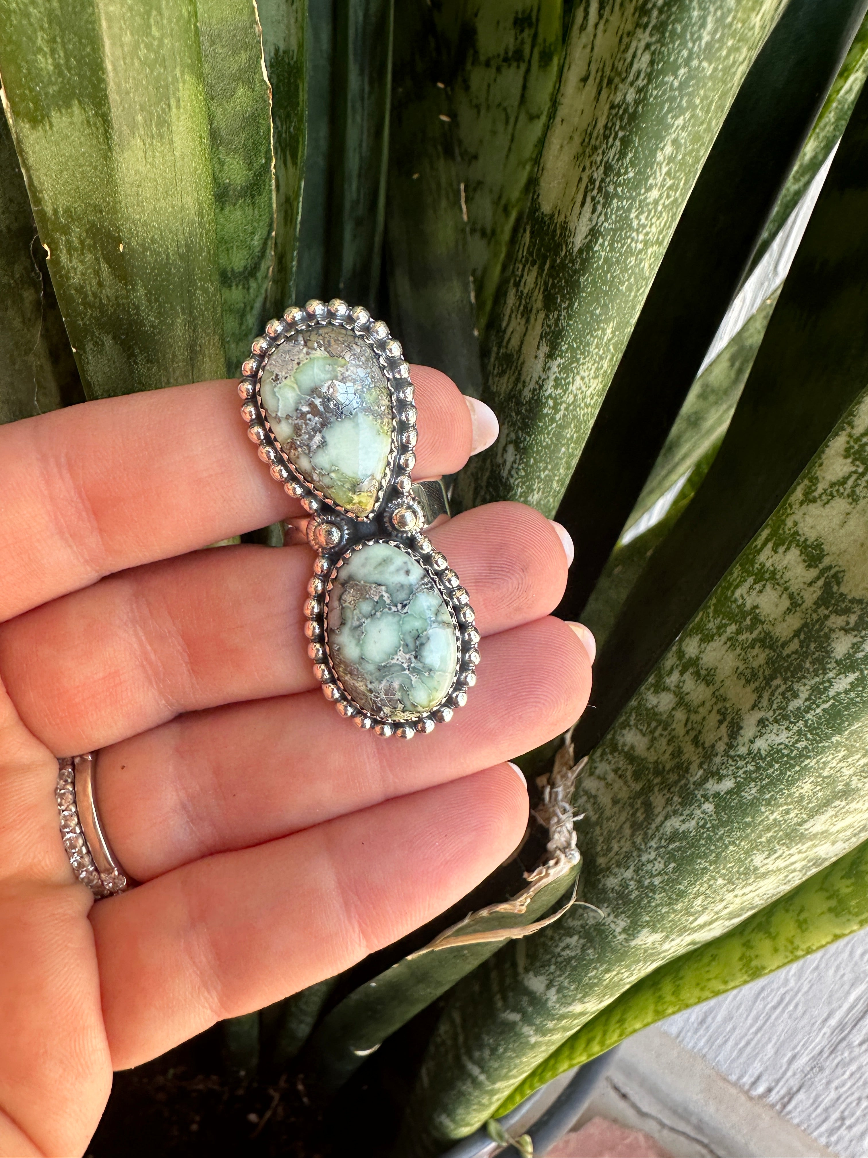 Beautiful Handmade Palomino Turquoise And Sterling Silver Adjustable Ring