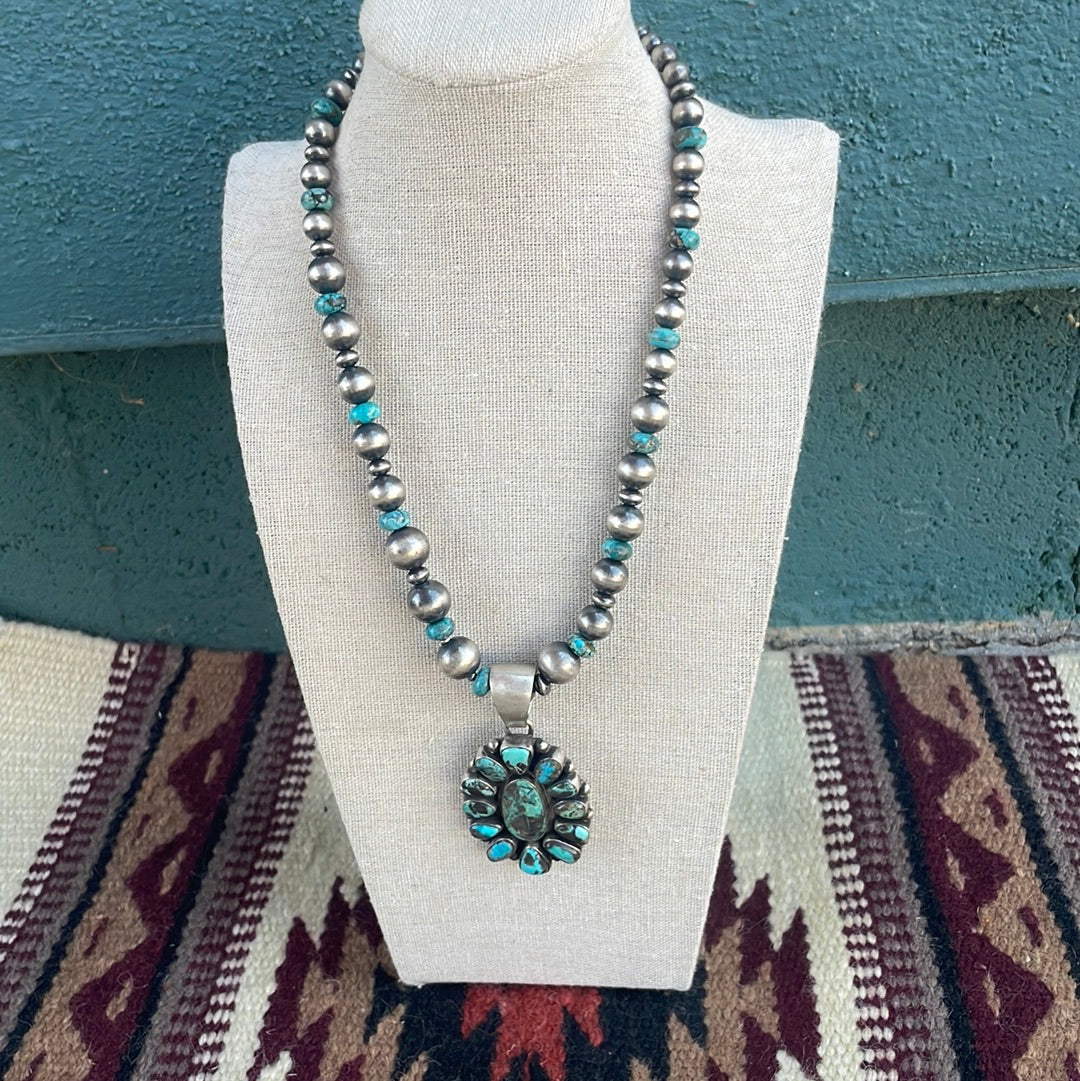 Beautiful Navajo Sterling Silver Turquoise Necklace Signed