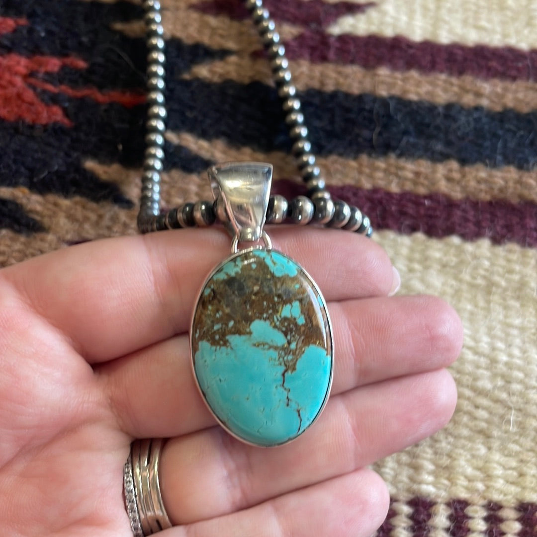 Handcrafted Sterling Silver Turquoise Pendant Signed