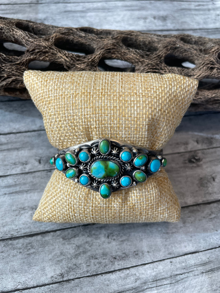 Beautiful Navajo Sterling Sonoran Mountain Turquoise Adjustable Bracelet Cuff /