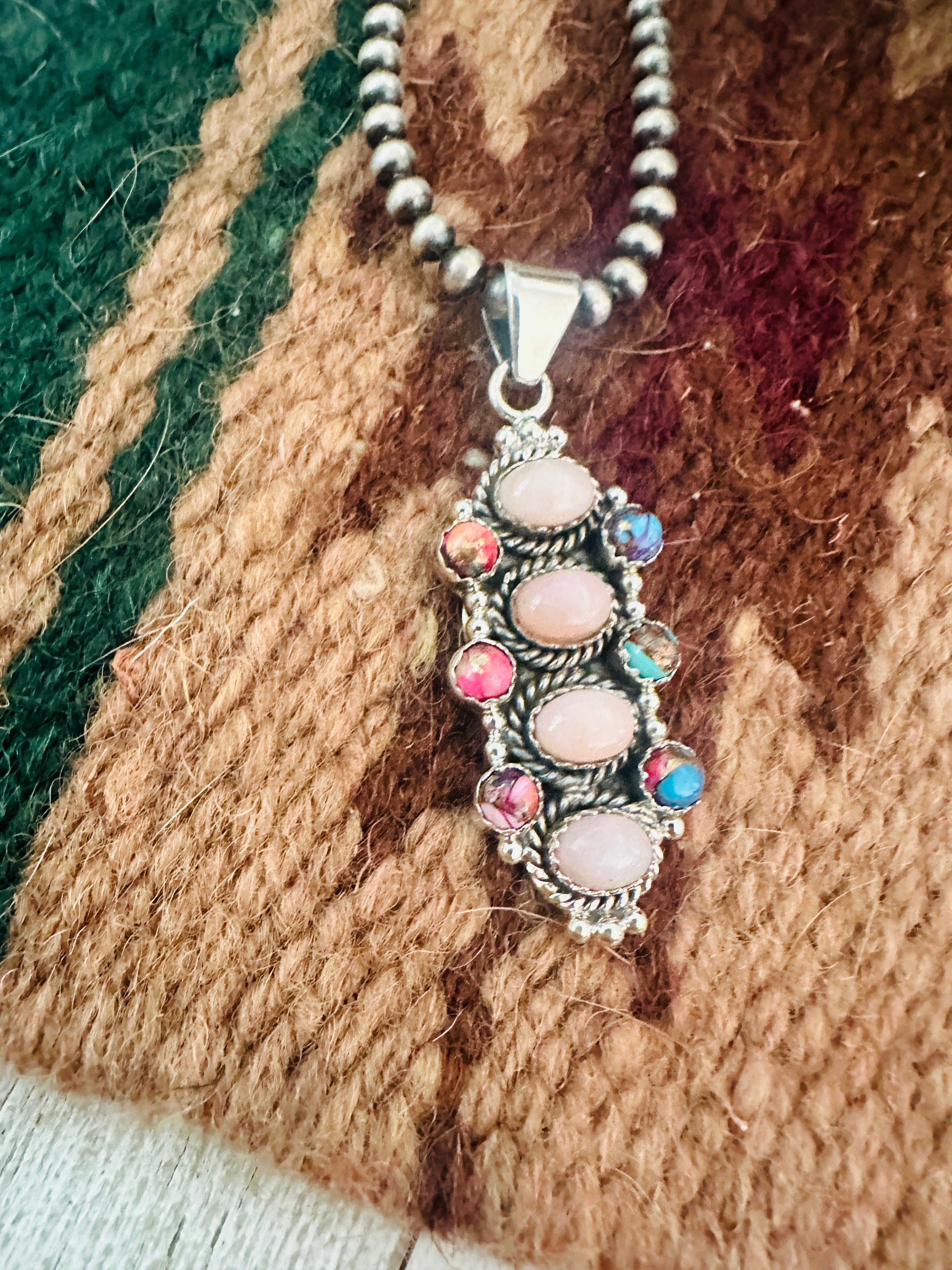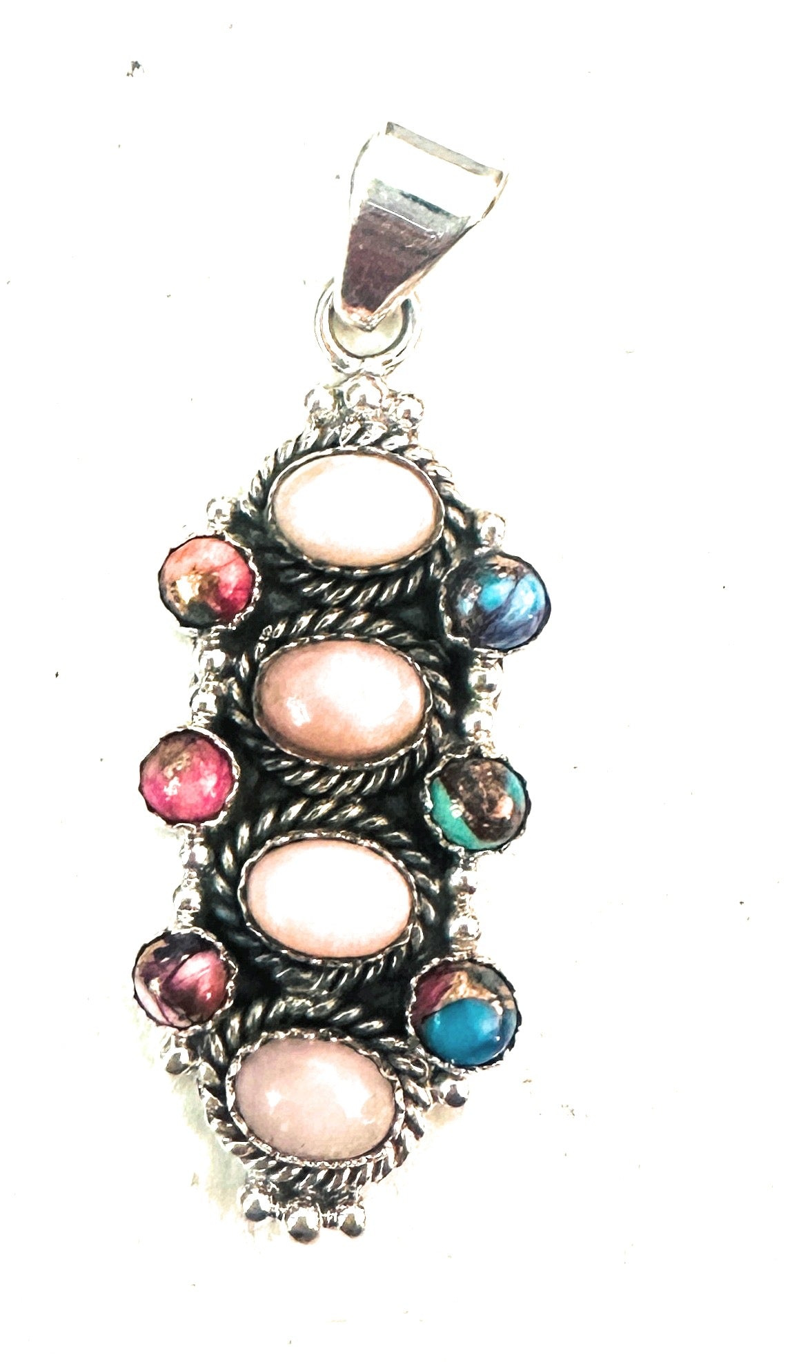 Gorgeous Sterling Silver, Queen Pink Conch Shell, Pink Dream Mojave Pendant. Great for your favorite beads or chain. Measuring 2 inches long (including bale) and 3/4 of an inch wide. Bale measures under 1/4 of an inch across. Stamped Sterling and signed Nizhoni. Pendant only.