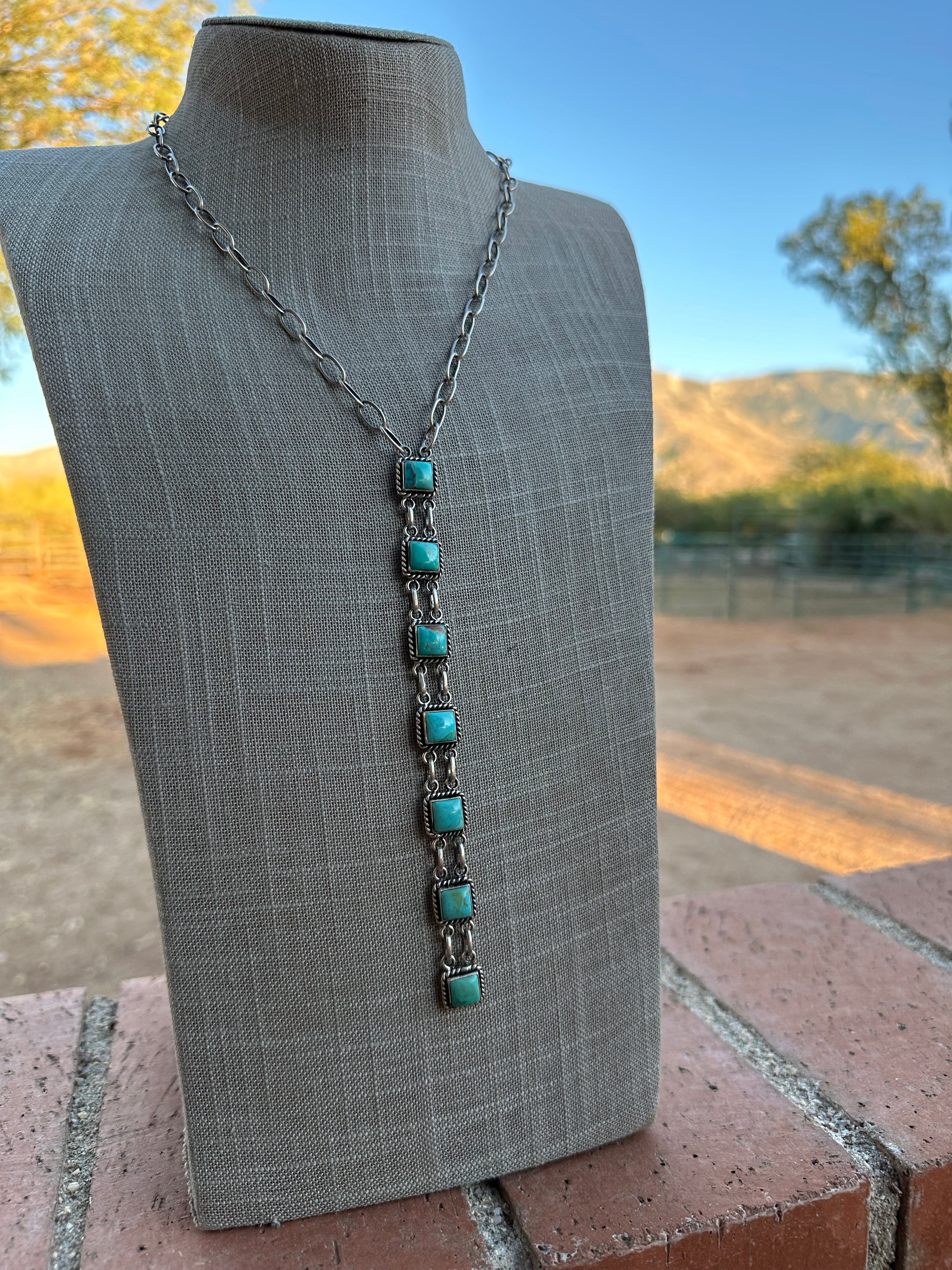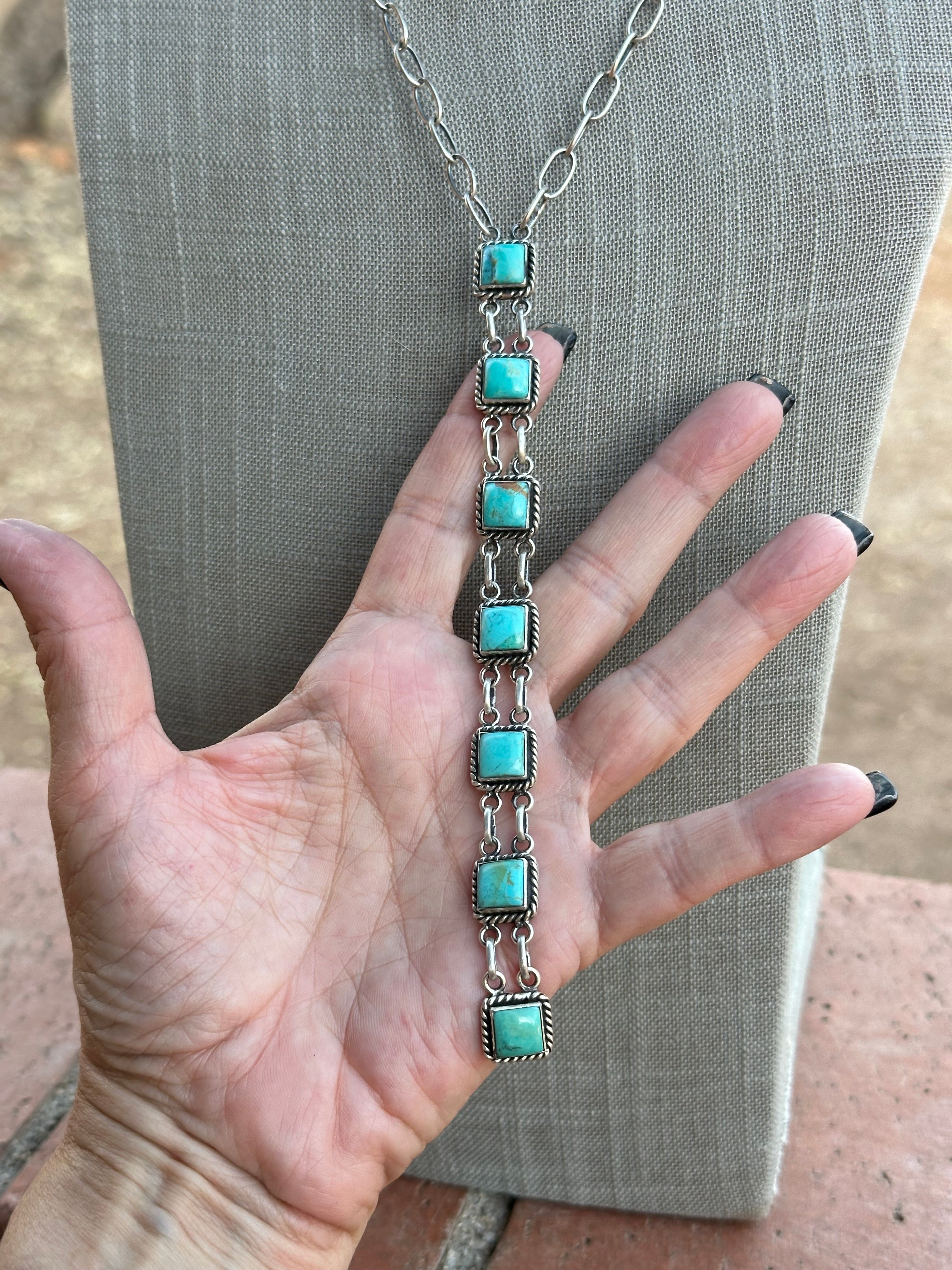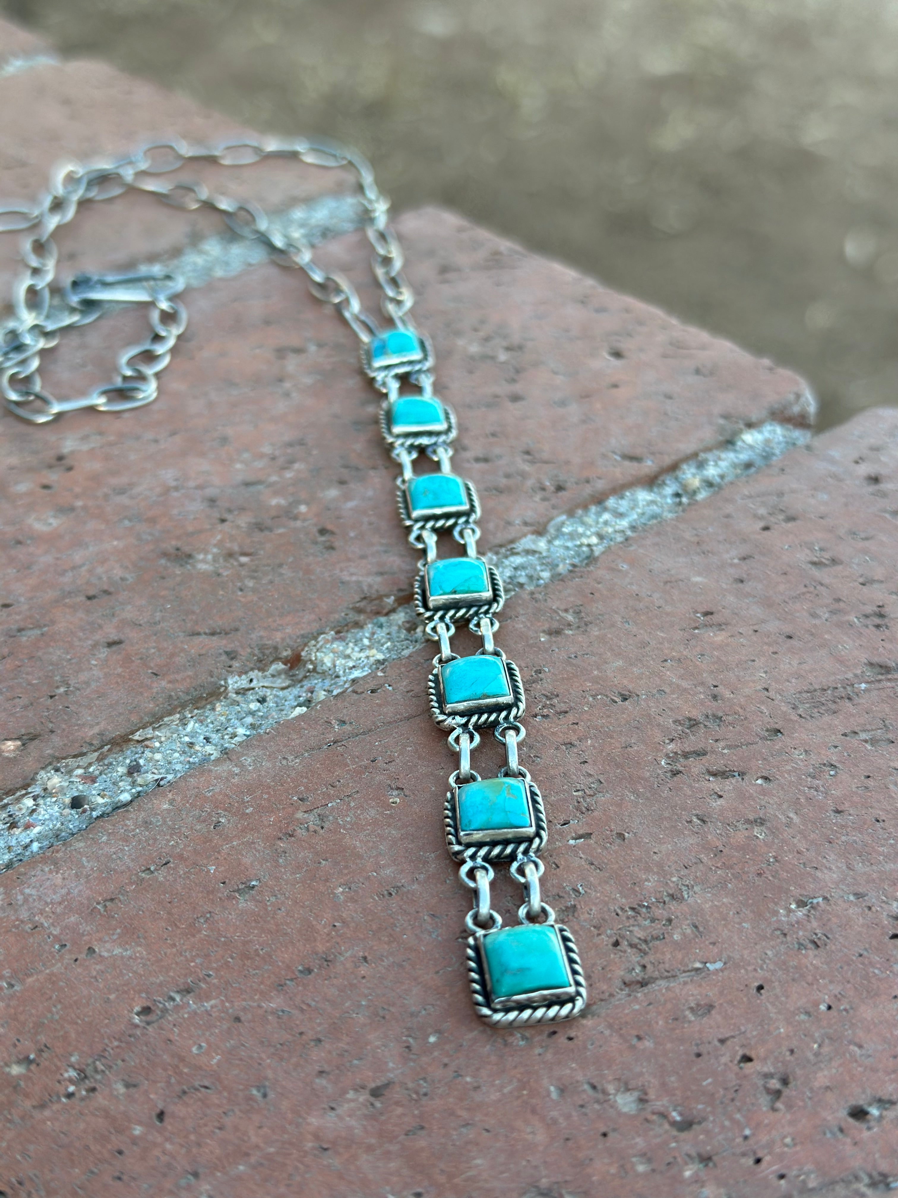 Handmade Royston Turquoise & Sterling Silver Bolo Drop Necklace