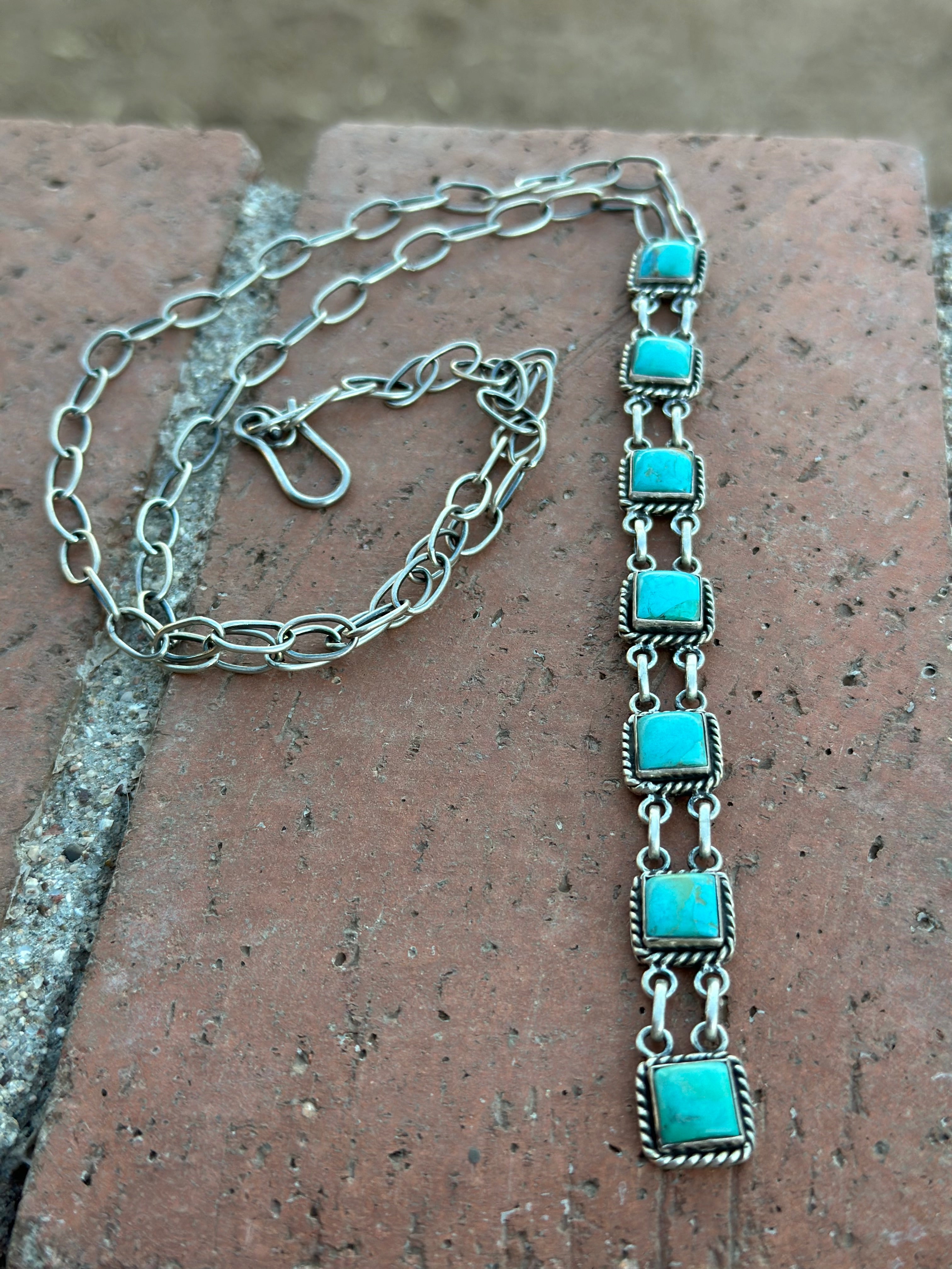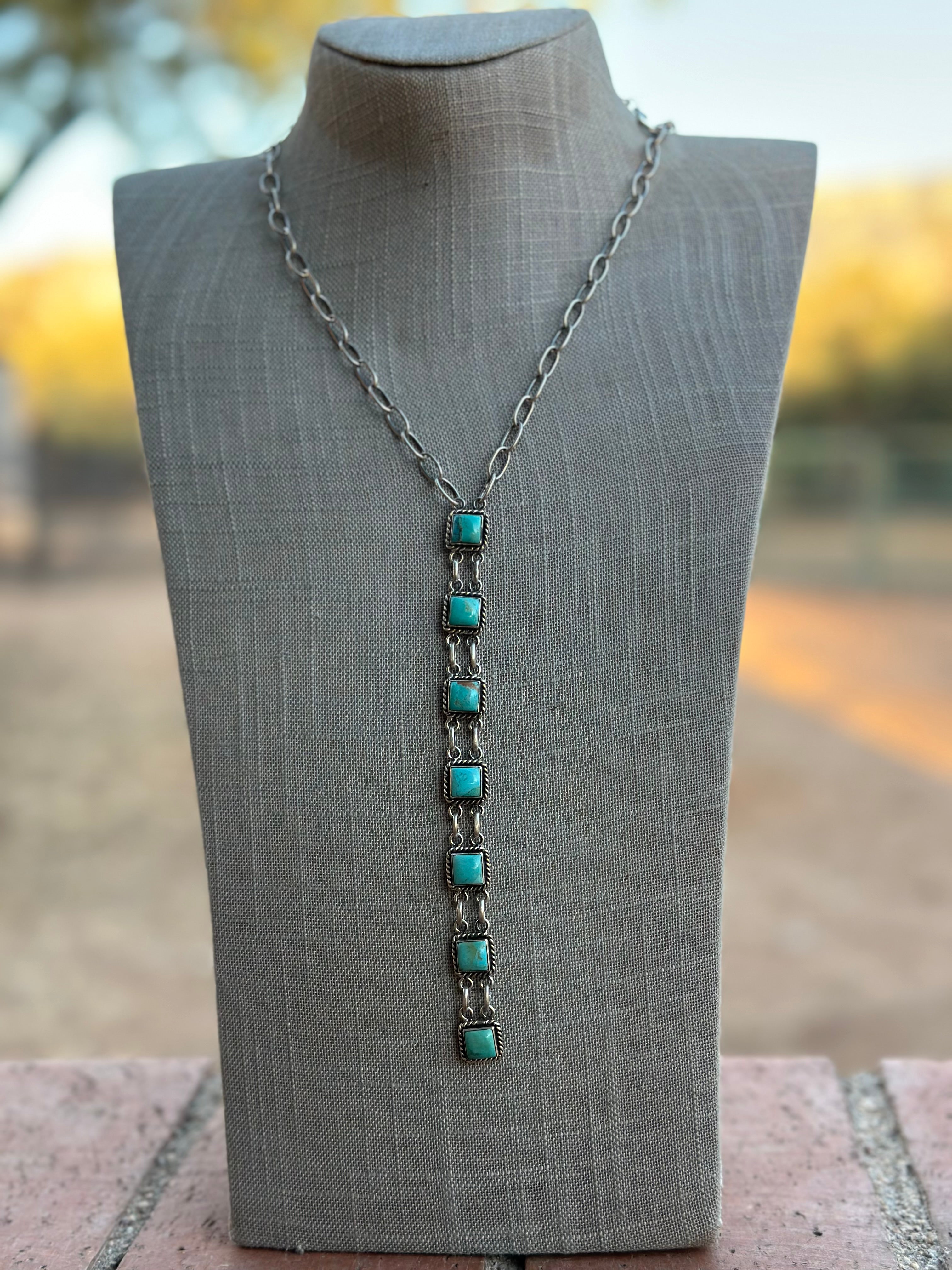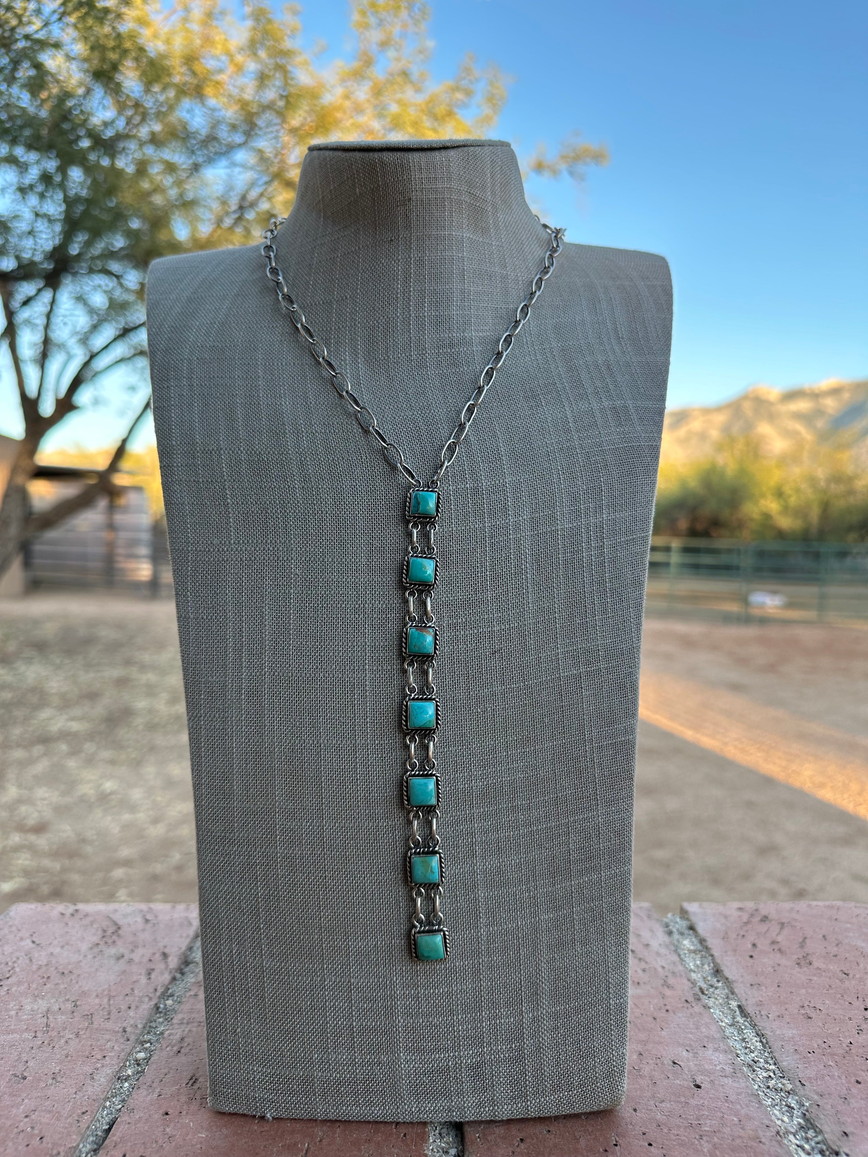 Handmade Royston Turquoise & Sterling Silver Bolo Drop Necklace