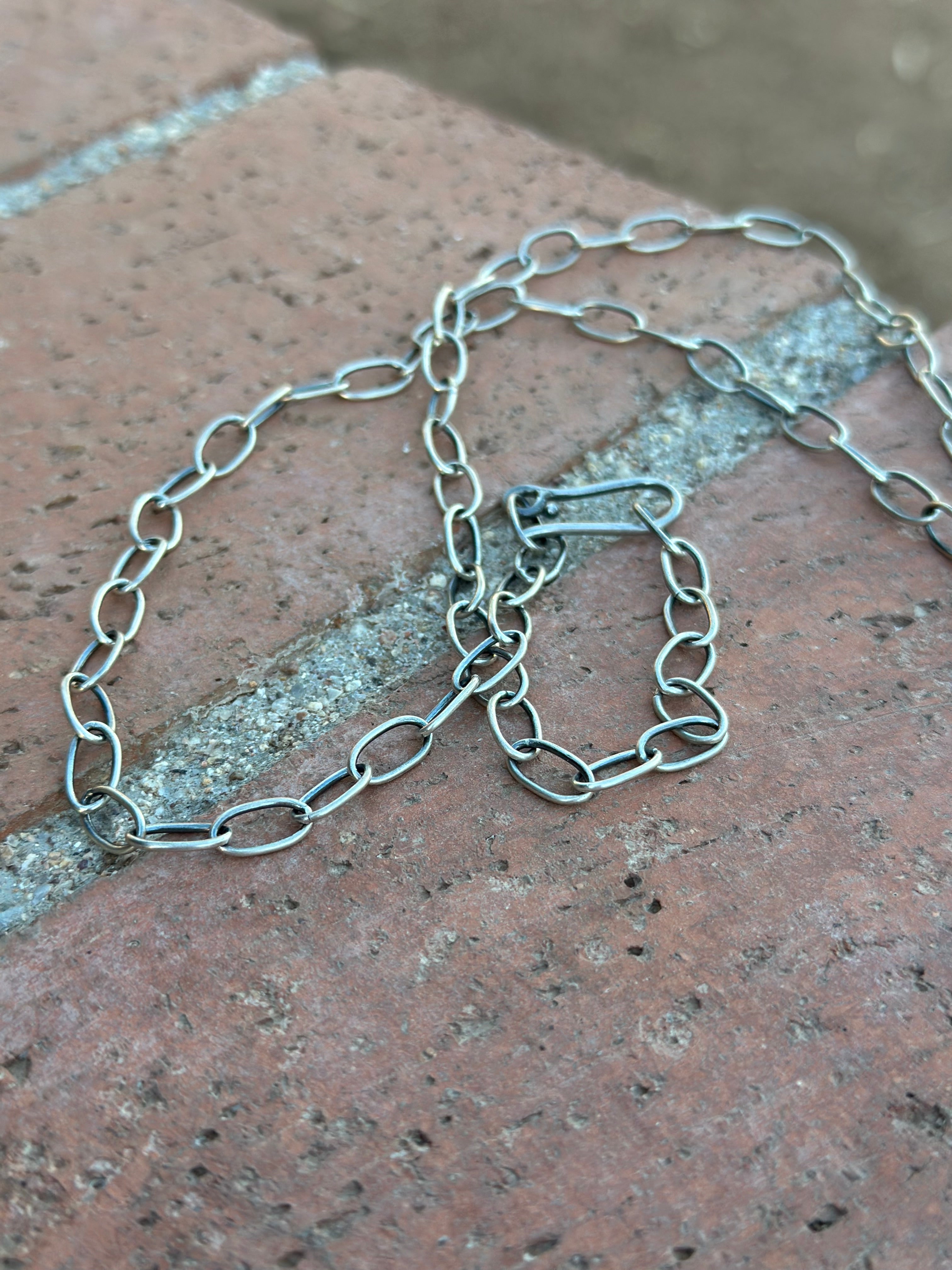 Such a unique piece! Necklace measures 22 inches long with an additional 6 inches long for the drop.
