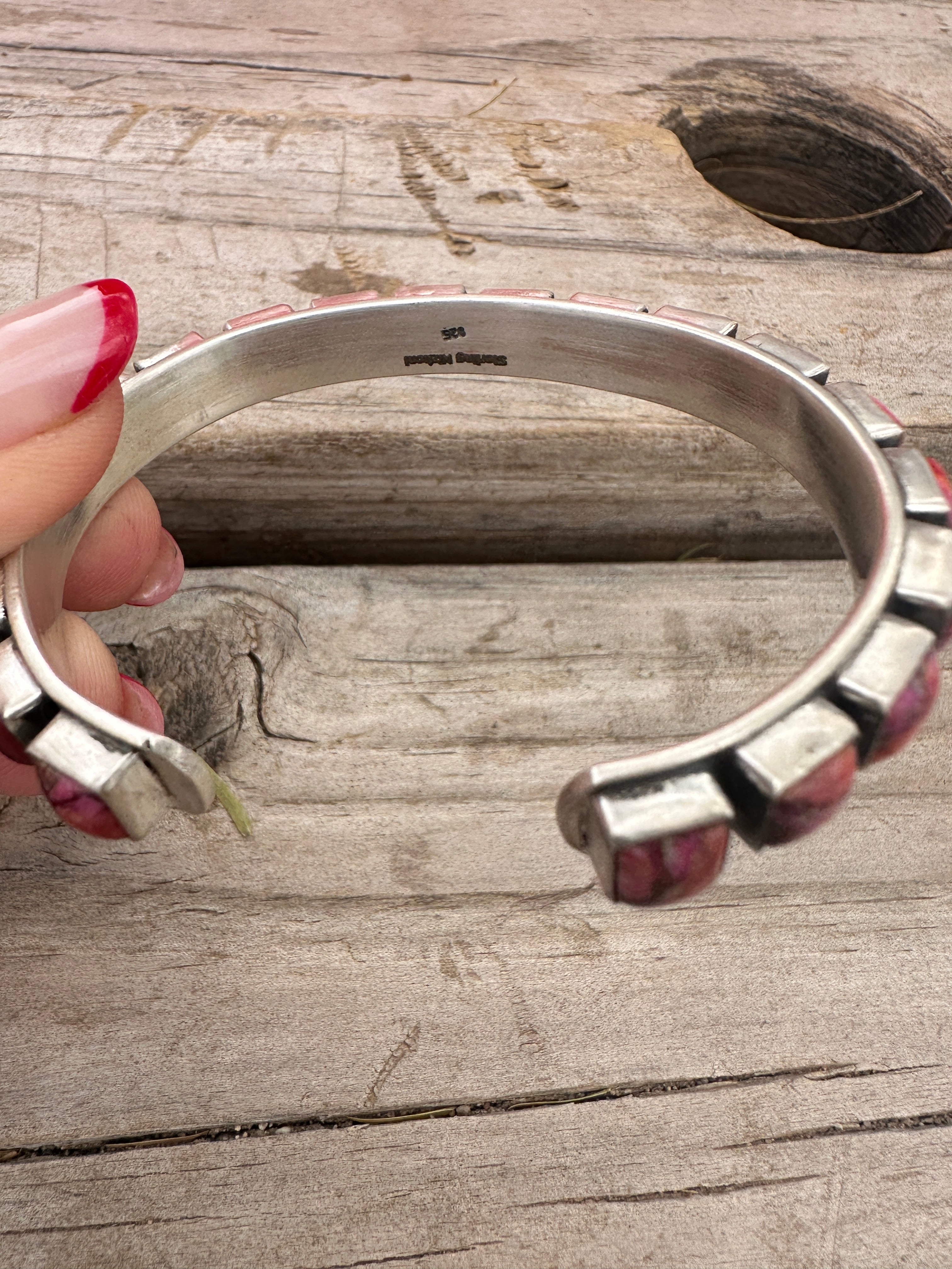 Handmade Sterling Silver & Pink Dream Mojave Adjustable Cuff Bracelet