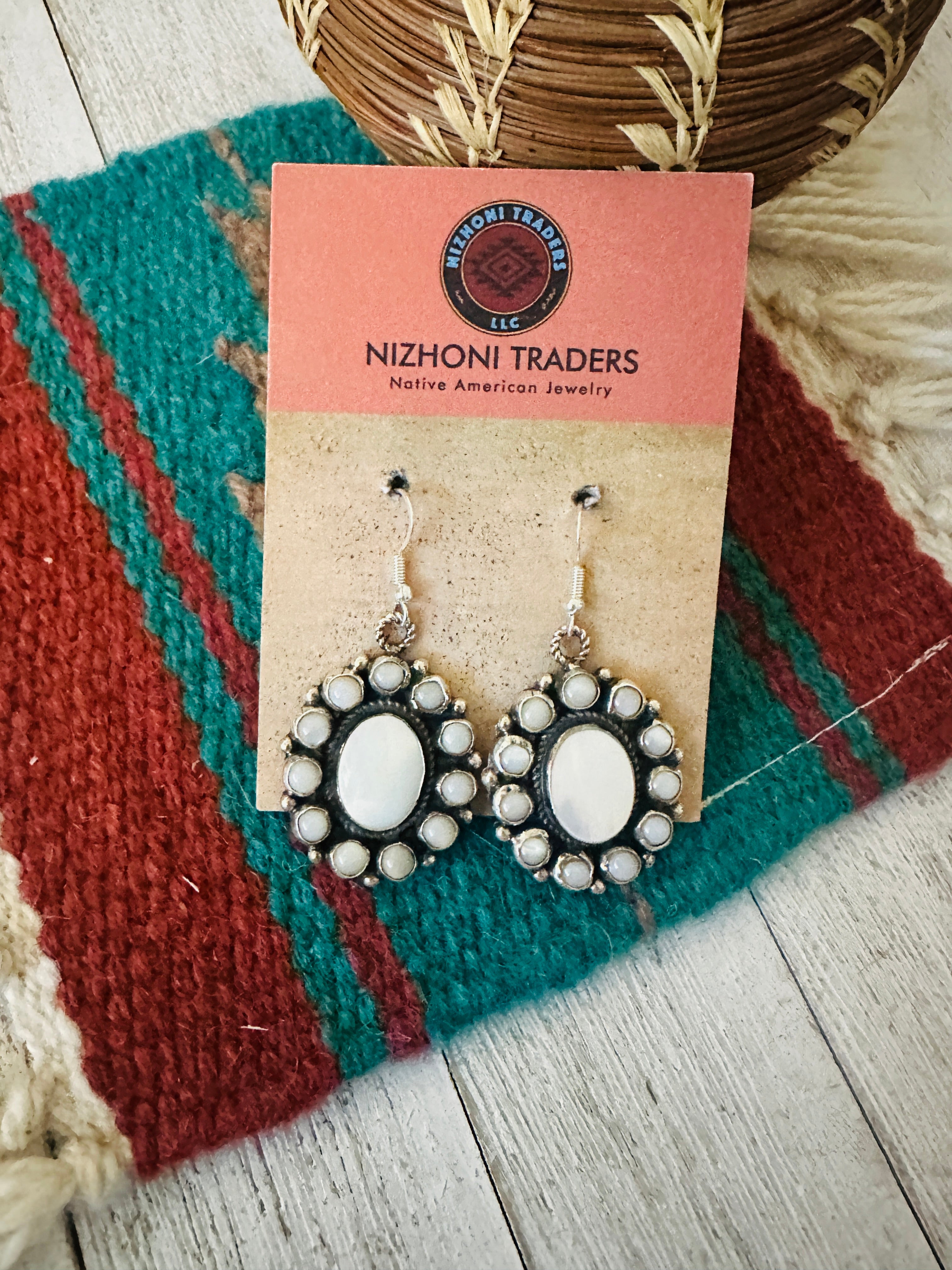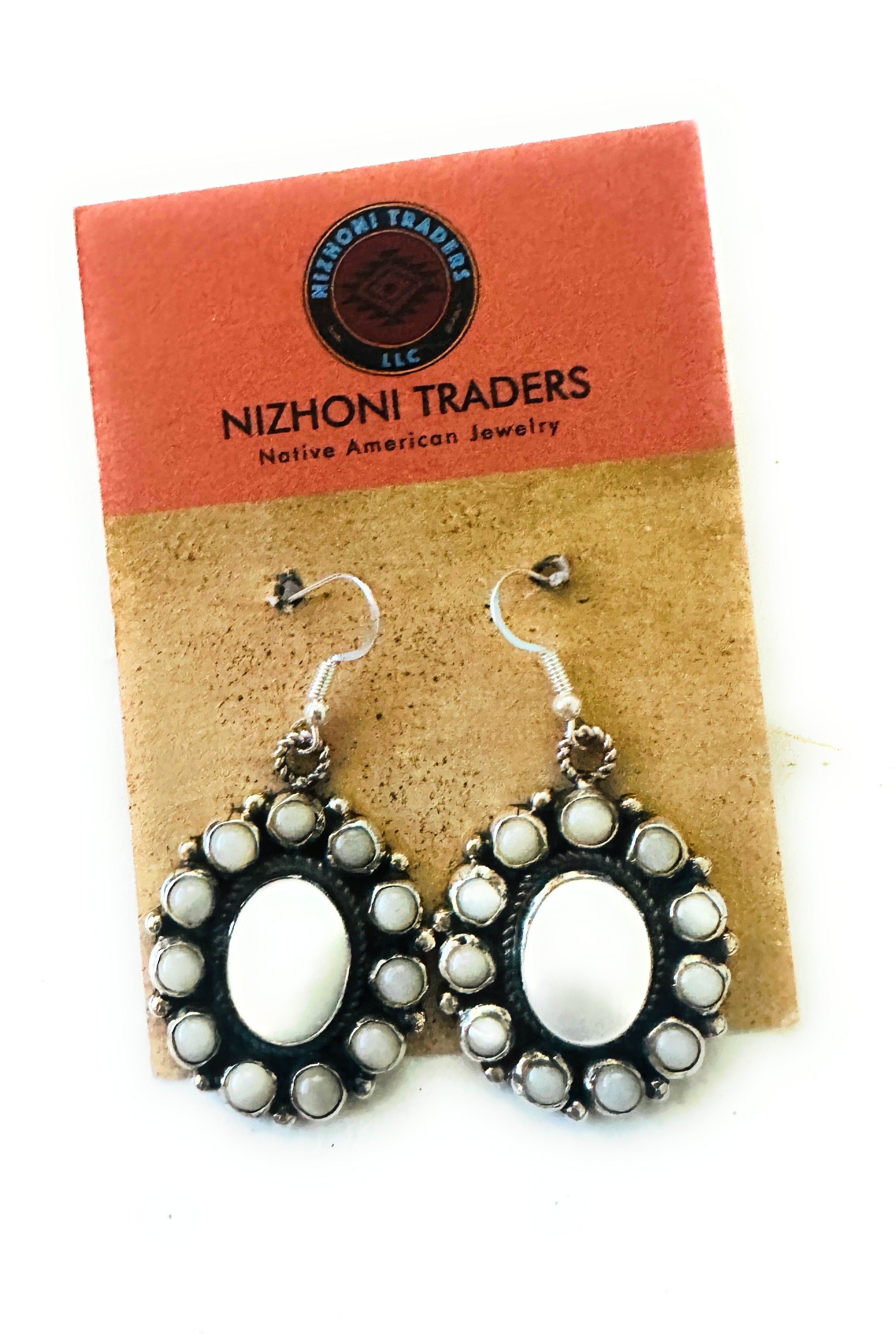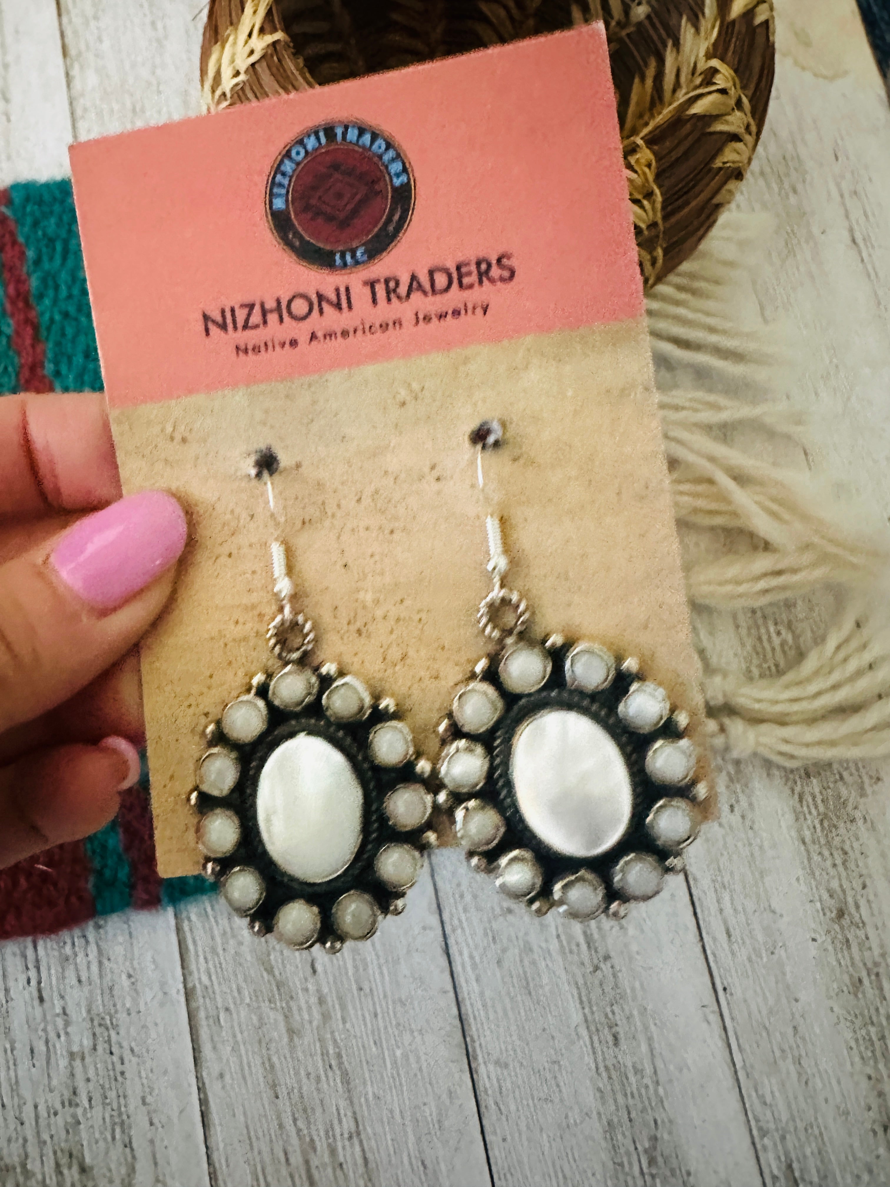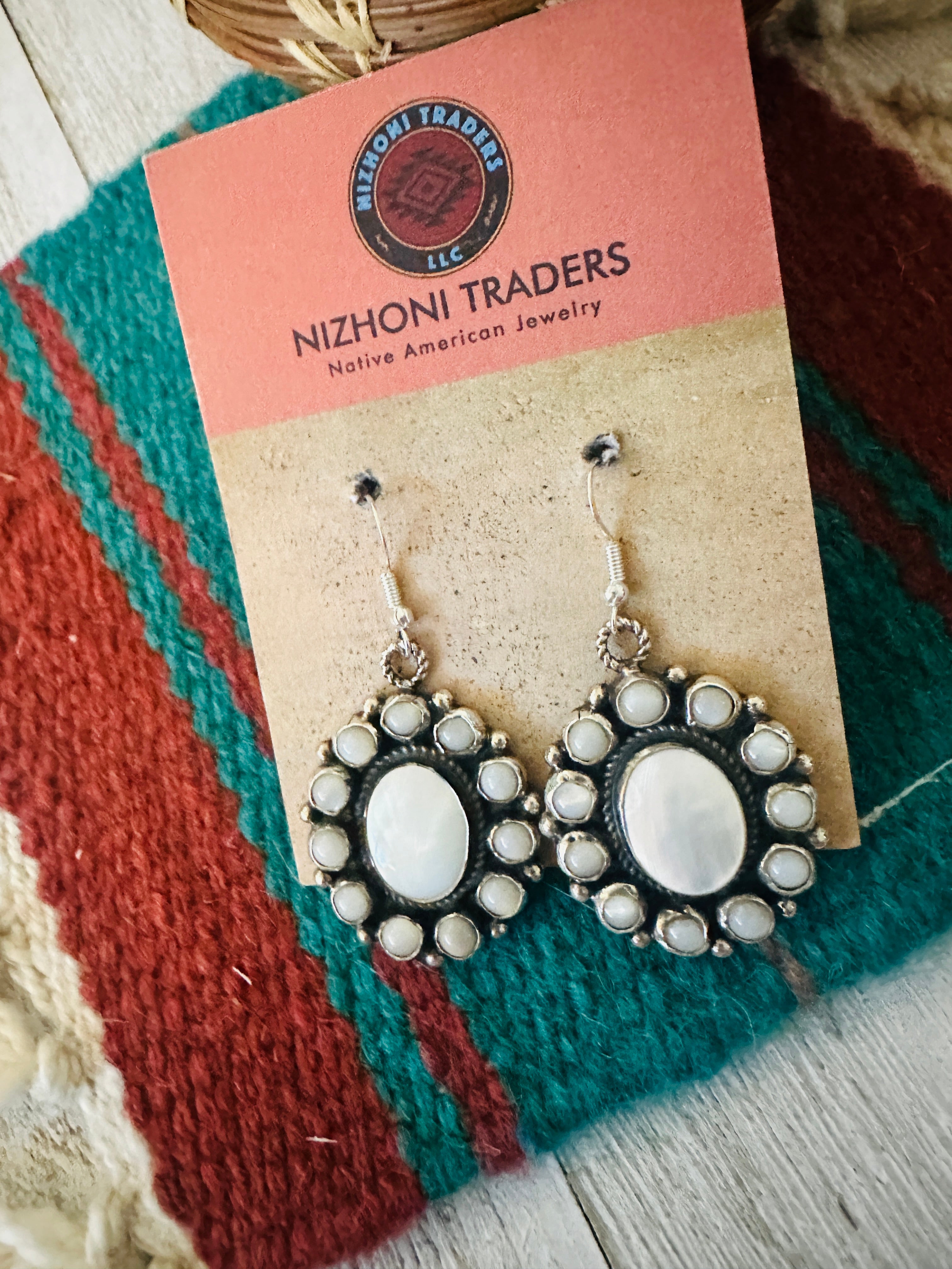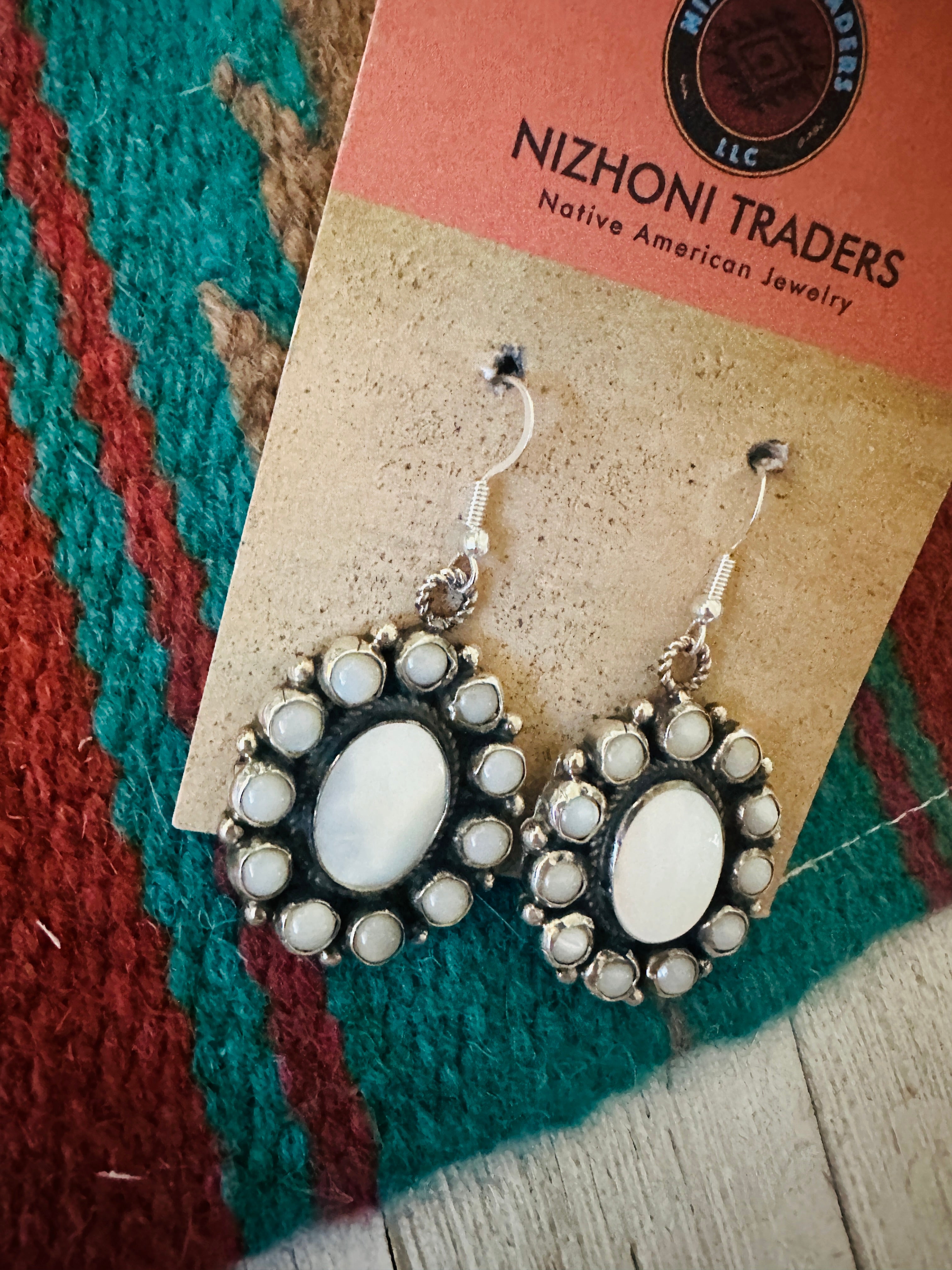Navajo Mother of Pearl & Sterling Silver Cluster Dangle Earrings