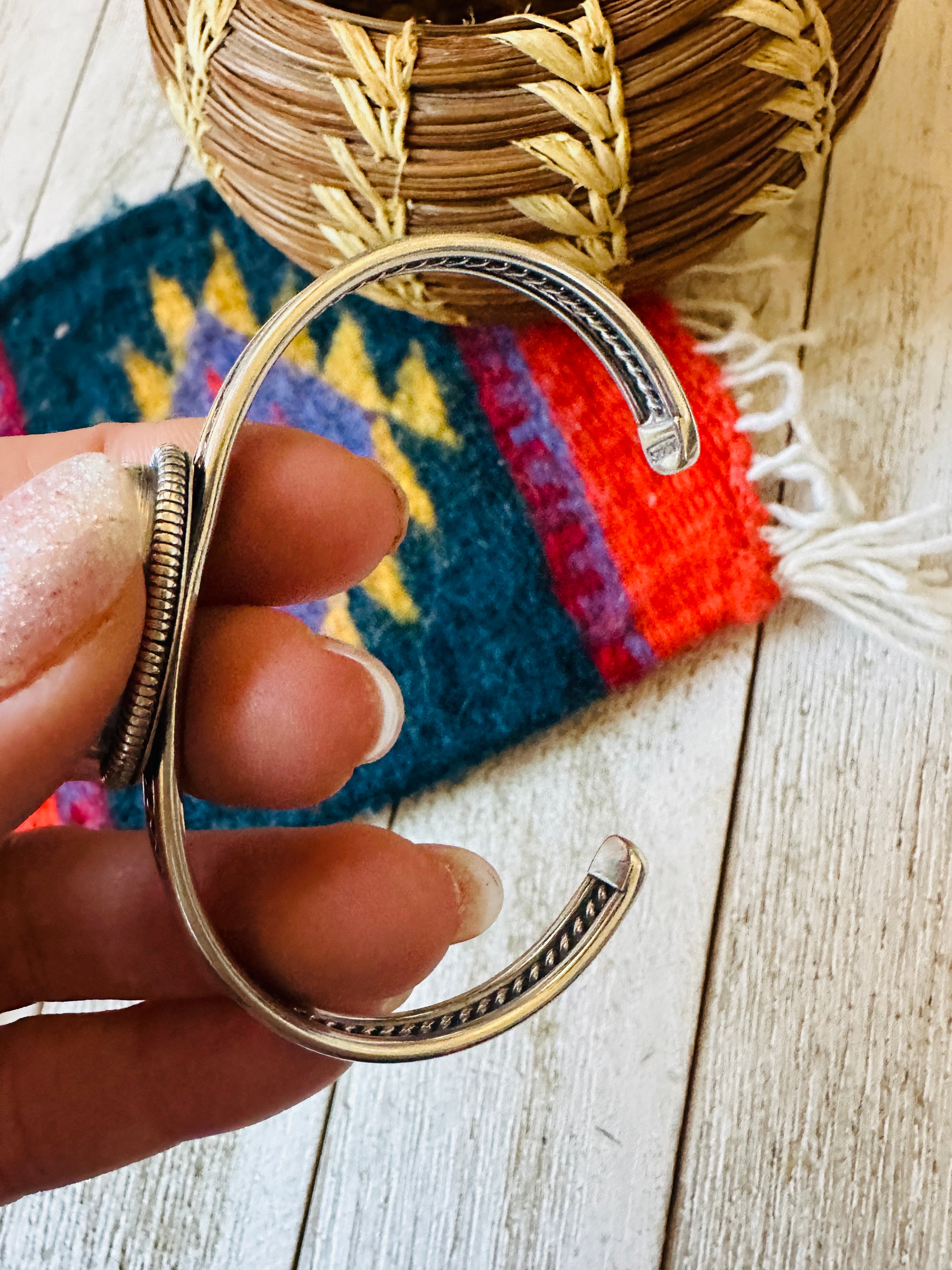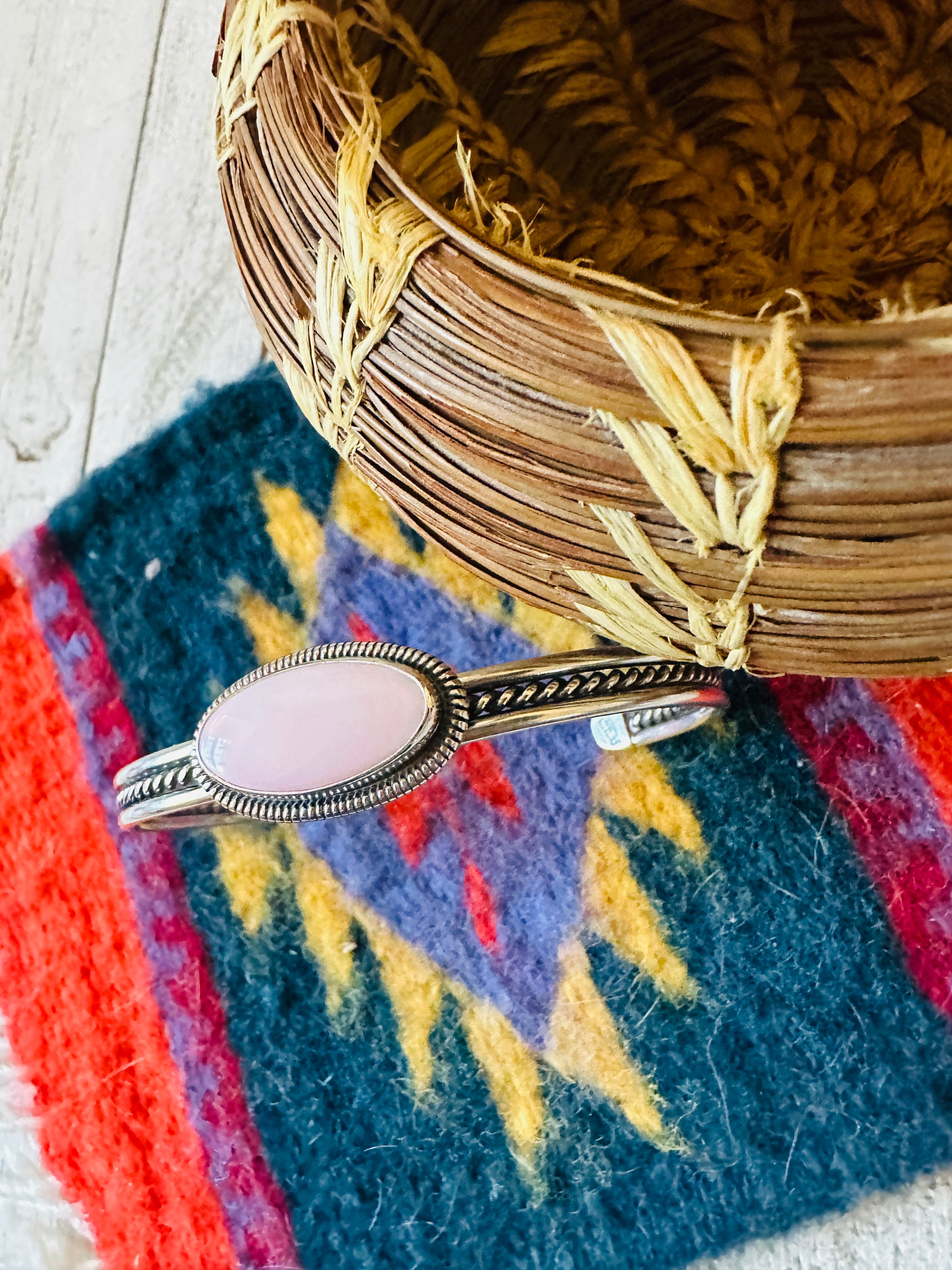 Handcrafted Queen Pink Conch Shell & Sterling Silver Cuff Bracelet