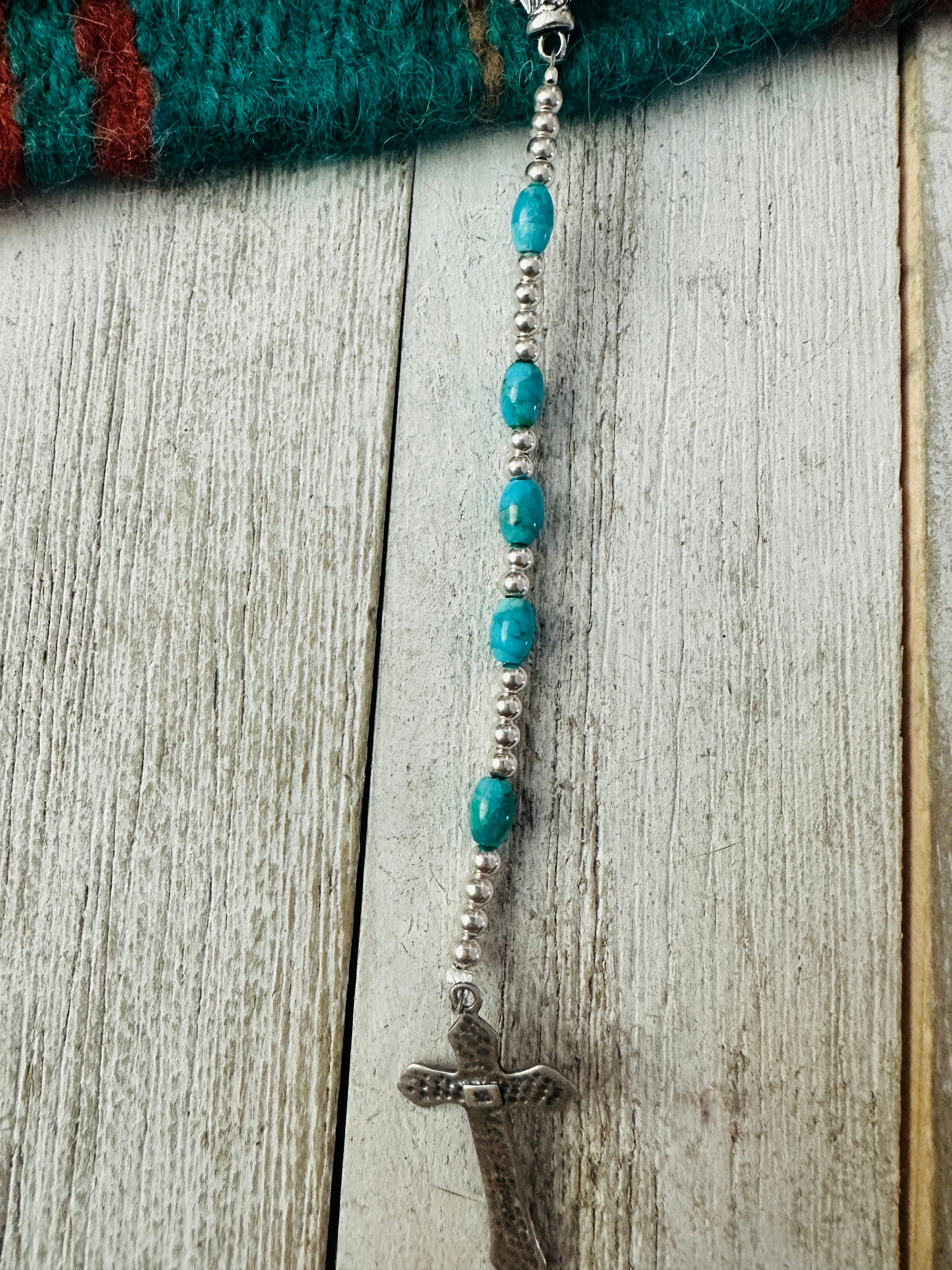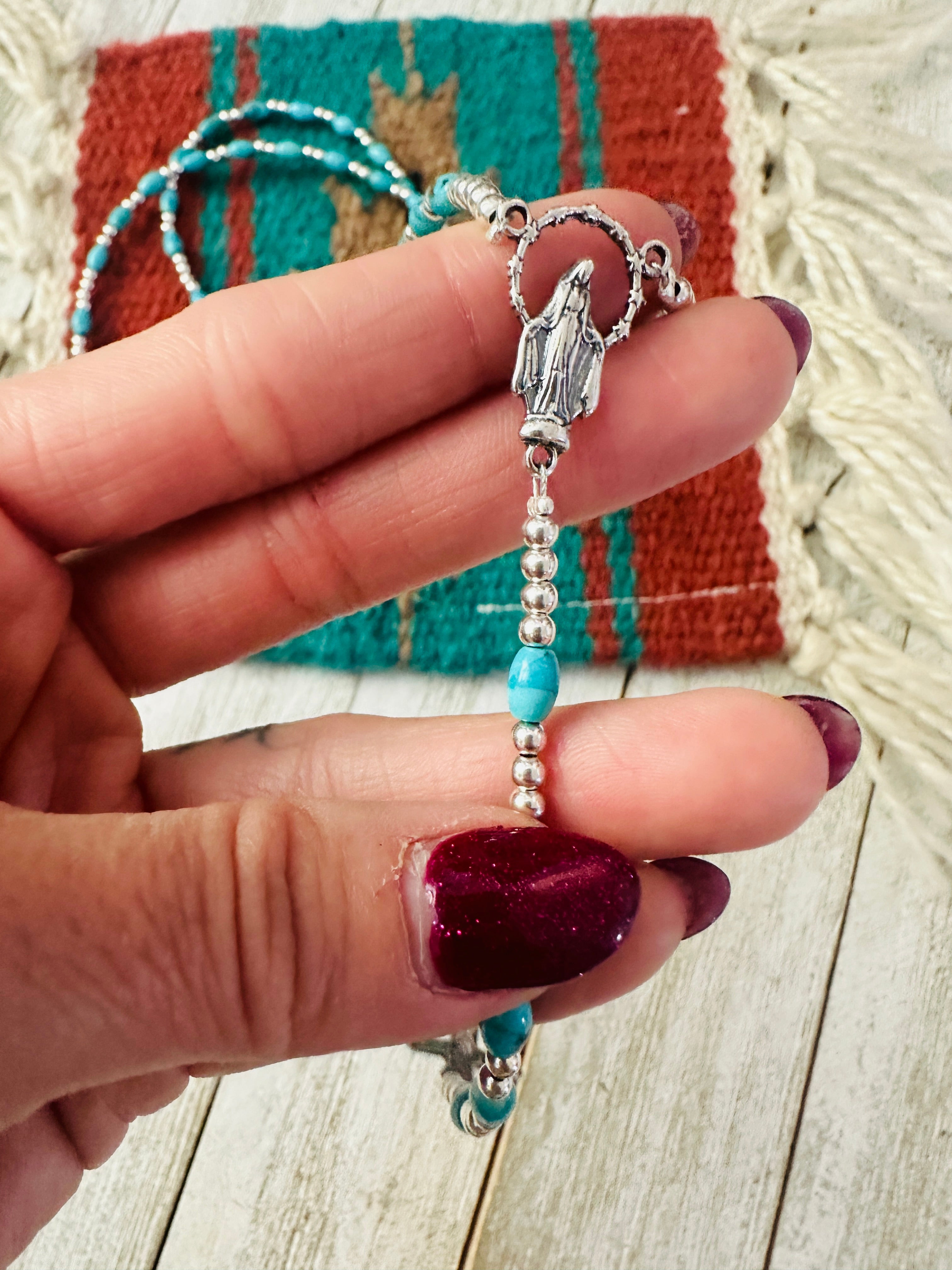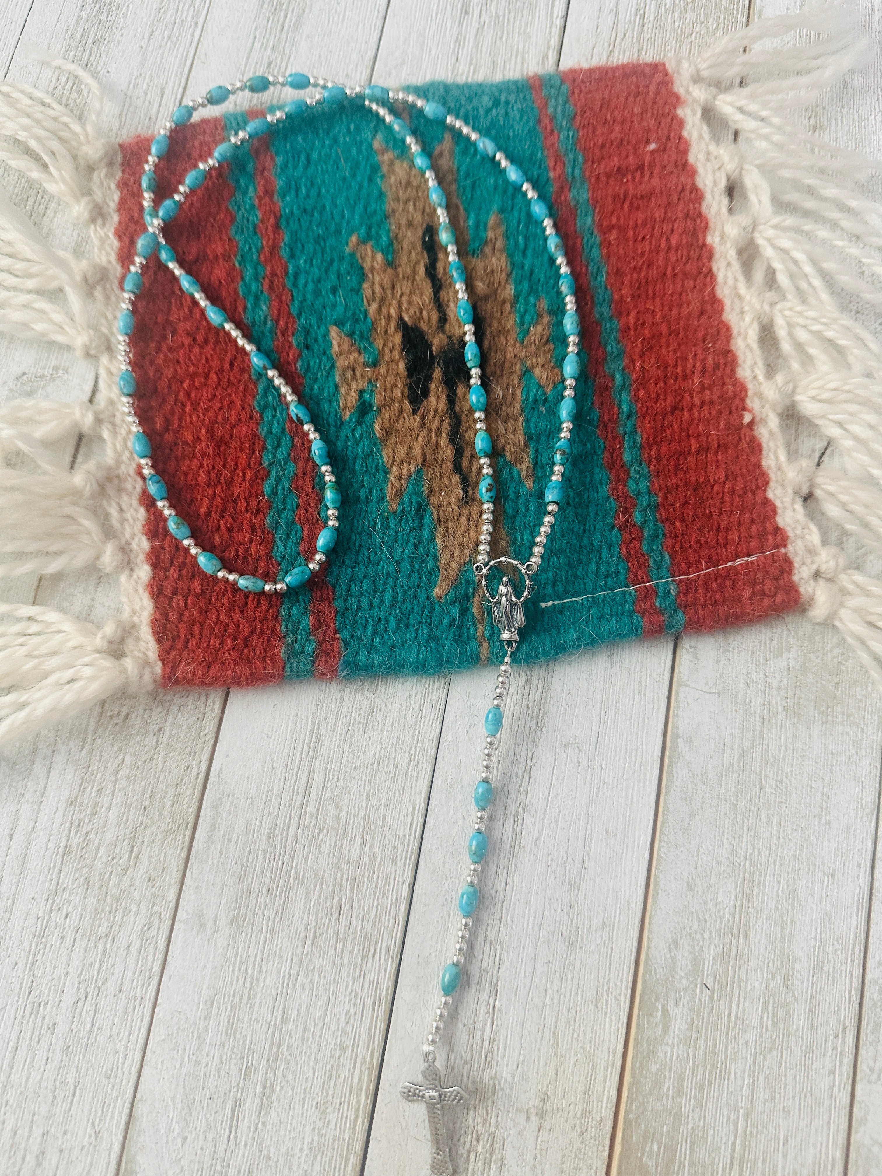 Handcrafted Turquoise & Sterling Silver Beaded Rosary Necklace