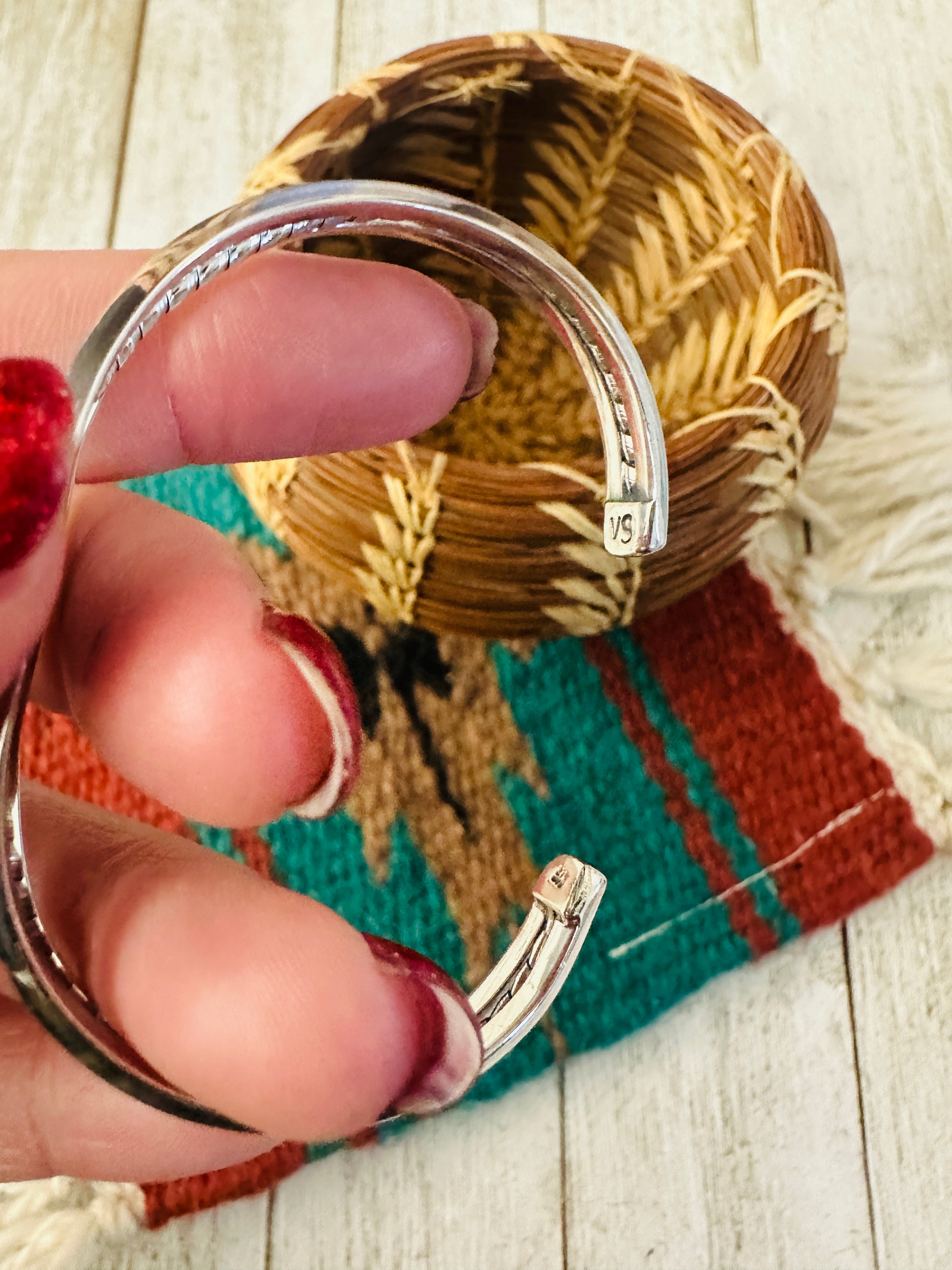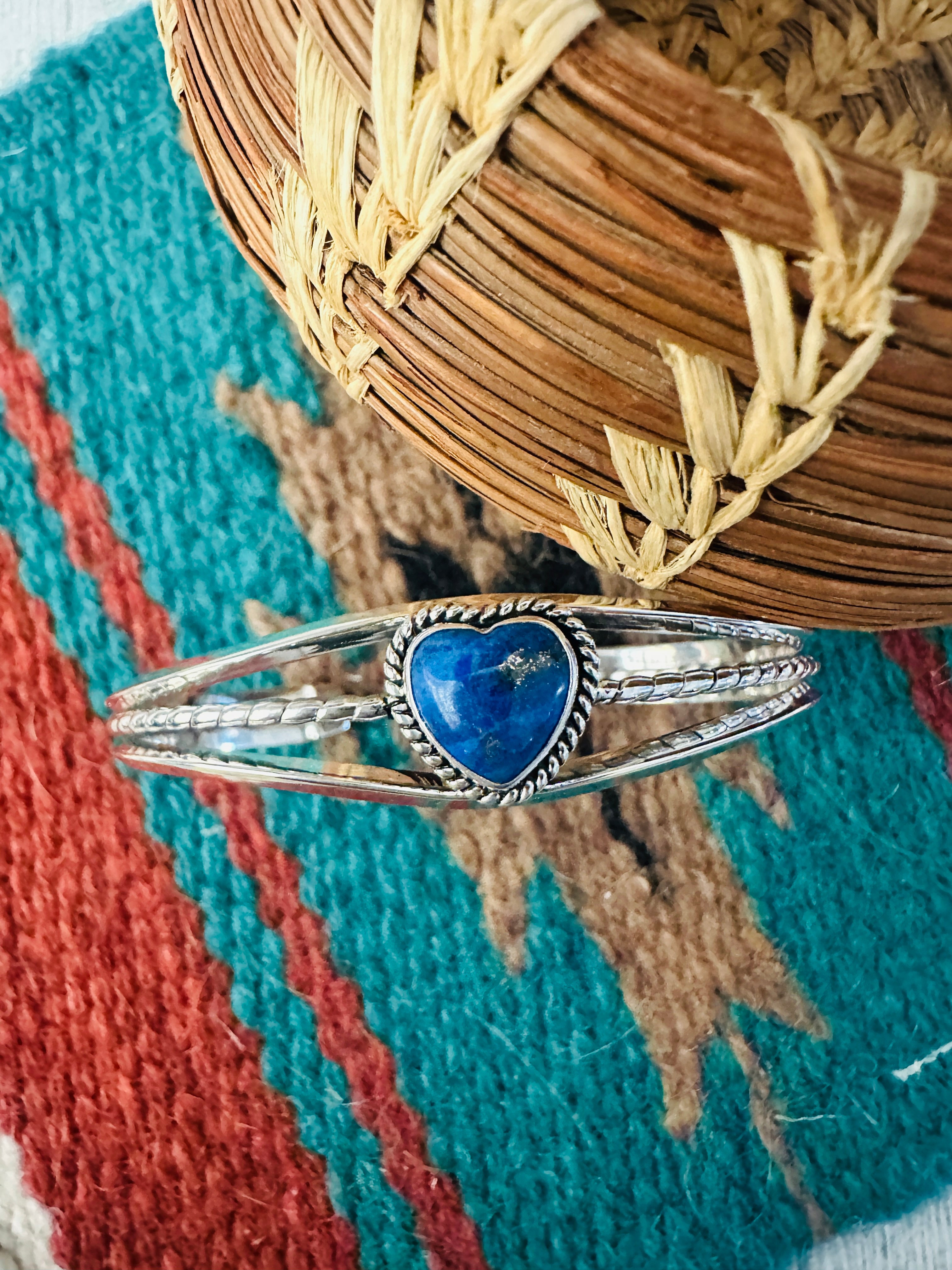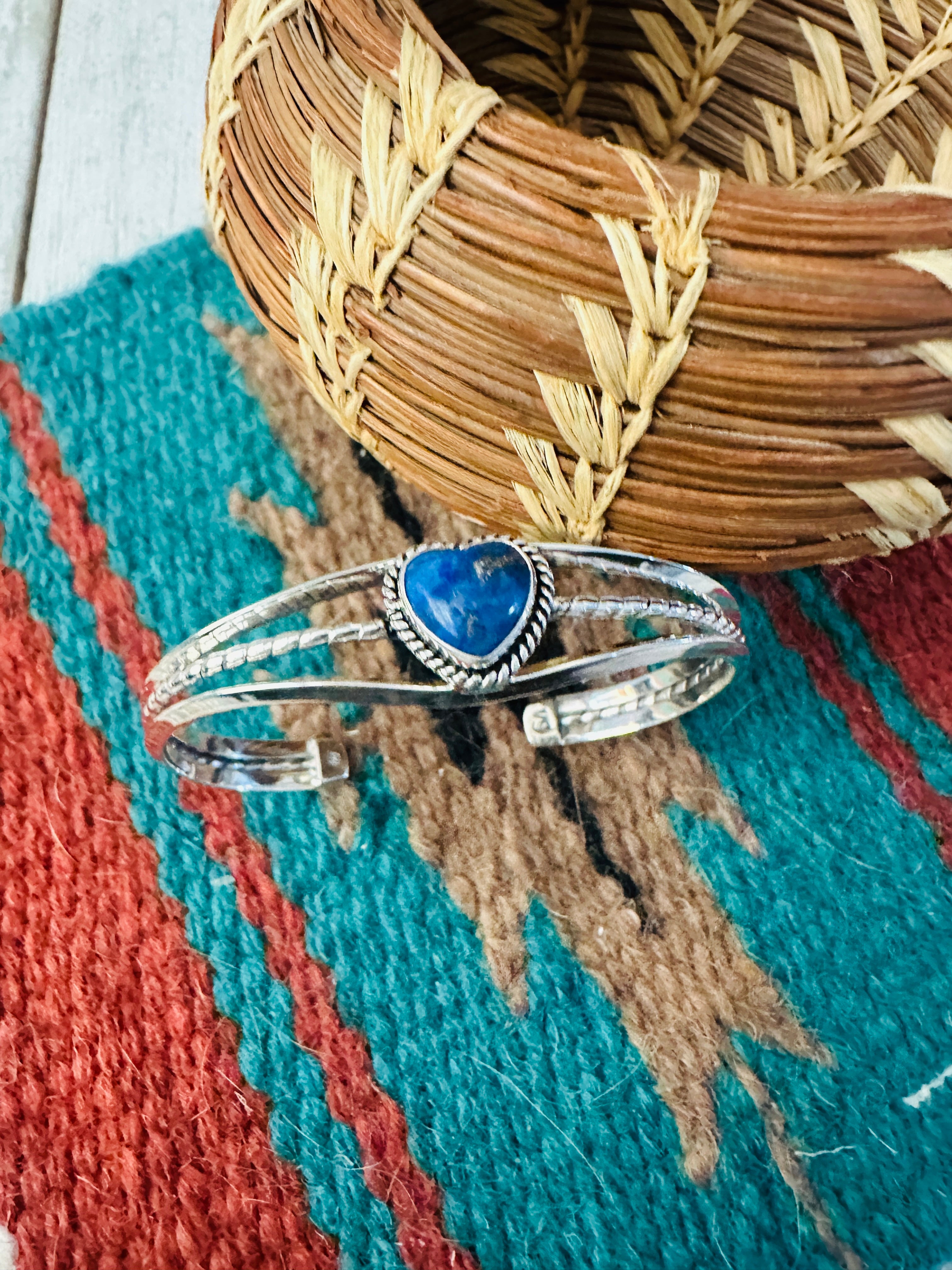 Navajo Sterling Silver & Lapis Heart Cuff Bracelet