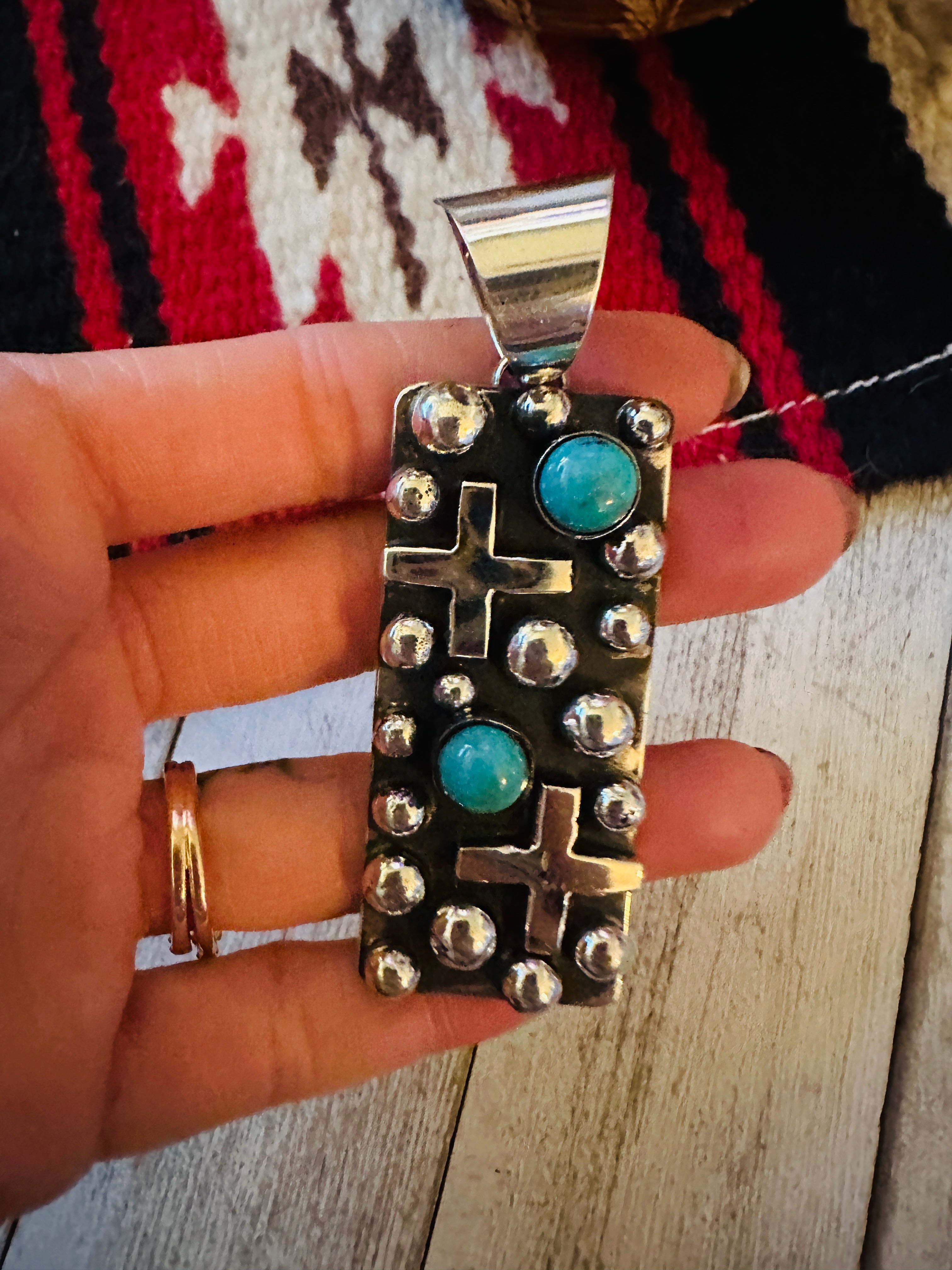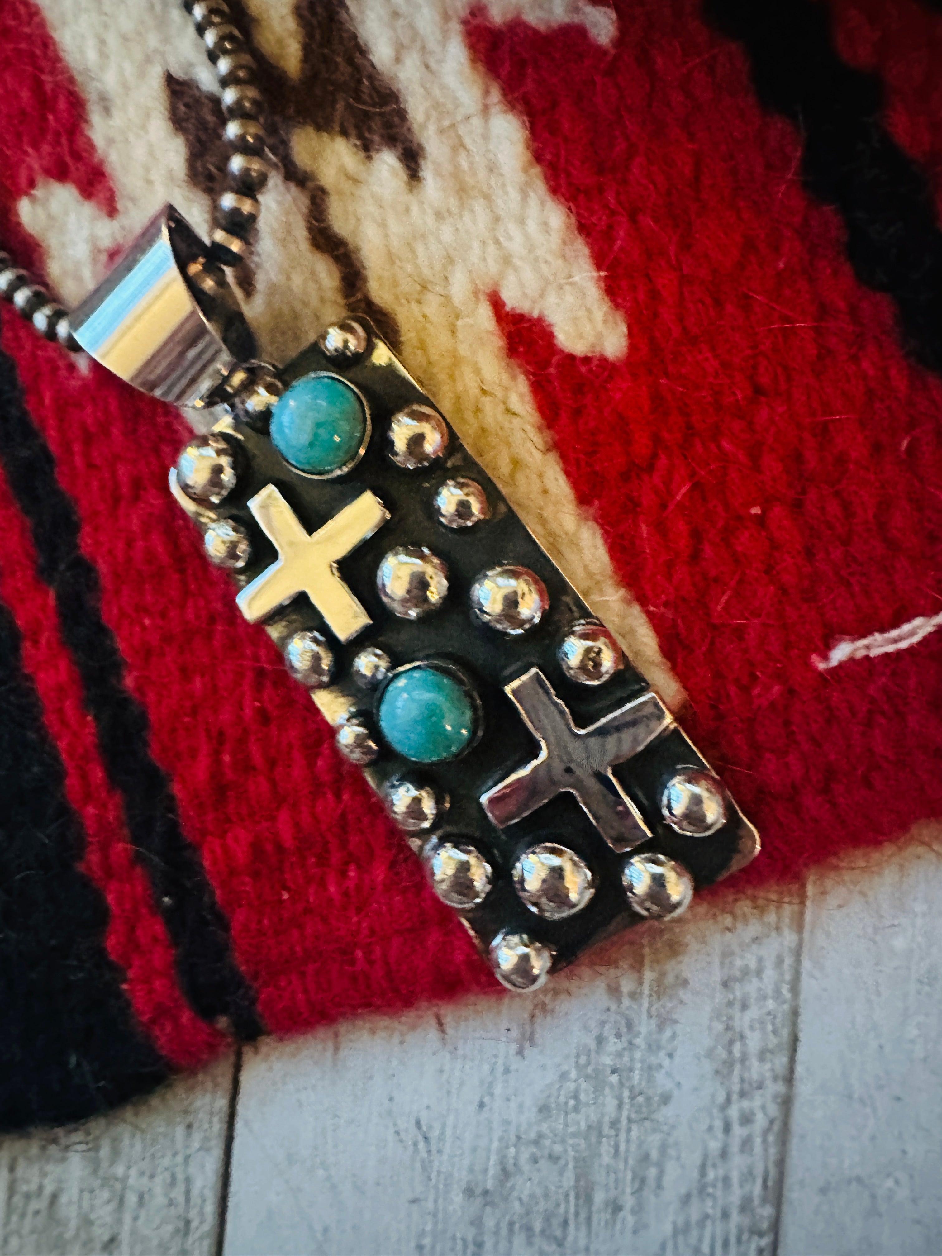 Handcrafted Sterling Silver & Turquoise Cross Pendant by Chimney Butte