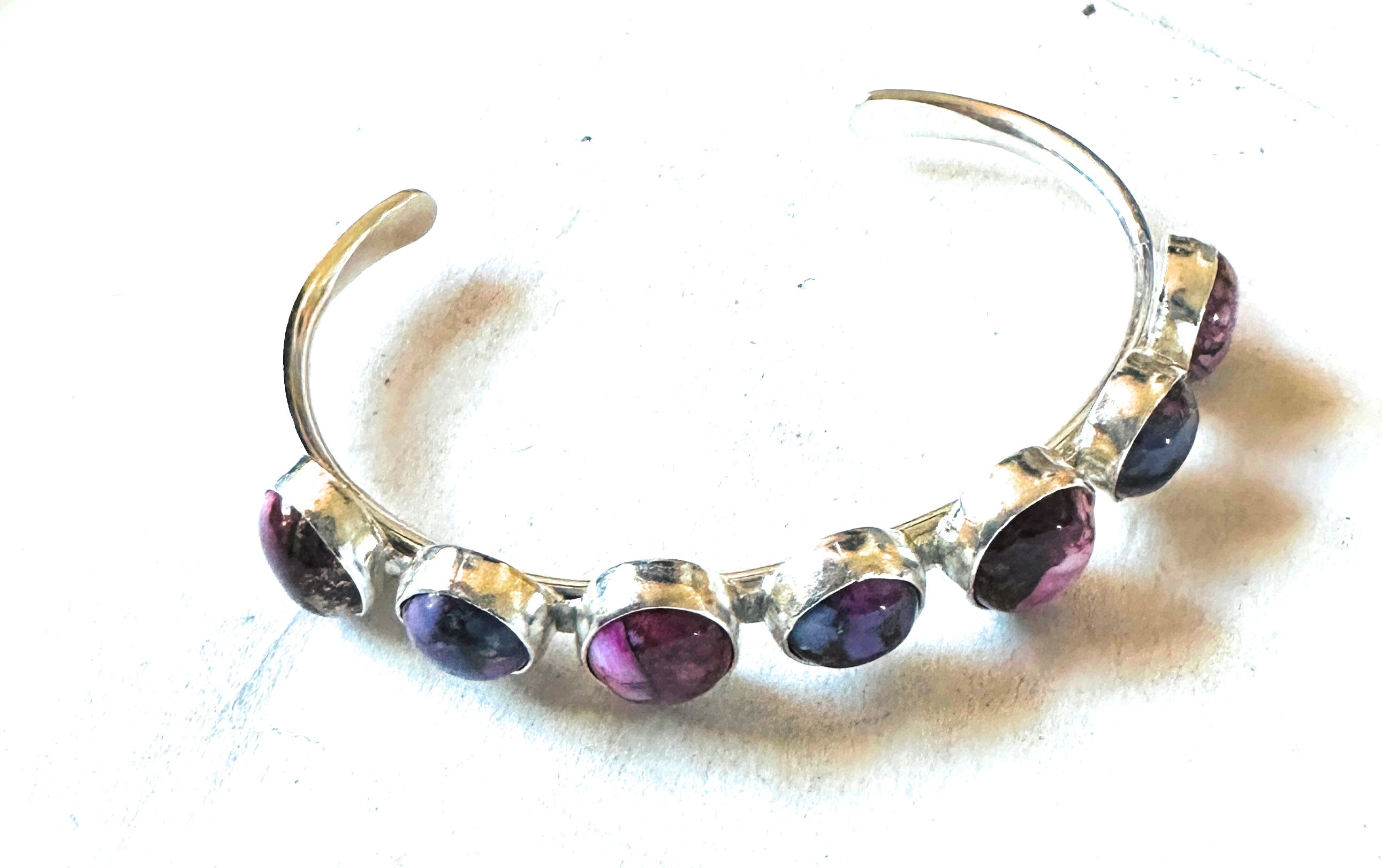 Beautiful Handcrafted Sterling Silver and Pink Dream Mojave Cuff Bracelet. Cuff has an inside circumference of 5 1/4 inches with a 1 3/8 inch gap. Width is 1/2 of an inch. Signed by the artist and stamped Sterling. Such a pretty bracelet!