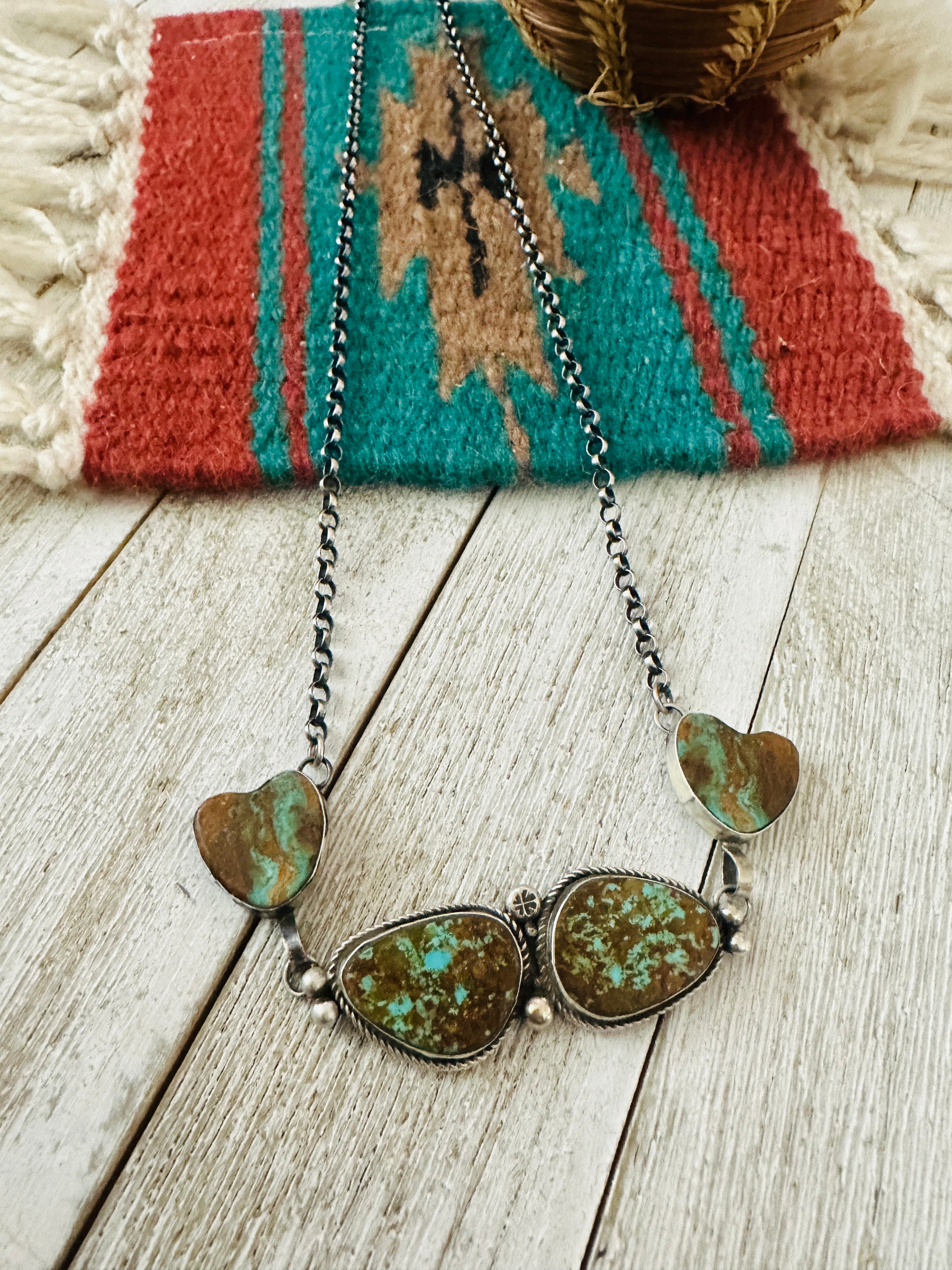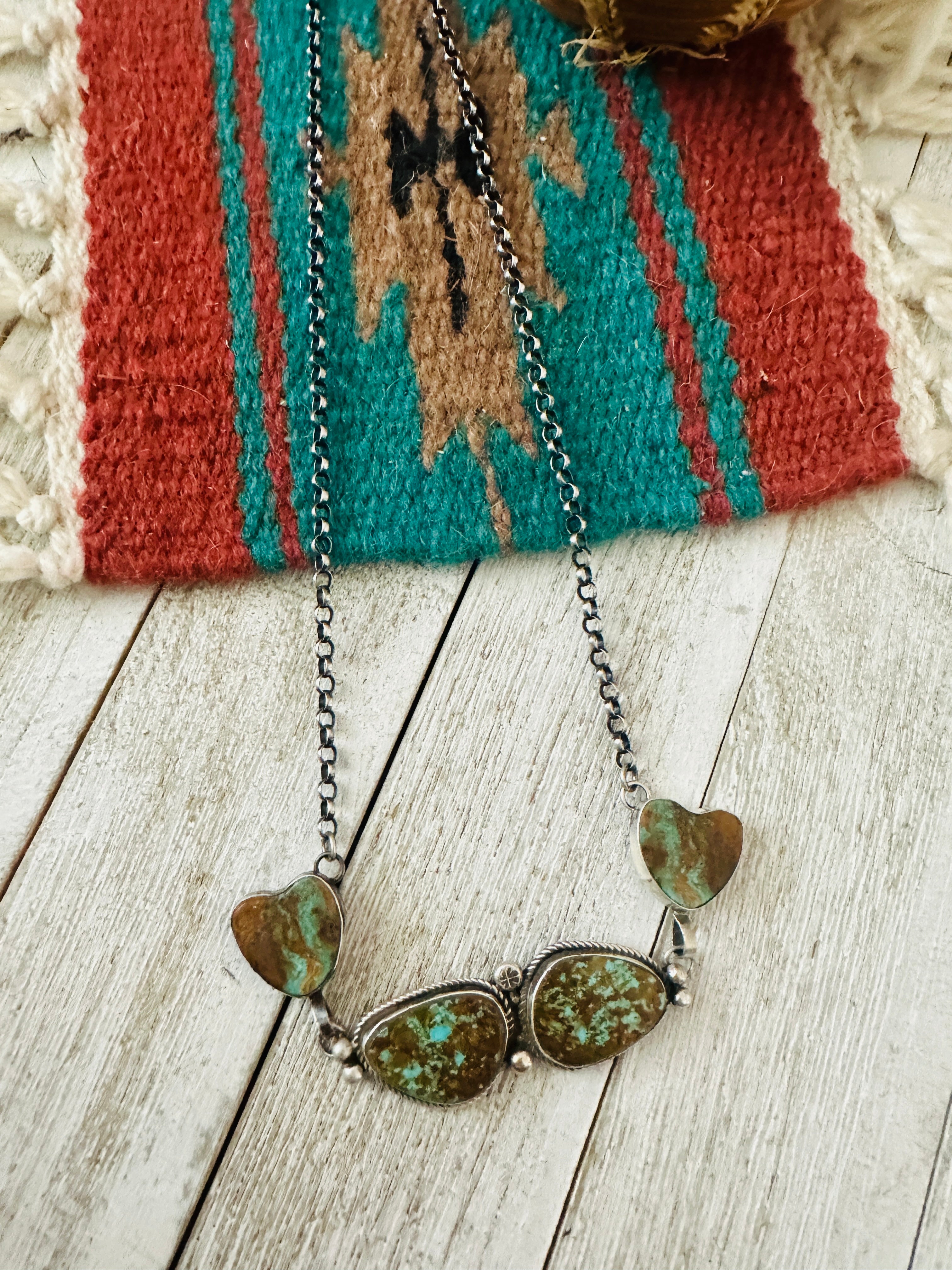 Navajo Sterling Silver & Royston Turquoise Heart Necklace by Jacqueline Silver