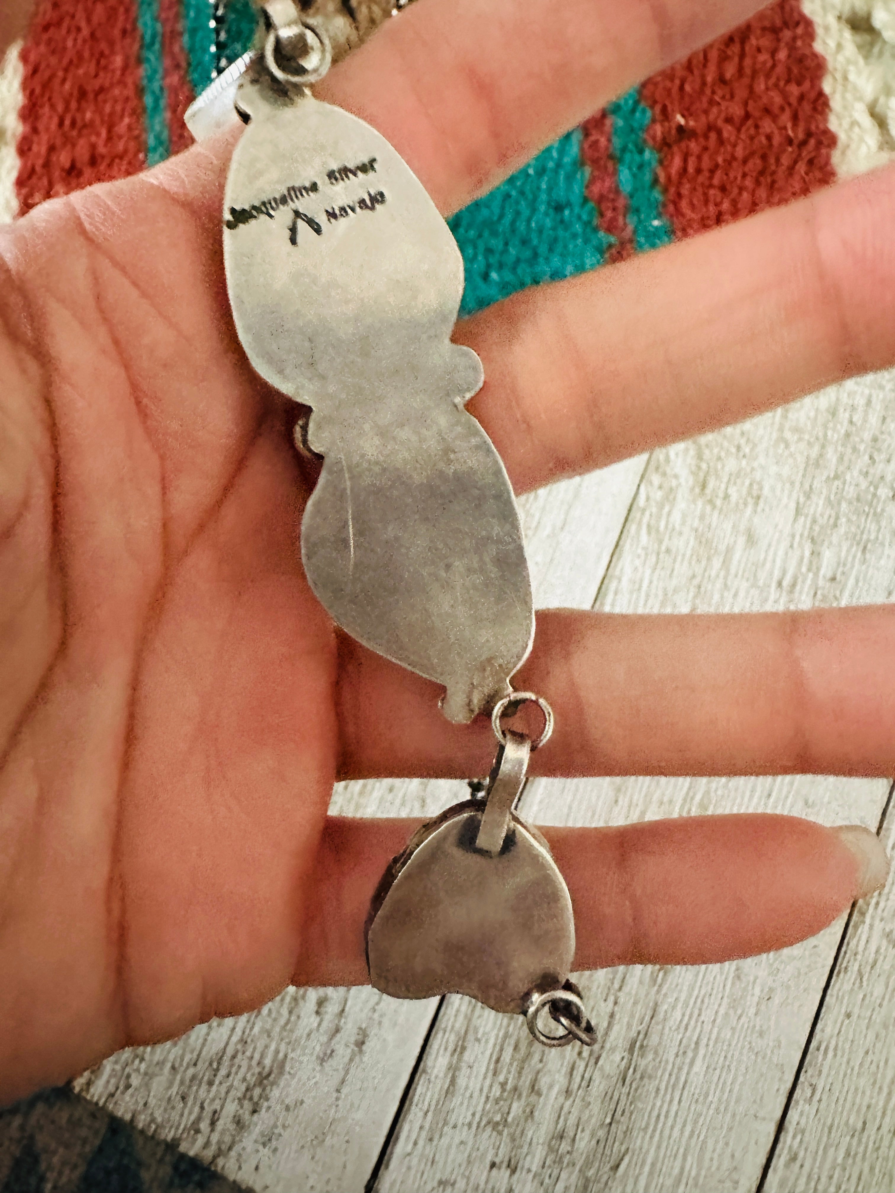 Gorgeous Navajo Royston Turquoise & Sterling Silver Heart Necklace. Necklace measures 20 inches long. Pendant measures 2 1/4 inches wide. Signed by the artist Jacqueline Silver and stamped Sterling. So beautiful!