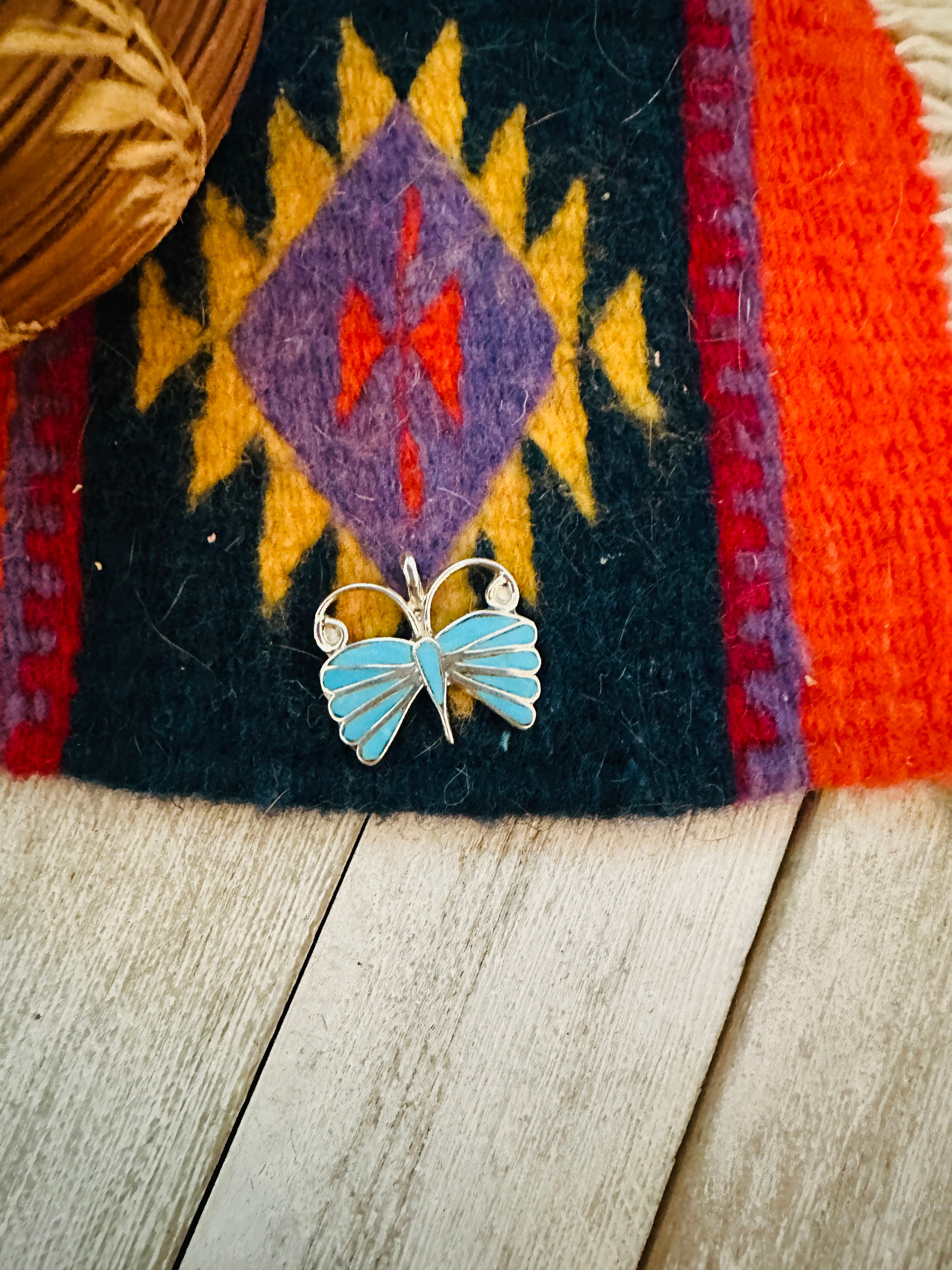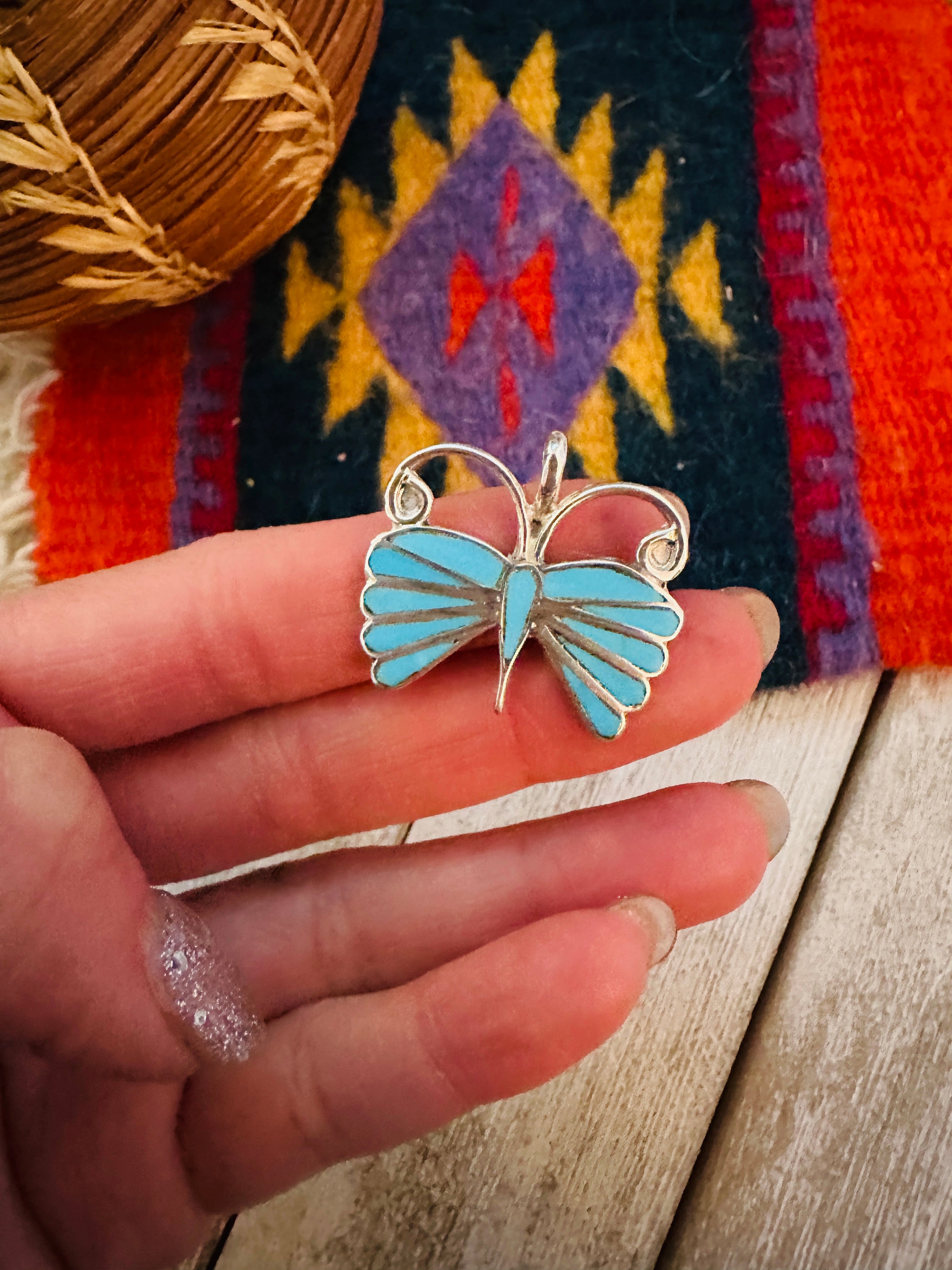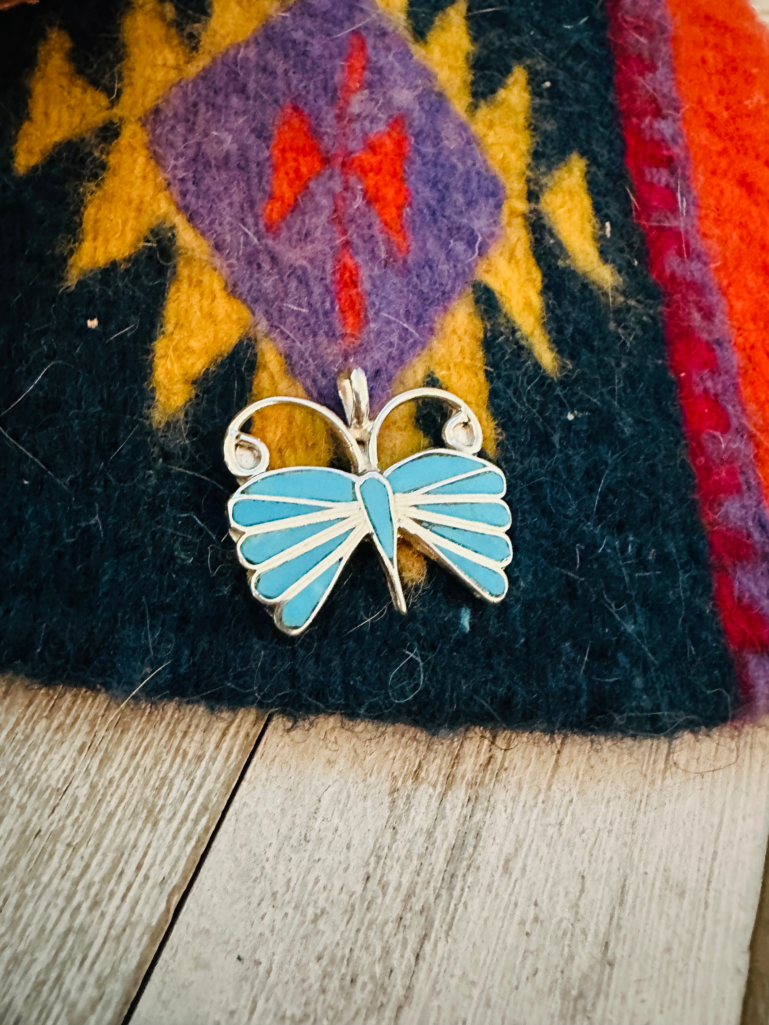Handcrafted Sterling Silver & Turquoise Inlay Butterfly Pendant
