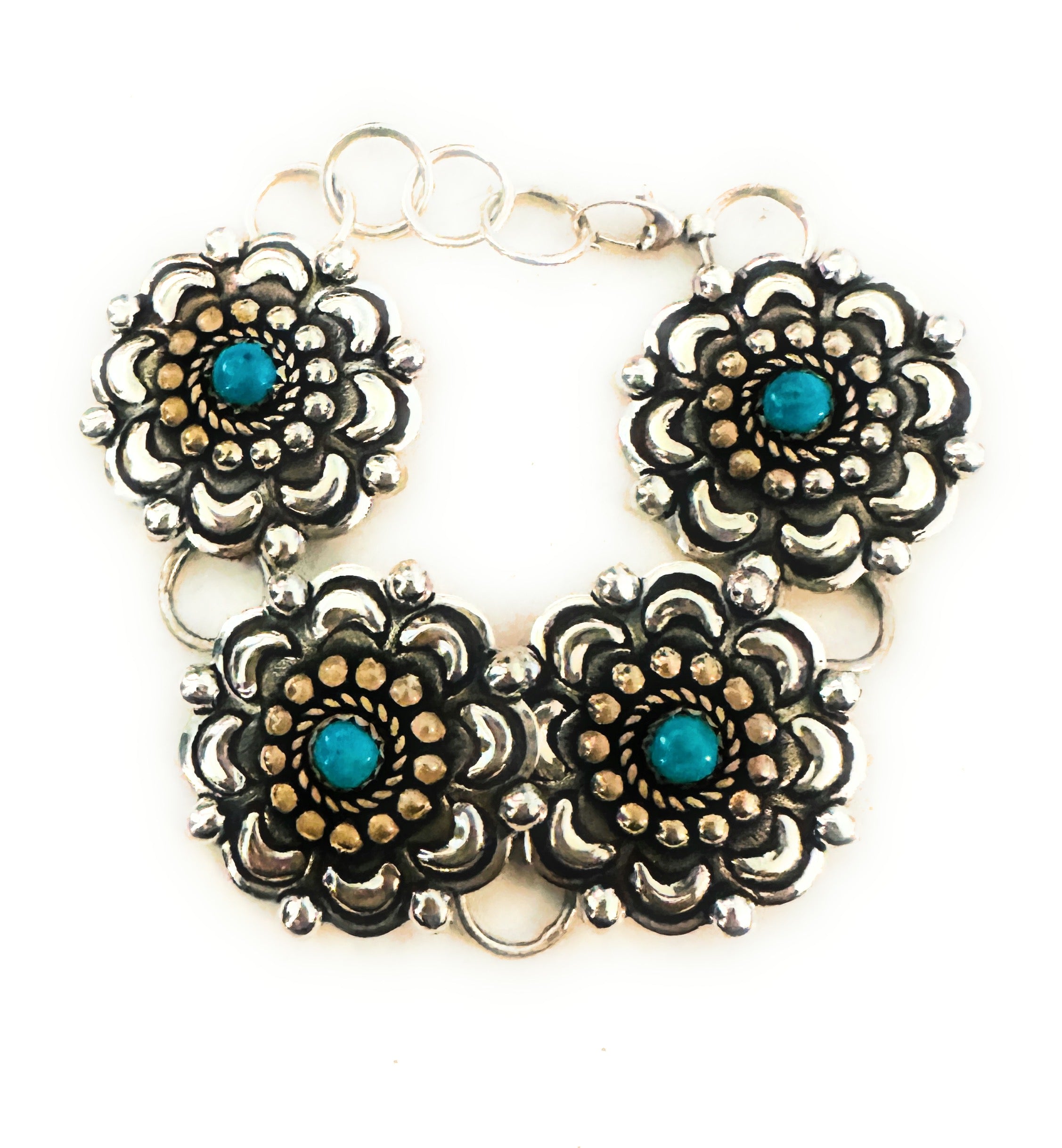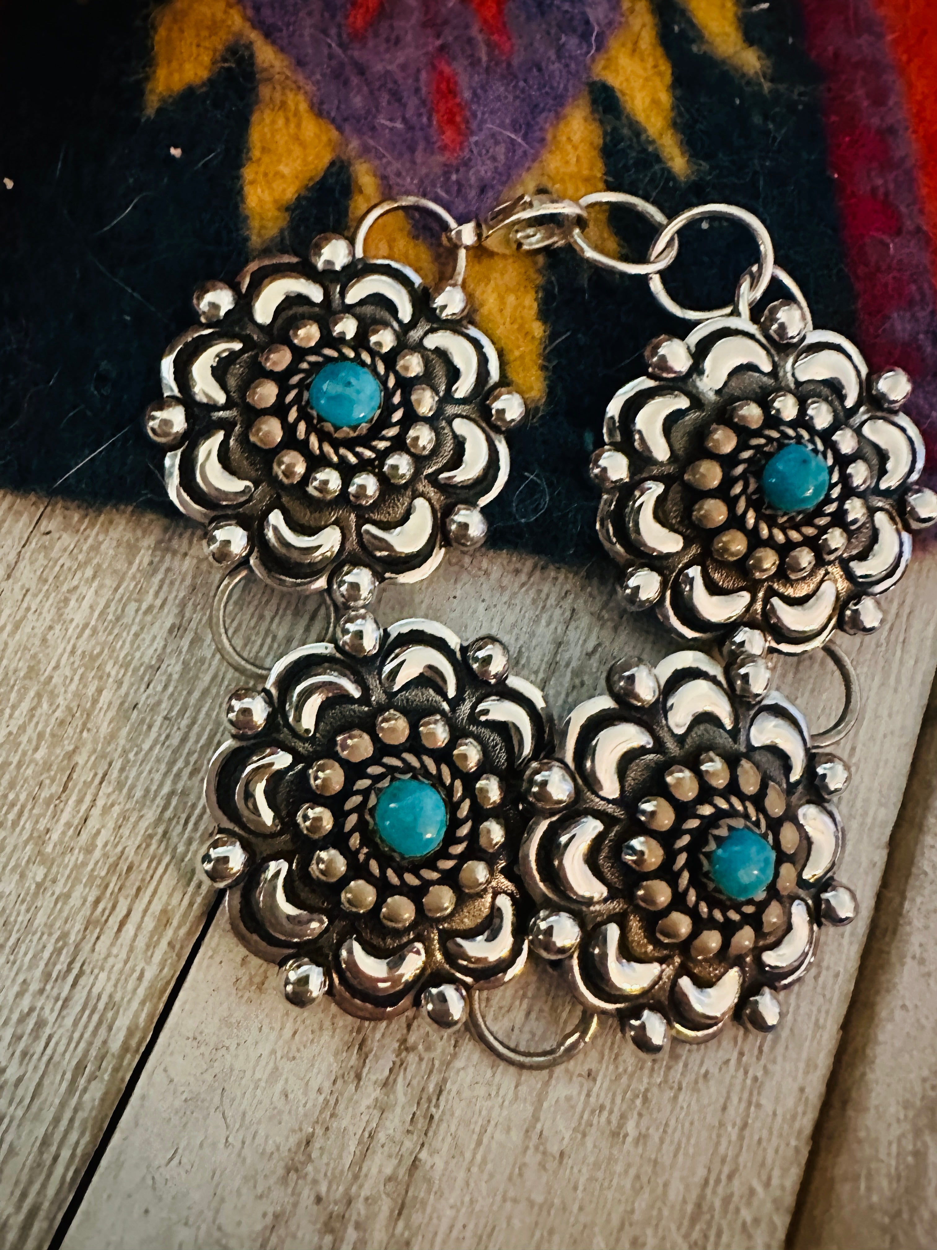 Navajo Turquoise & Sterling Silver Concho Link Bracelet
