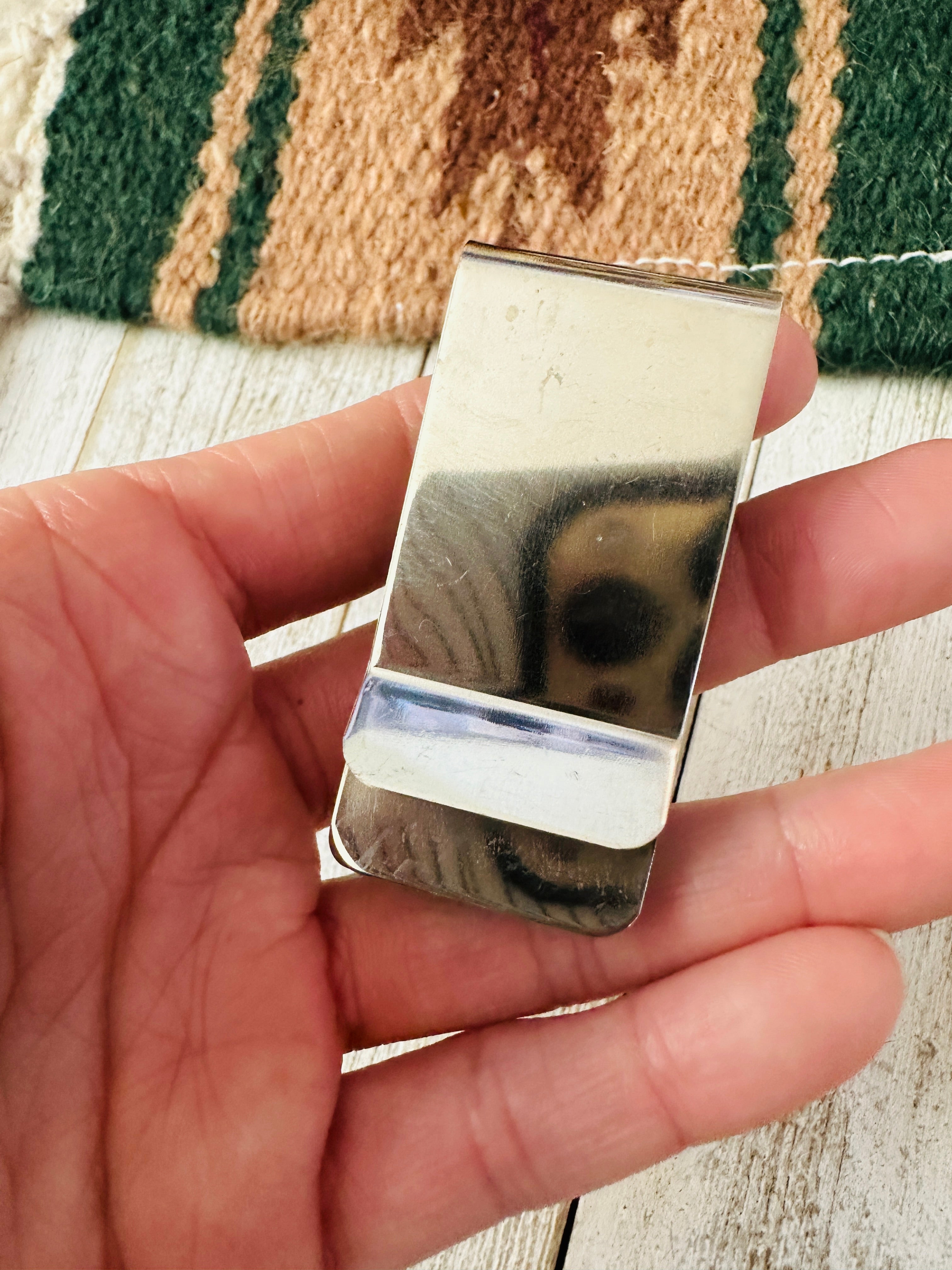 Turquoise, Coral & Sterling Silver Inlay Money Clip