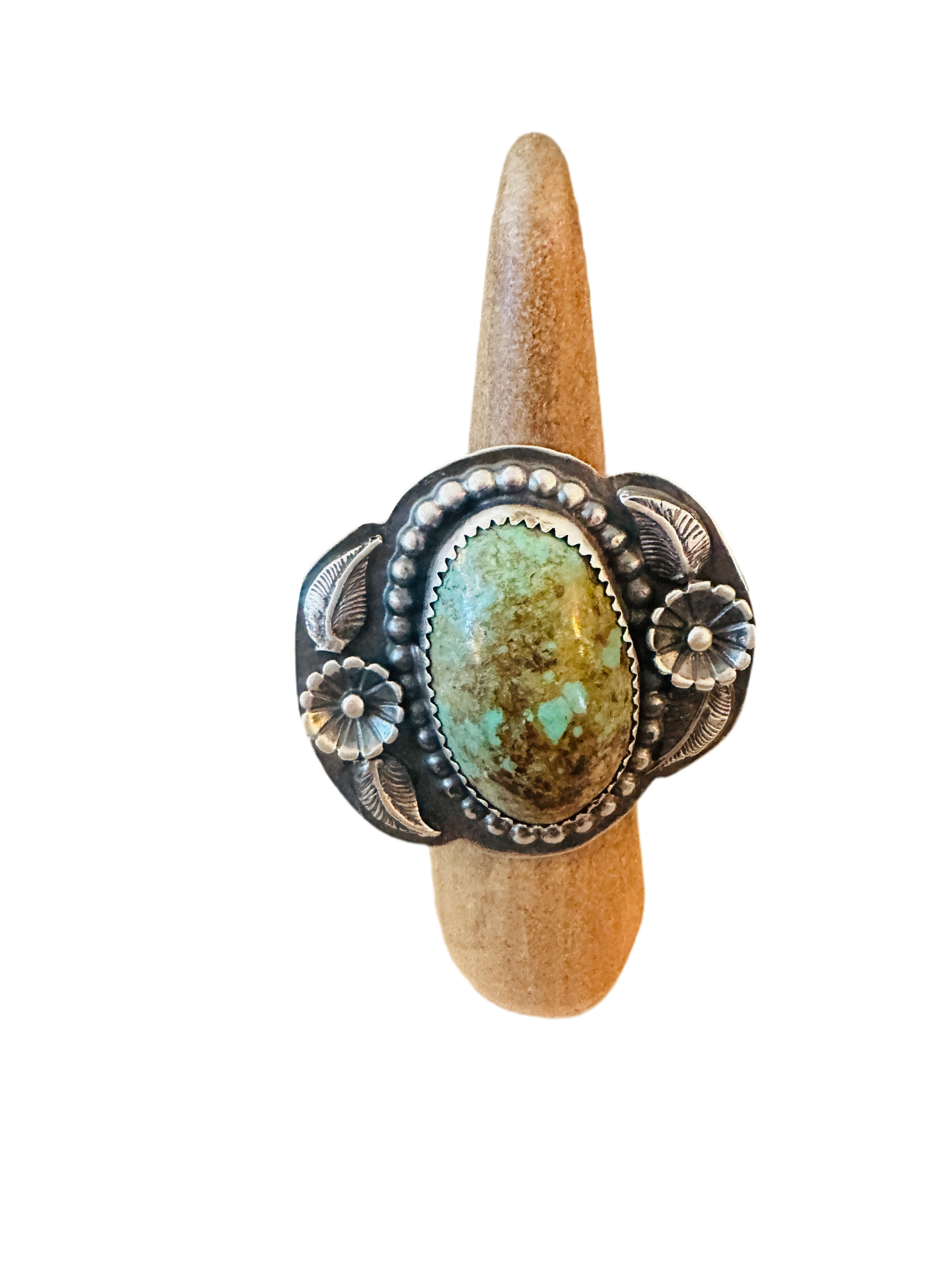 Old Pawn Navajo Sterling Silver & Turquoise Ring Size 6