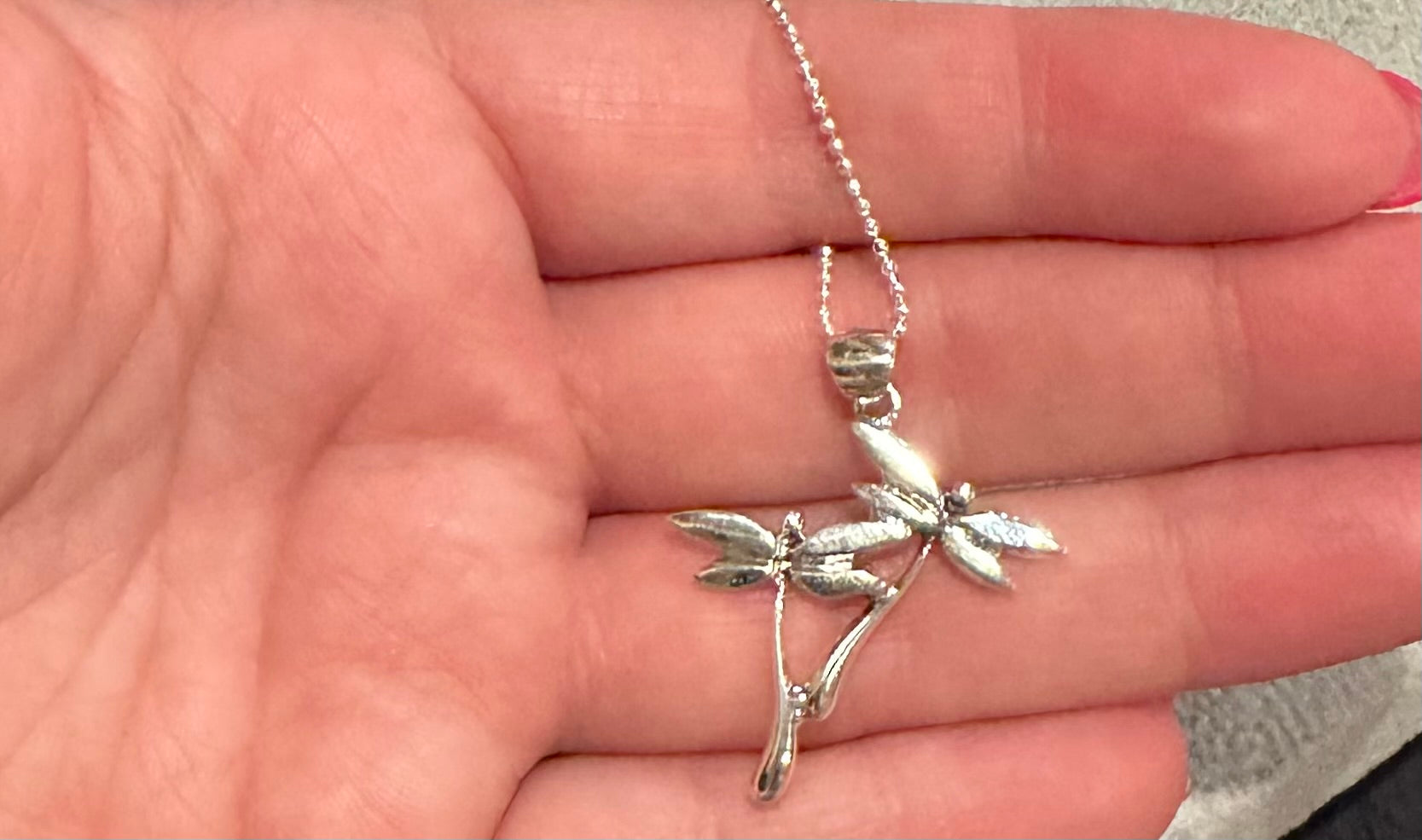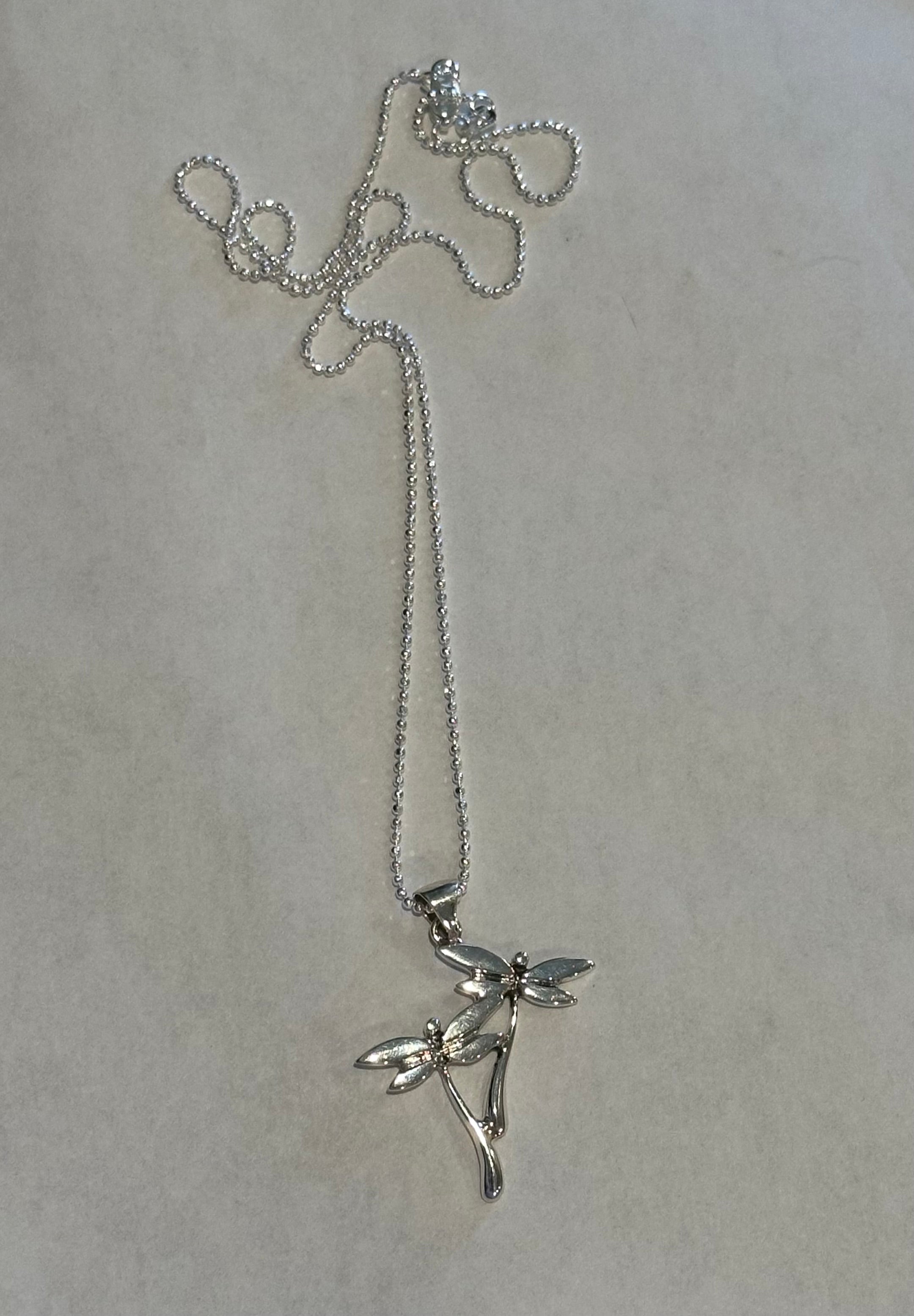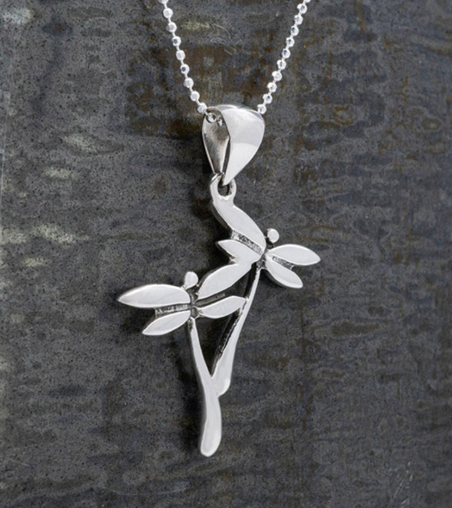 Double Dragonfly Sterling Silver Pendant Necklace