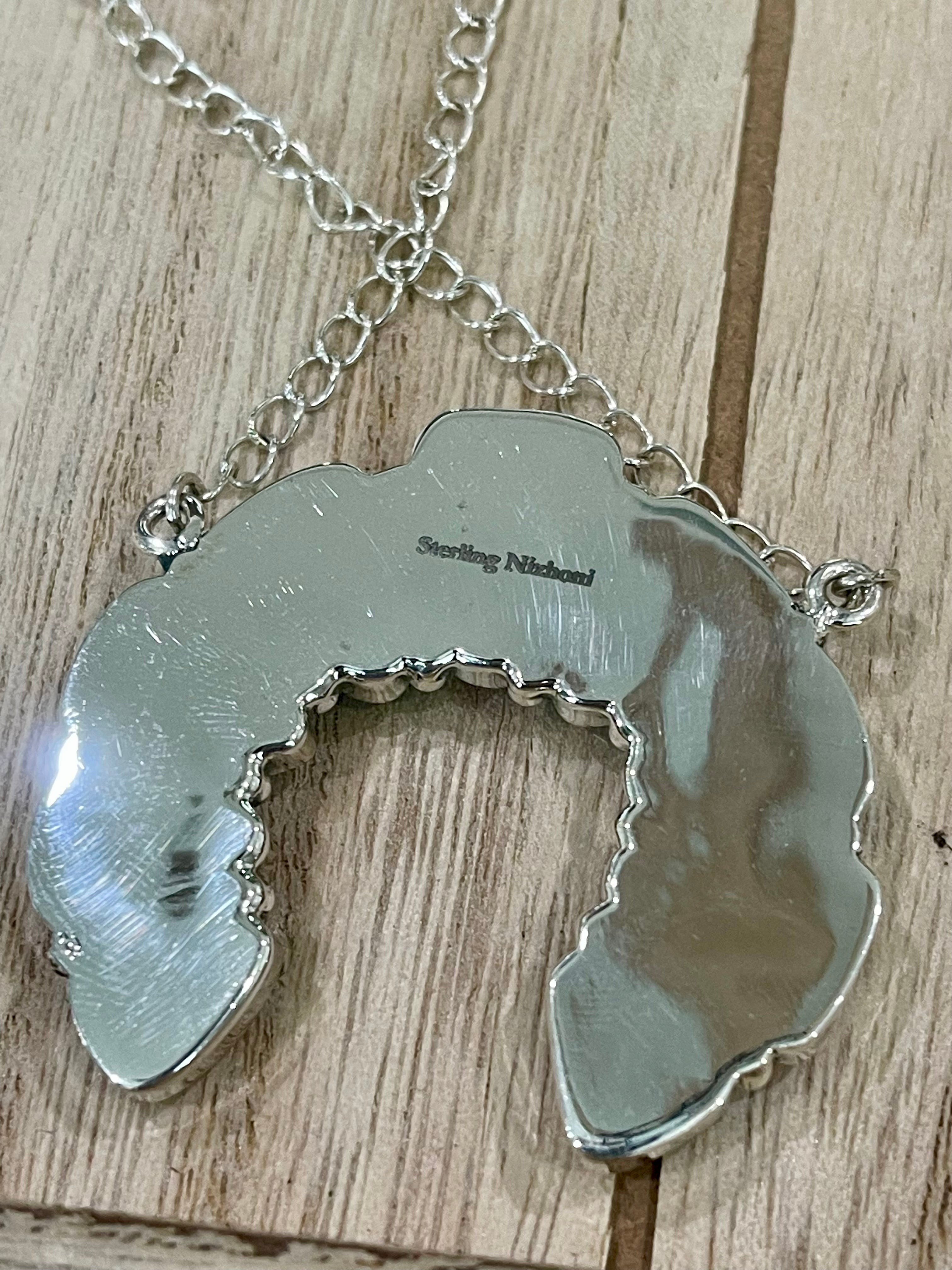 This is a Handmade Cotton Candy Sterling Silver necklace. This necklace is gorgeous. The necklace measures about 16-18 inches long. The pendant measures just about 1 3/4 inches long & 1 3/4 inches wide.