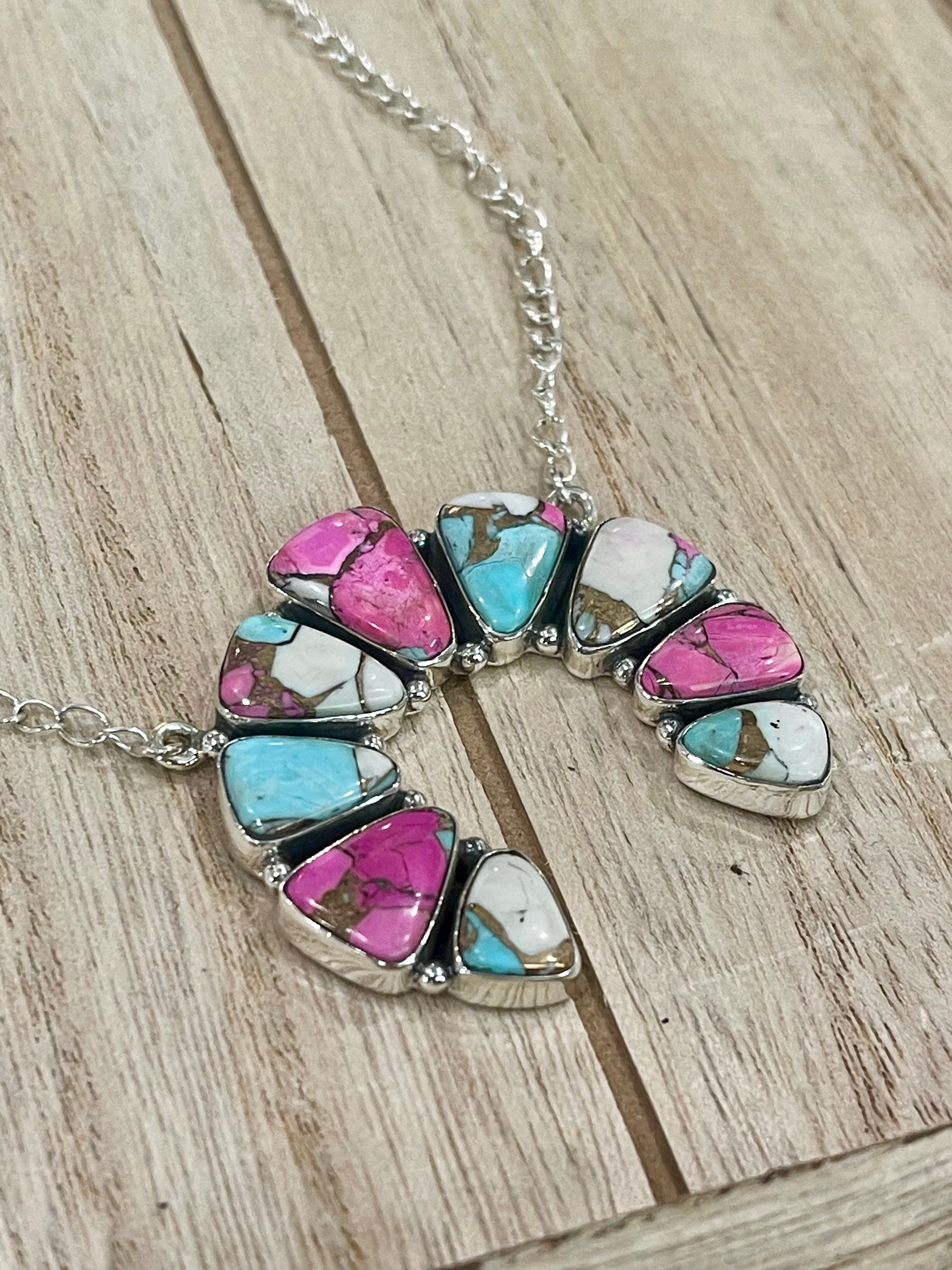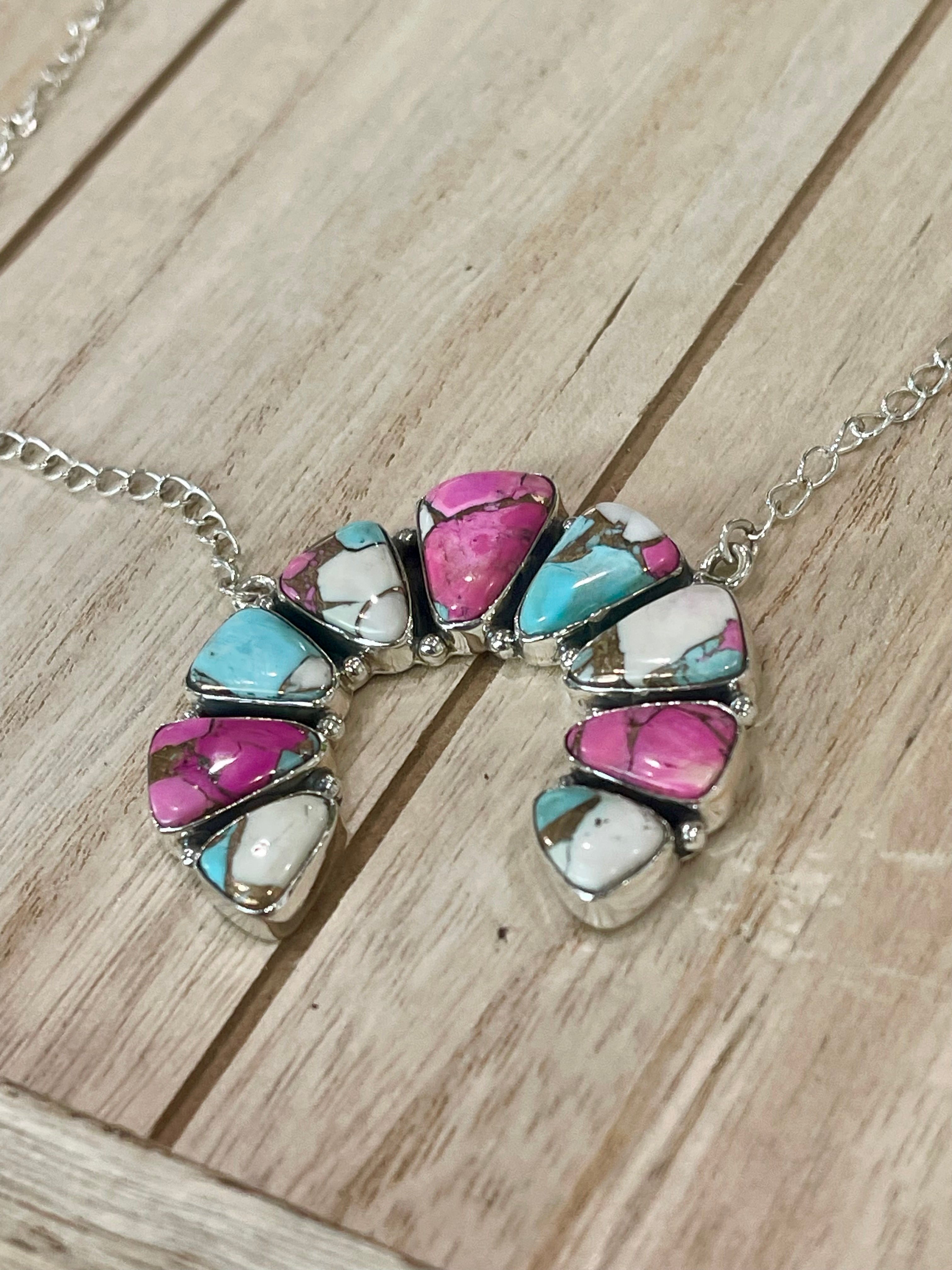Handmade Cotton Candy Sterling Silver Naja Necklace