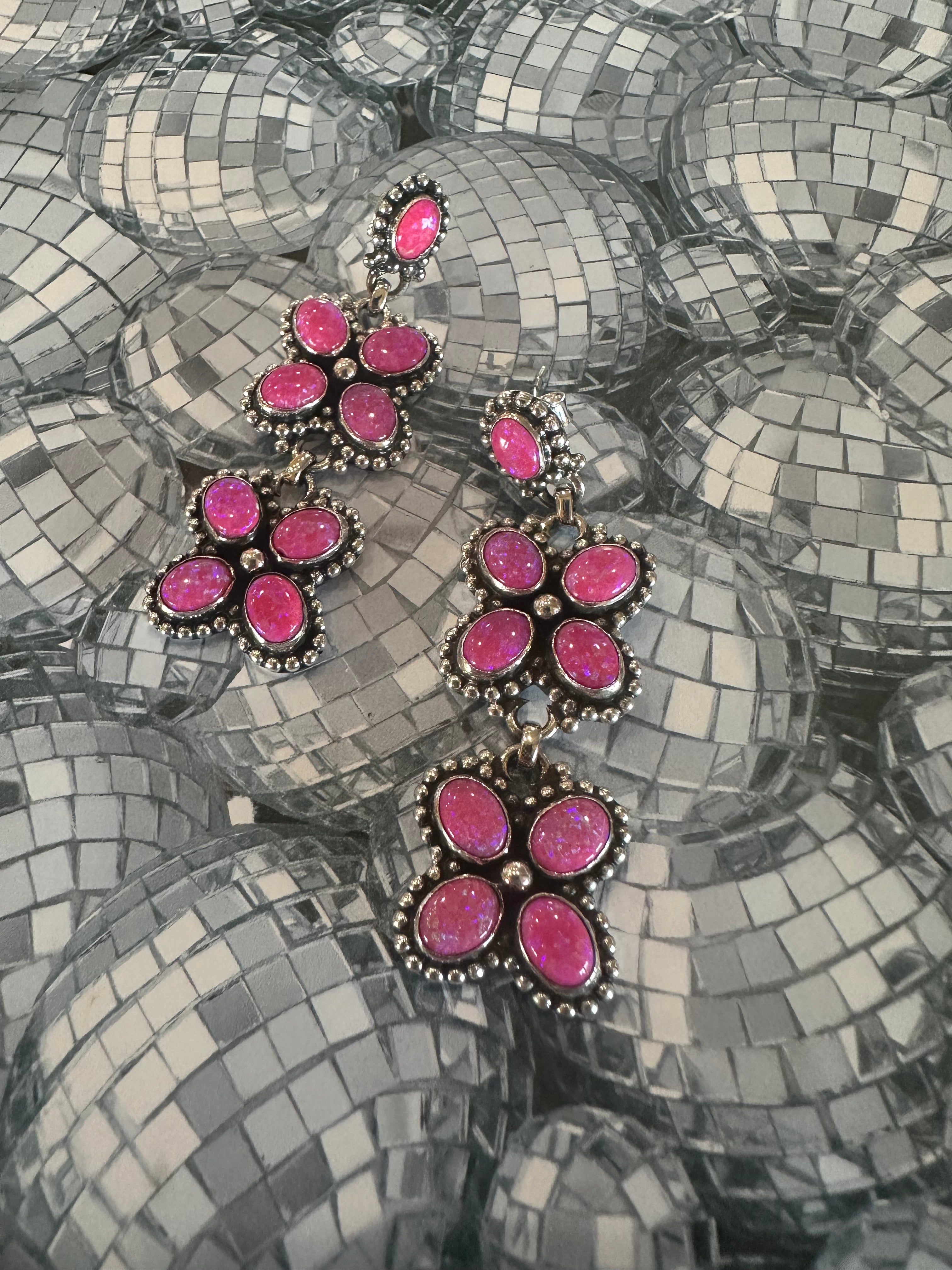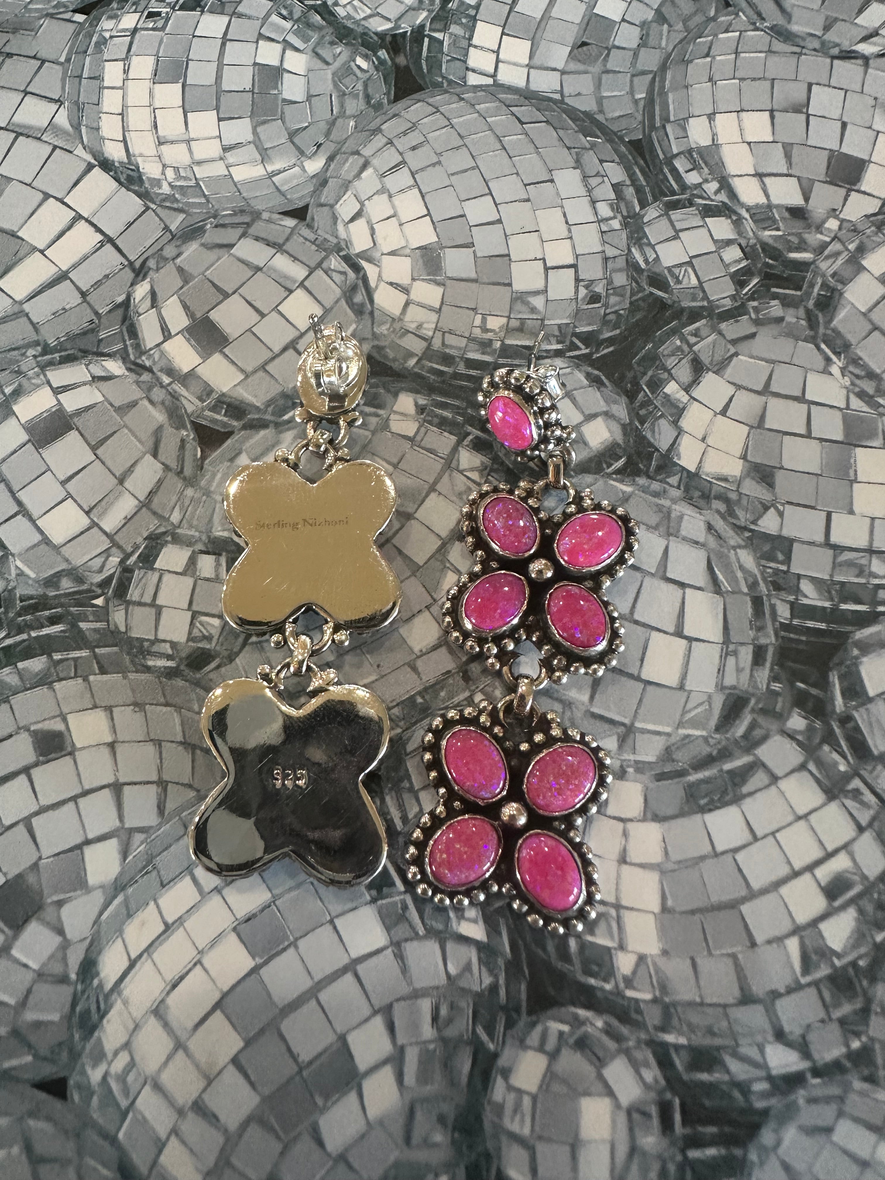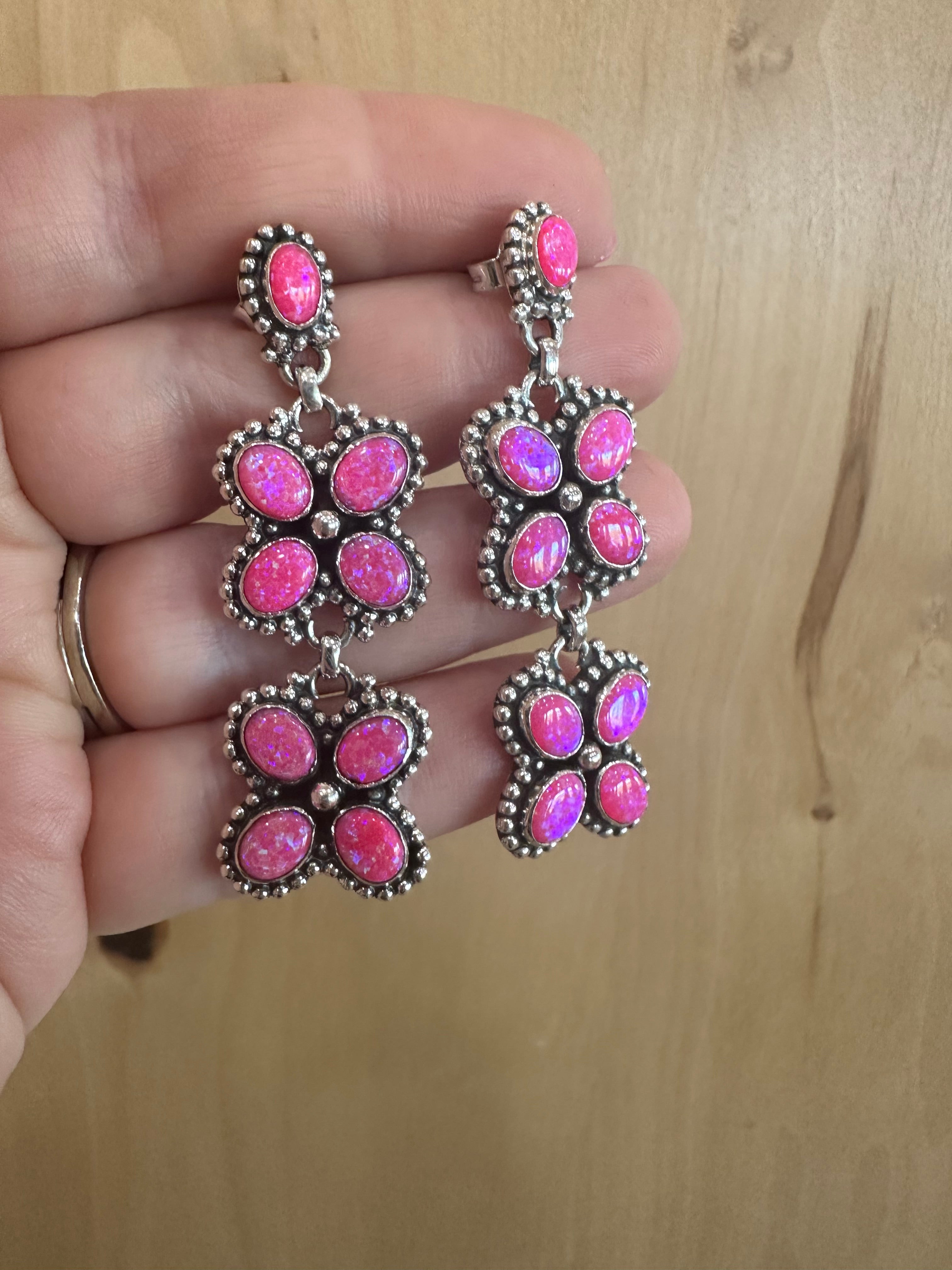 Handmade Fire Pink Opal and Sterling Silver Dangle Earrings