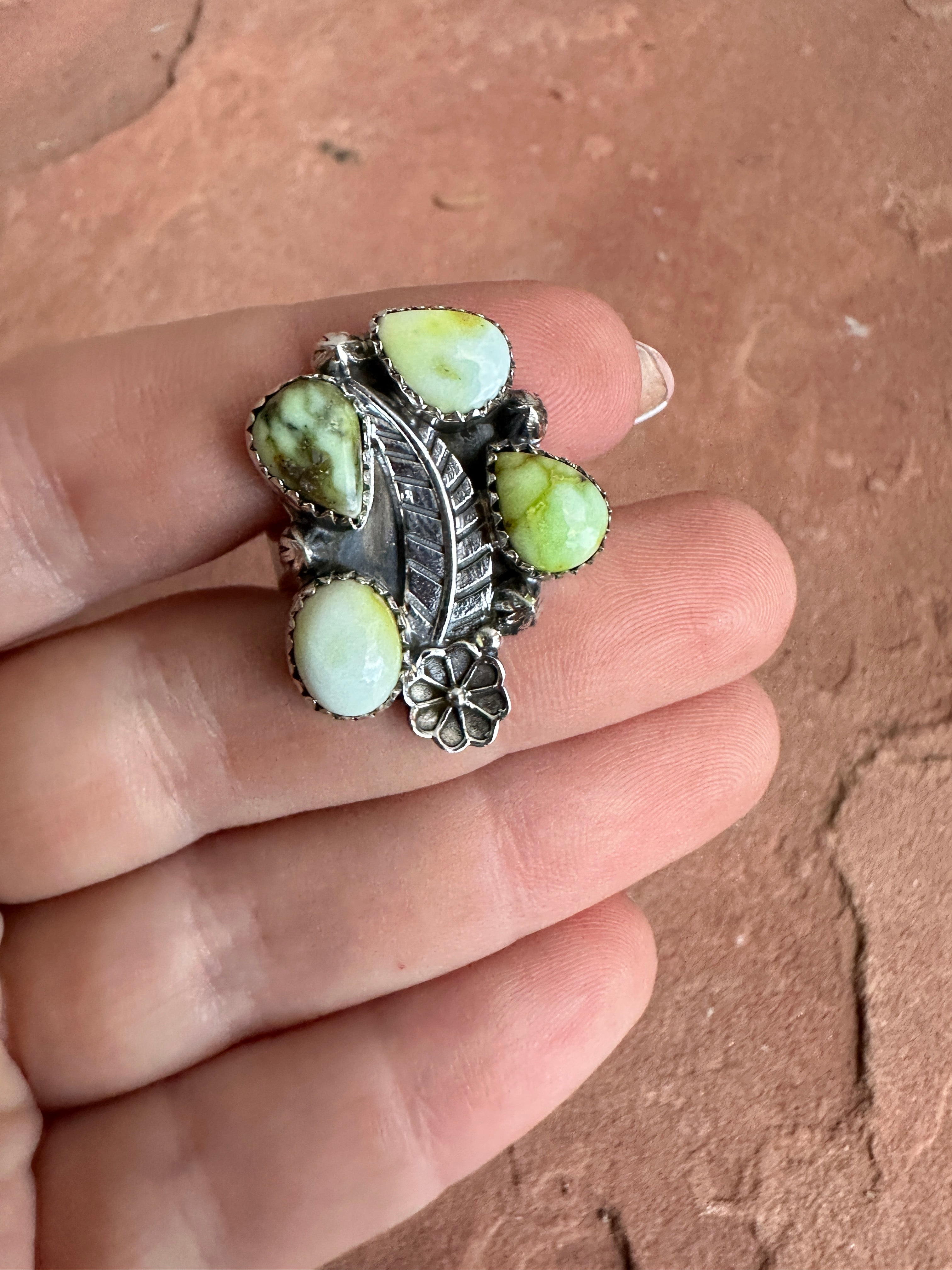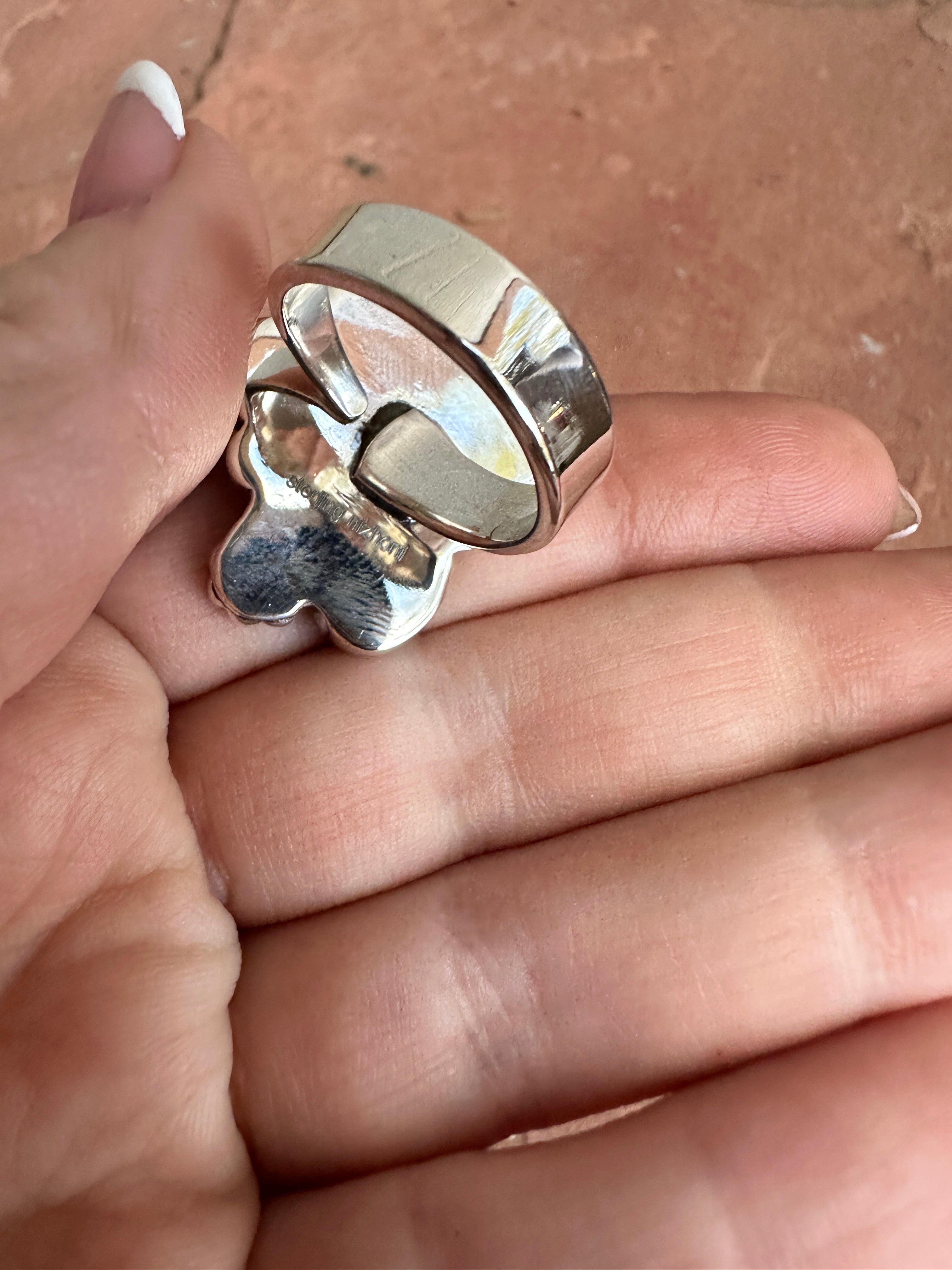 Gorgeous Navajo Turquoise And Sterling Silver Adjustable Ring