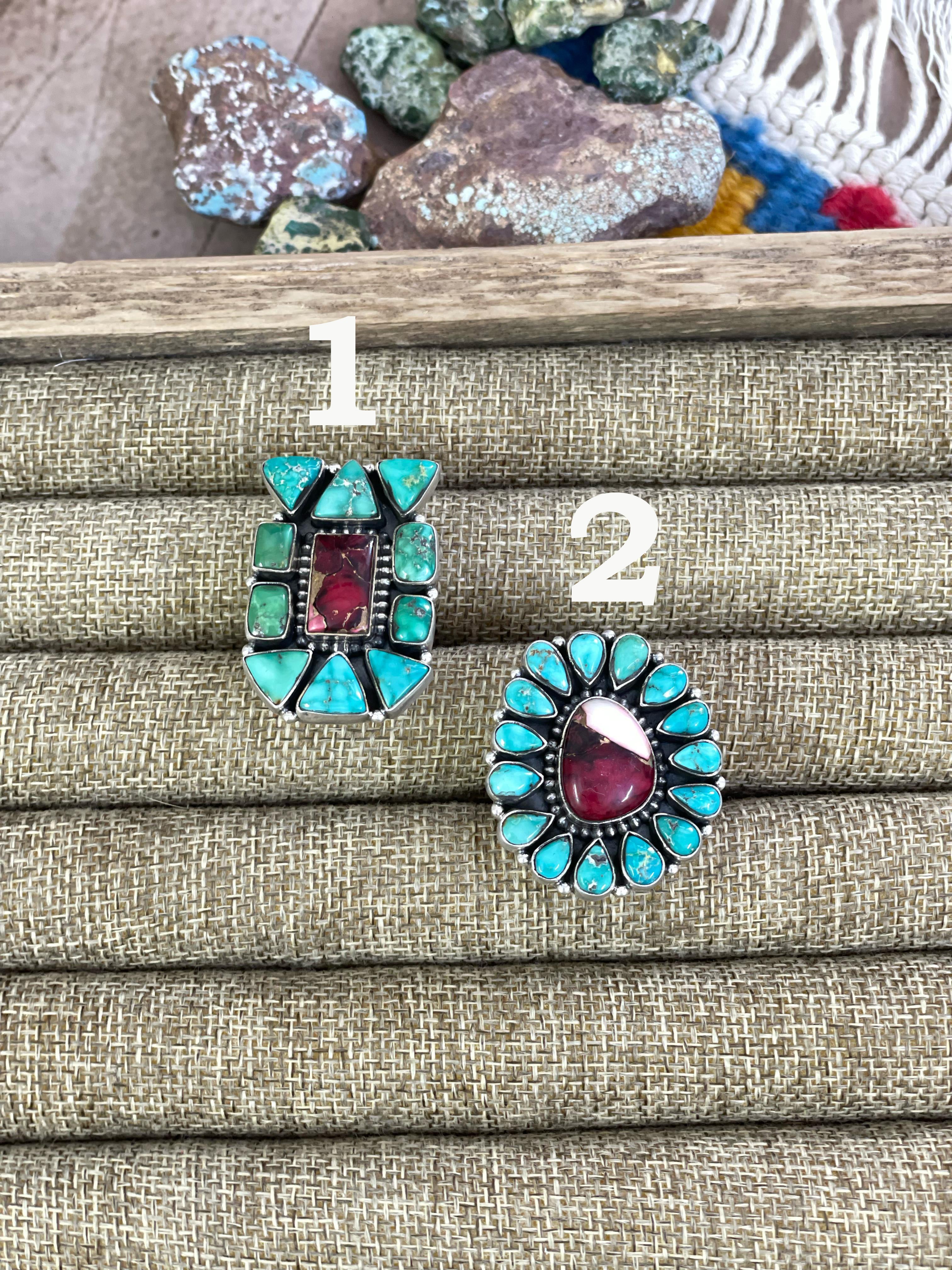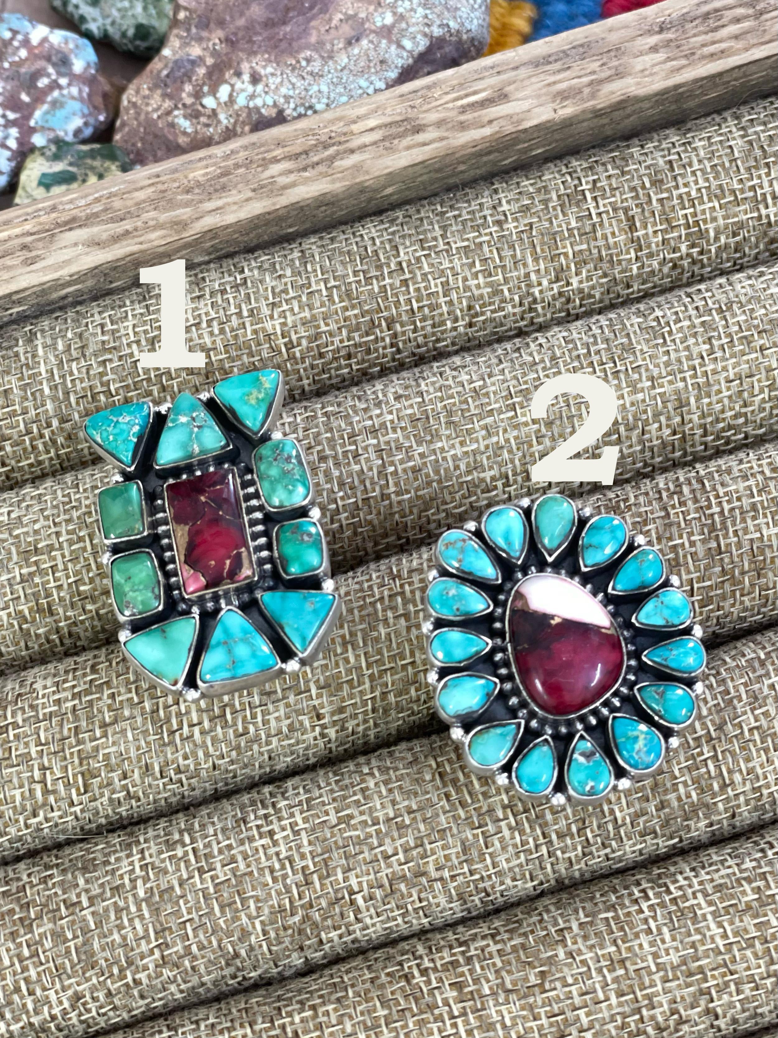 Introducing our latest masterpiece! This stunning Sterling Silver Red Rose Dahlia with Emerald Valley Turquoise are true showstopper. With dimensions of approximately 1 - 1 3/8 inches in length and 1 3/8 inches in width, it’s designed to make a bold statement.