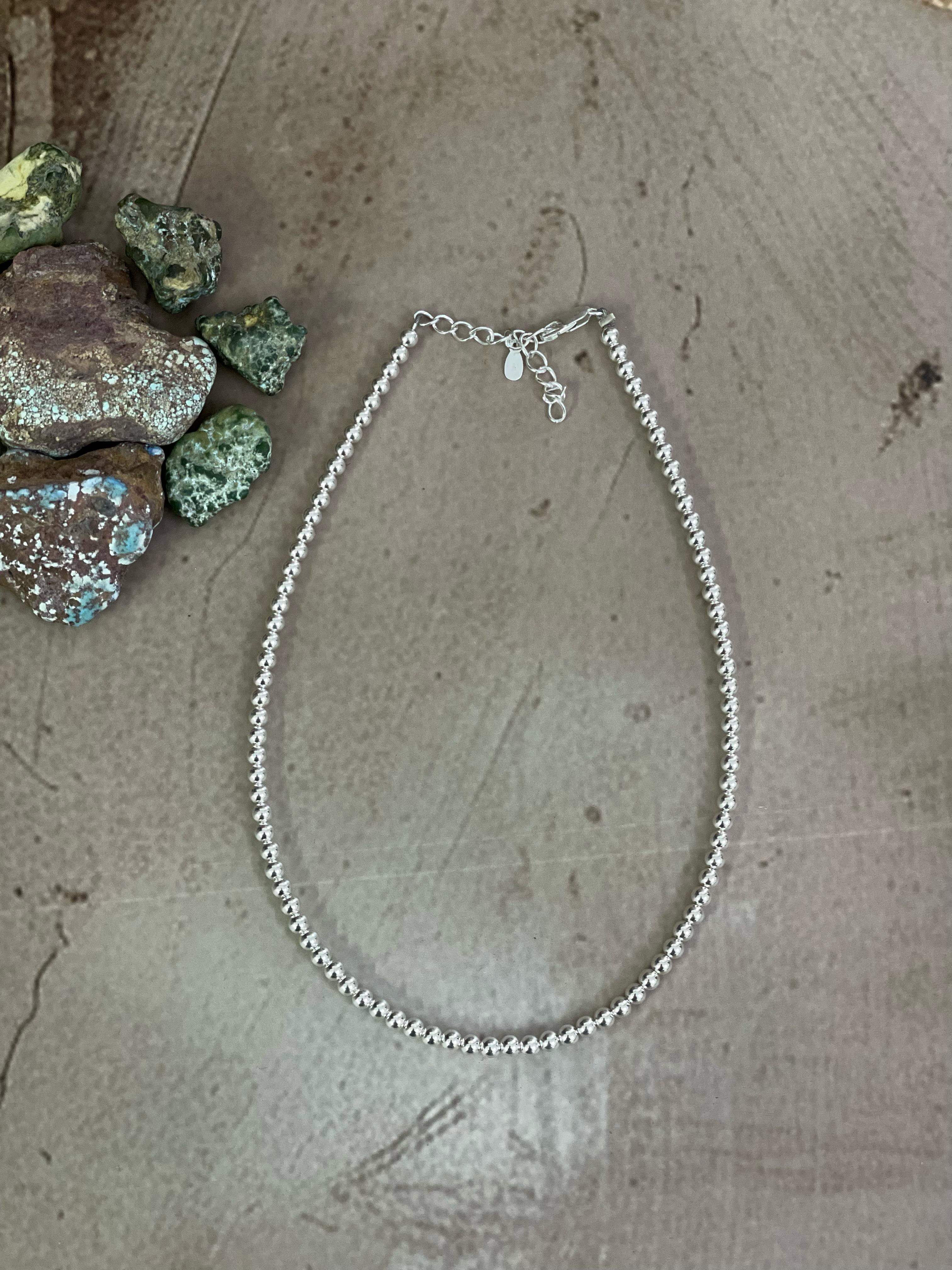 Handmade Elegance Sterling Silver 4MM Beaded Necklace