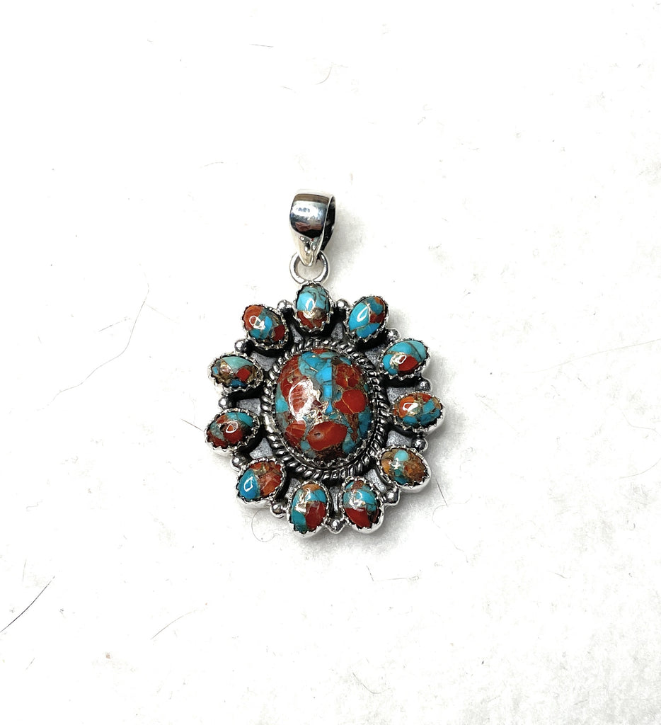 Handmade Sterling Silver And Coral Mojave Cluster Pendant